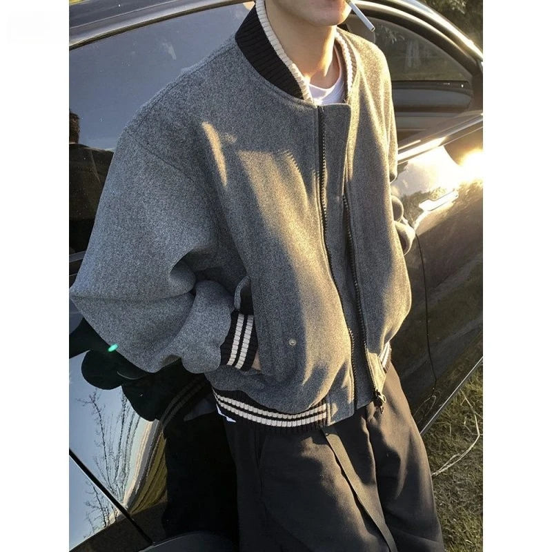 Threebooy Autumn Winter American Baseball Jacket High Street Men's Korean Casual Loose Baseball Uniform Woolen Jacket Cityboy Streetwear
