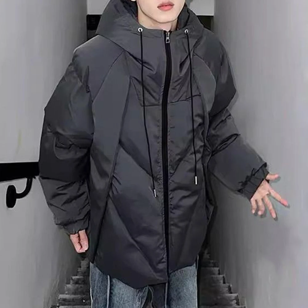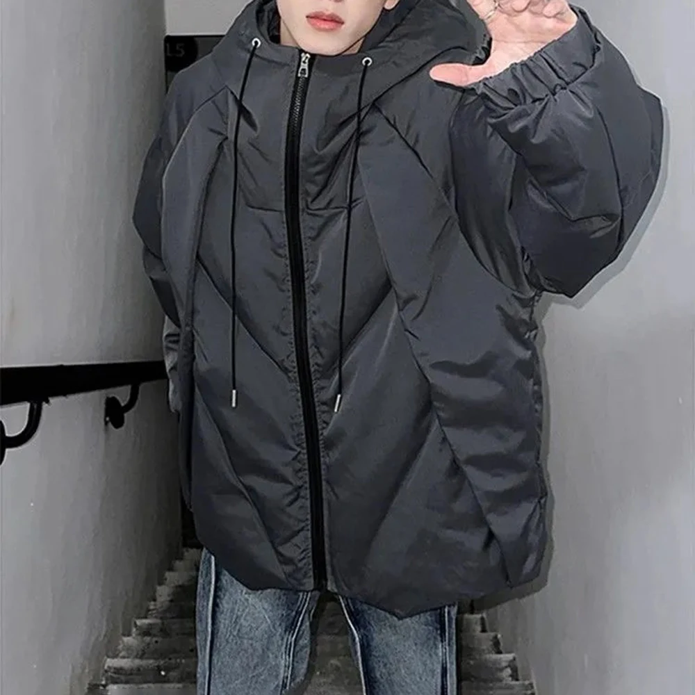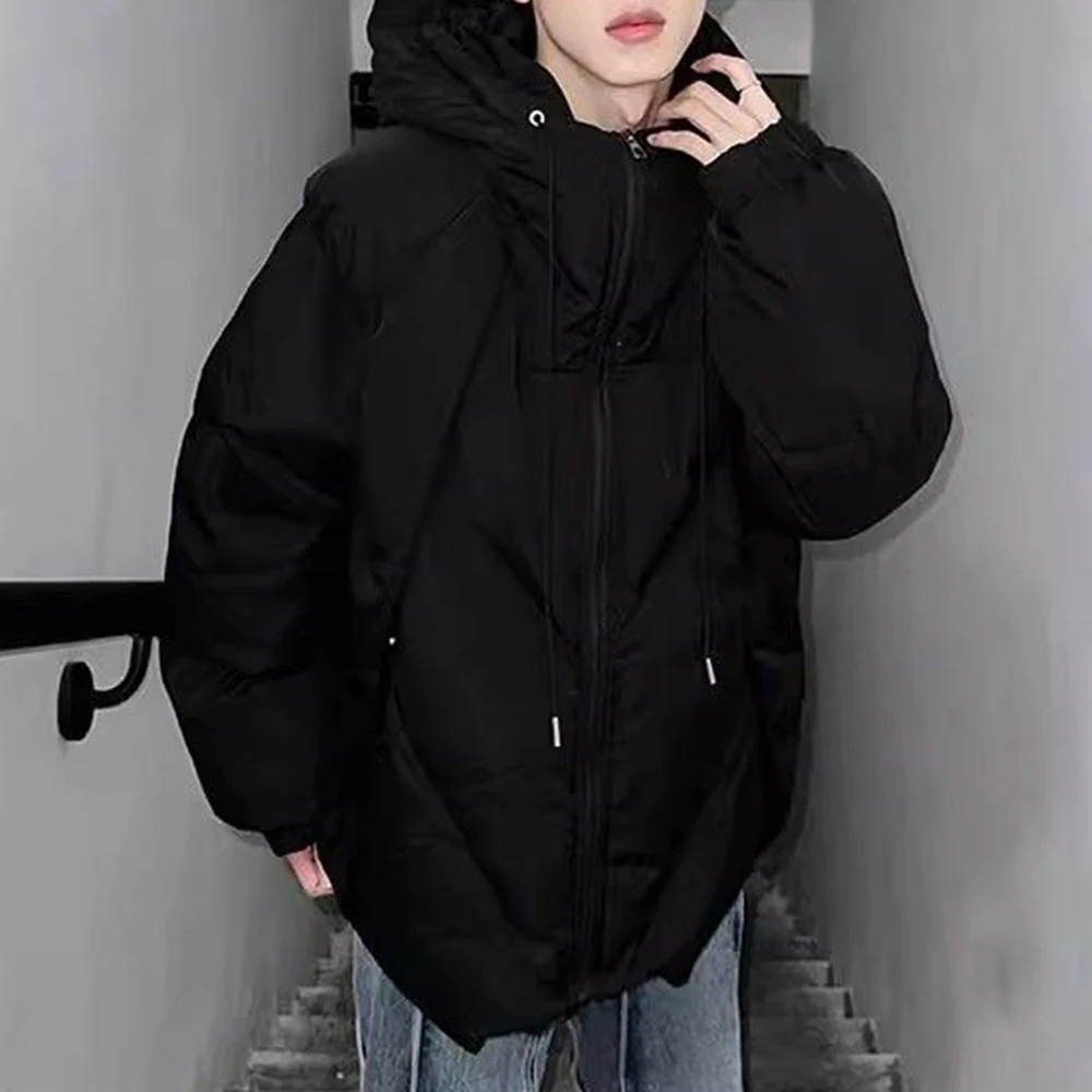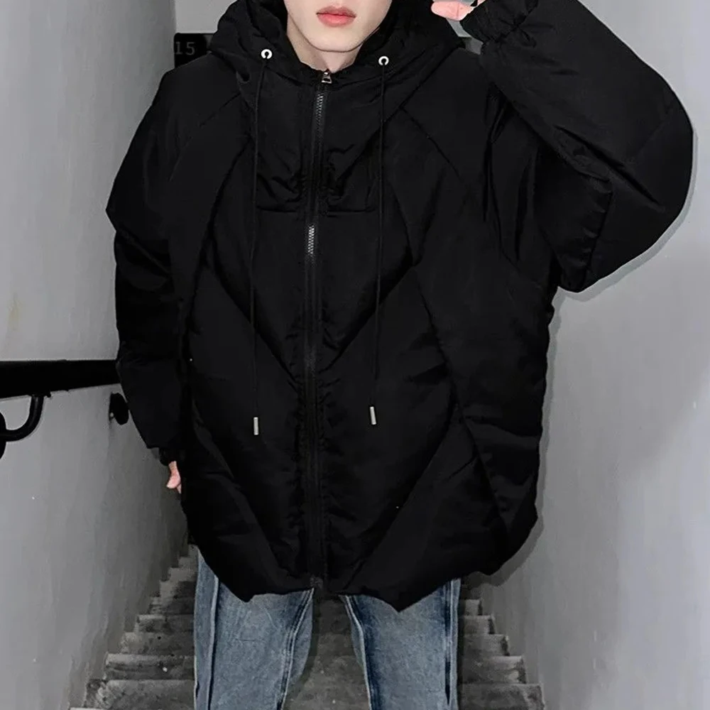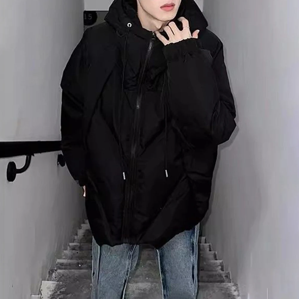 Threebooy Autumn Winter Cotton Coat For Men Fashion Niche Design Deconstruction Thin Hooded Cotton Coat Trendy Brand Handsome Y2k Jacket