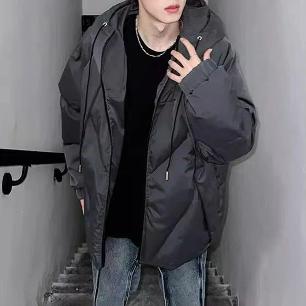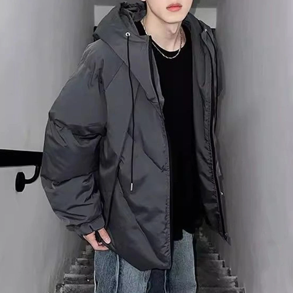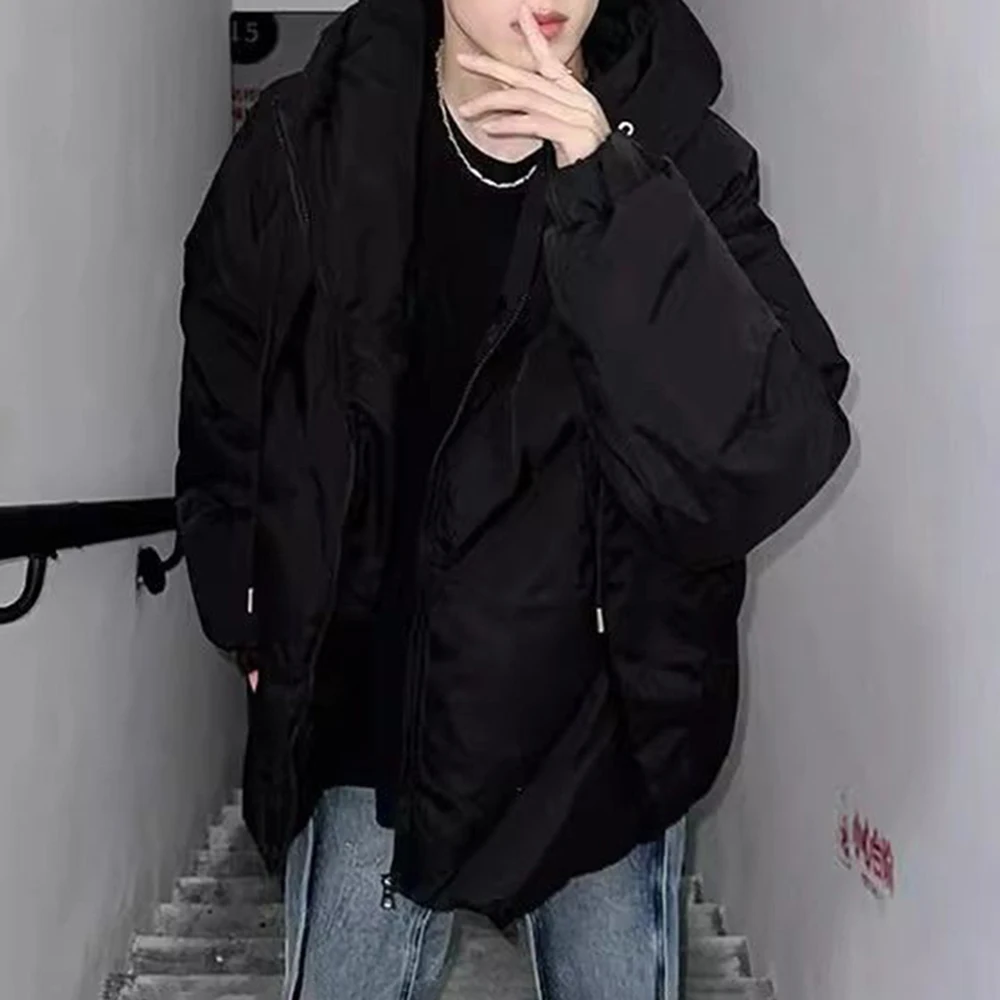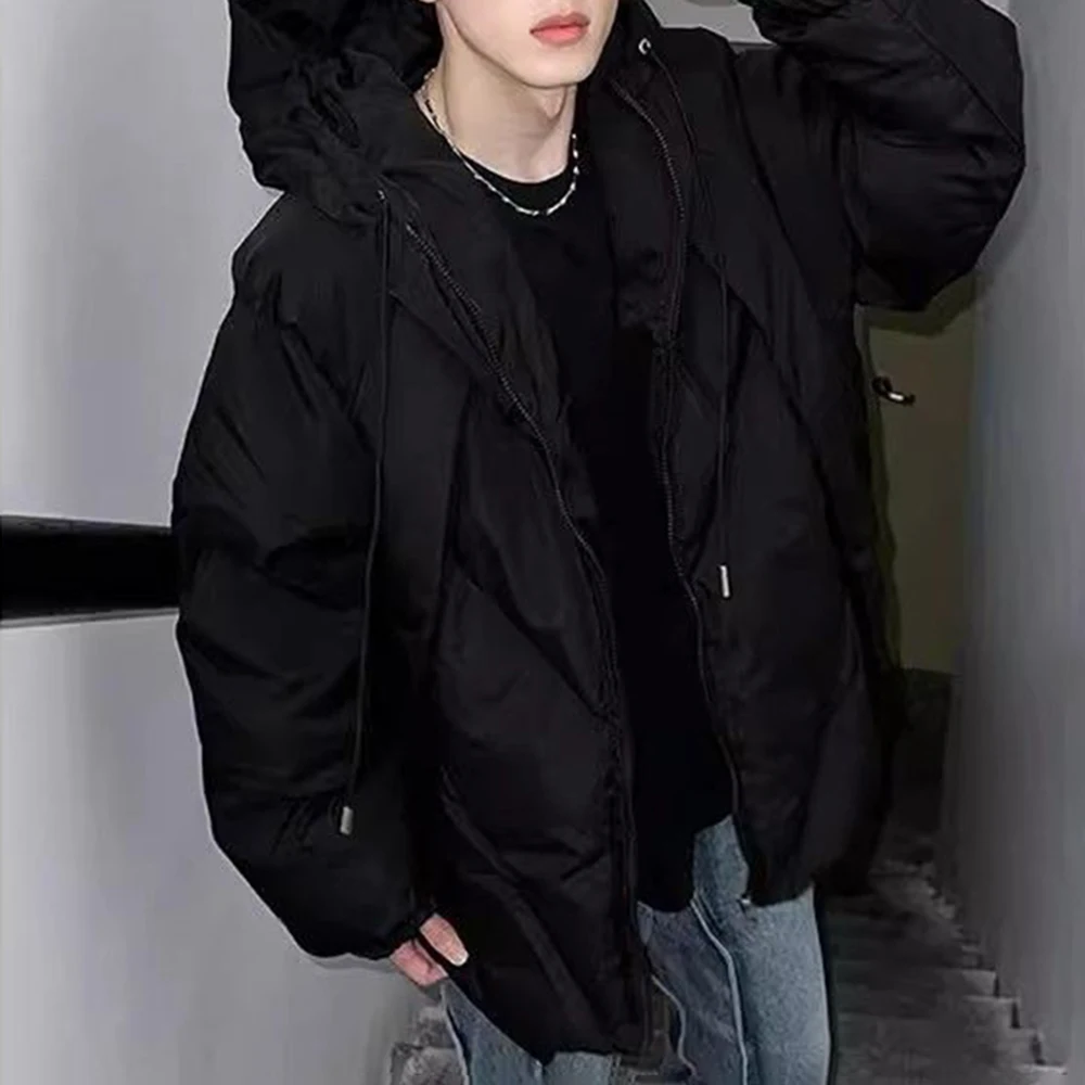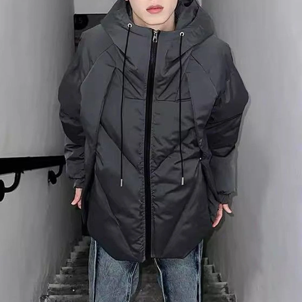 Threebooy Autumn Winter Cotton Coat For Men Fashion Niche Design Deconstruction Thin Hooded Cotton Coat Trendy Brand Handsome Y2k Jacket