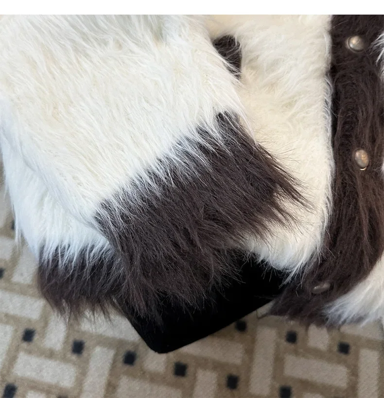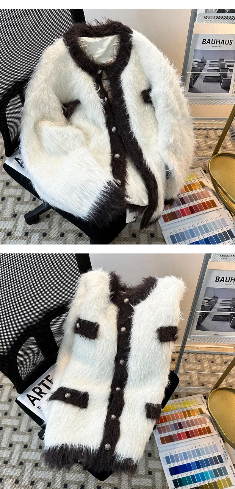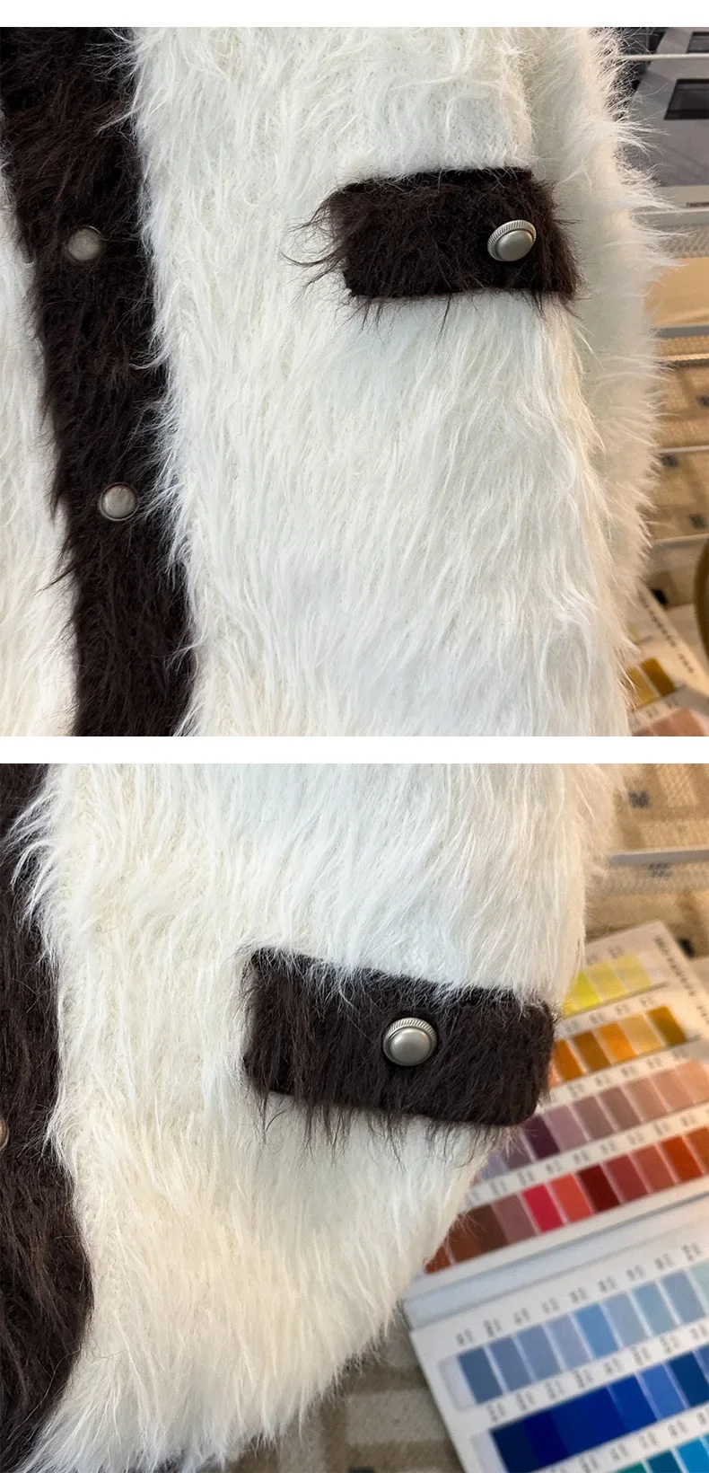 Threebooy Autumn/Winter New Men's Mink Sweater Jacket Sensibility Nichetweed Style Color Blocking Knitted Cardigan Thick