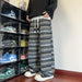 Threebooy Autumn Woolen Pants Men Fashion Retro Stripe Pants Men Streetwear Hip-hop Loose Wide Leg Pants Mens Vintage Trousers Large Size