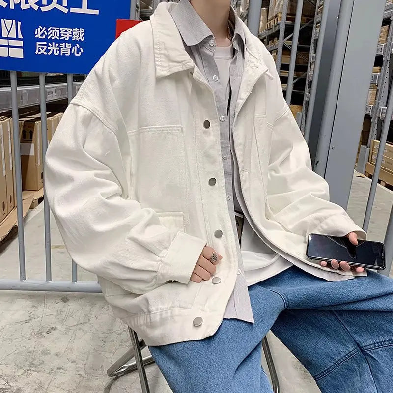 Threebooy Black Denim Short Jacket Men Jeans Jacket Coats Oversized Harajuku Denim Jeans Jacket Bomber Streetwear Man Clothing Outwear