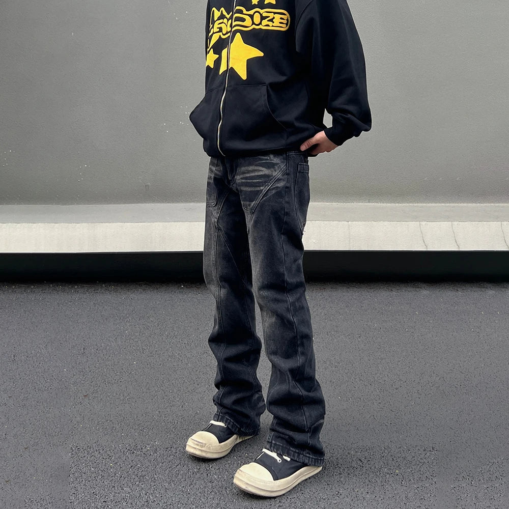 Threebooy Black Jeans Men Street Fit Casual Vaqueros Pantalones Hombre Autumn Streetwear Skinny Fashion Winter Trousers Y2k Denim Pants