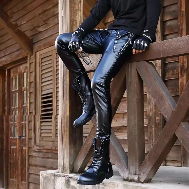 Threebooy Black Motorcycle Leather Pants Gothic Skinny Fashion Faux Pu Leather Leggings Hip Hop Harajuku Waterproof Street 6XL