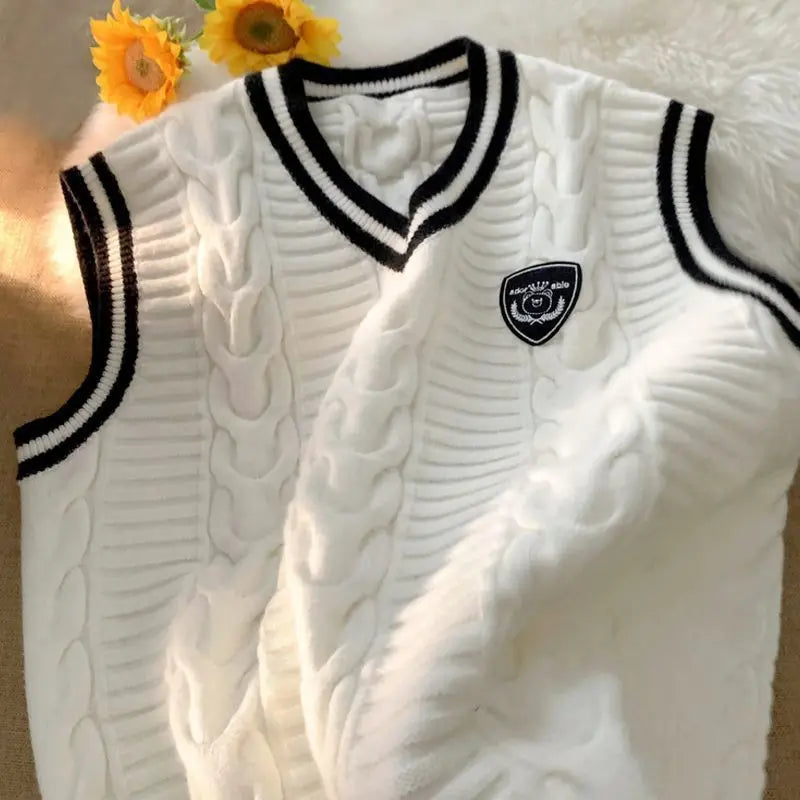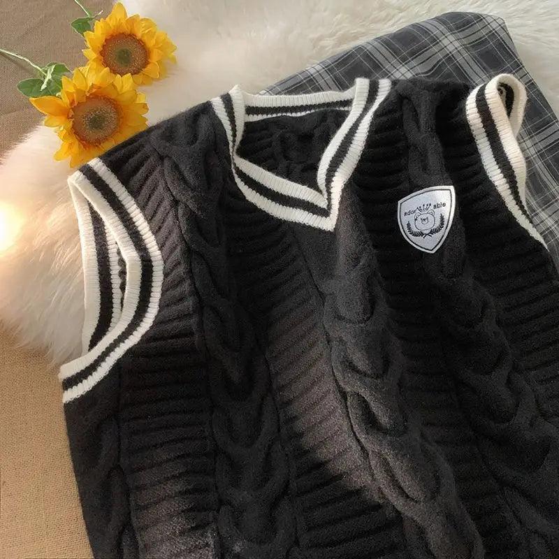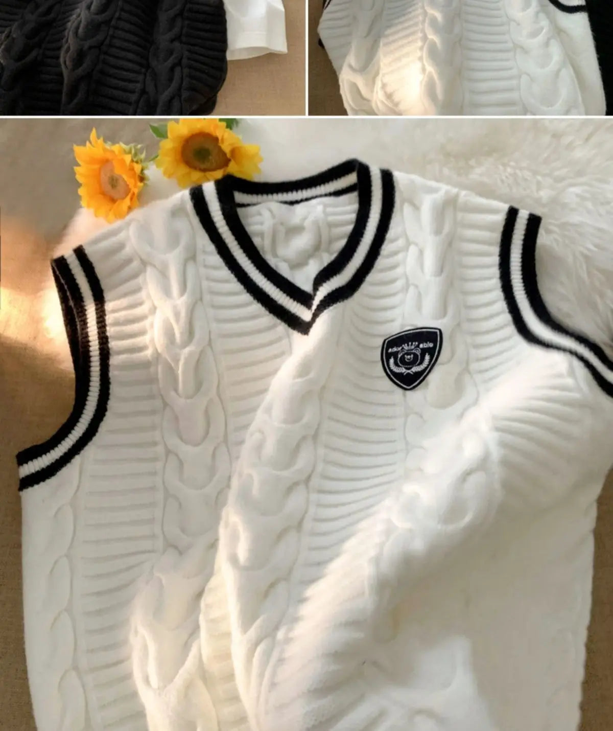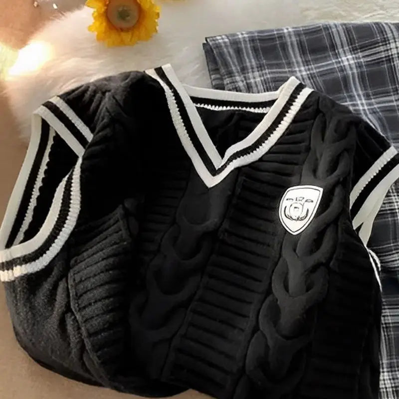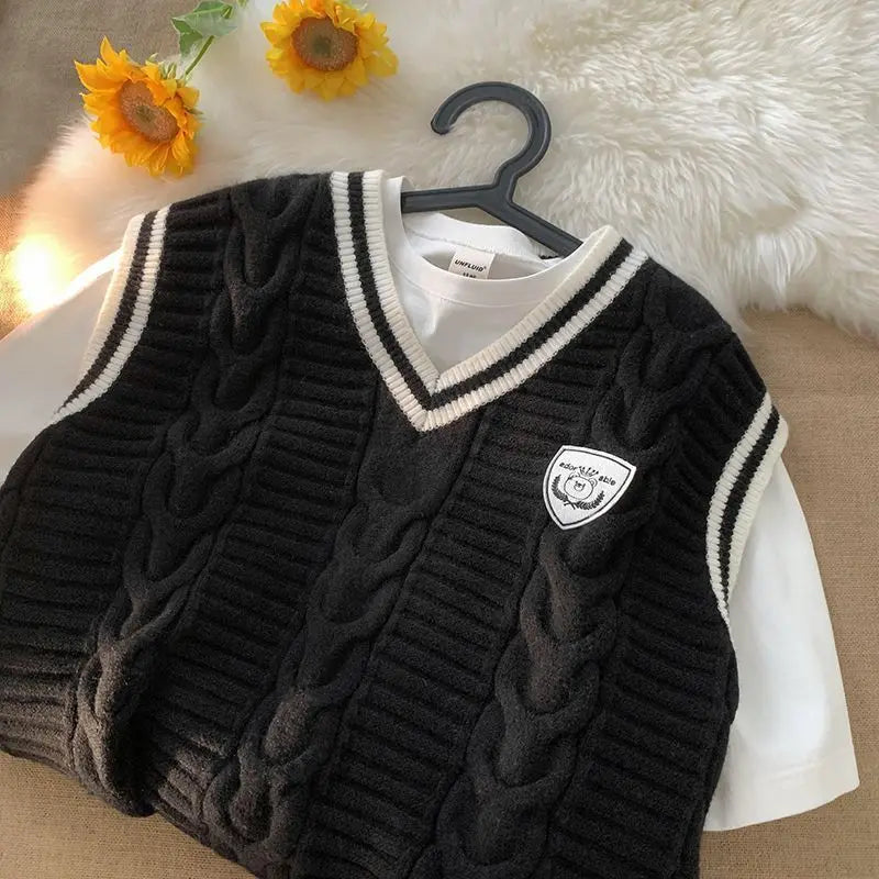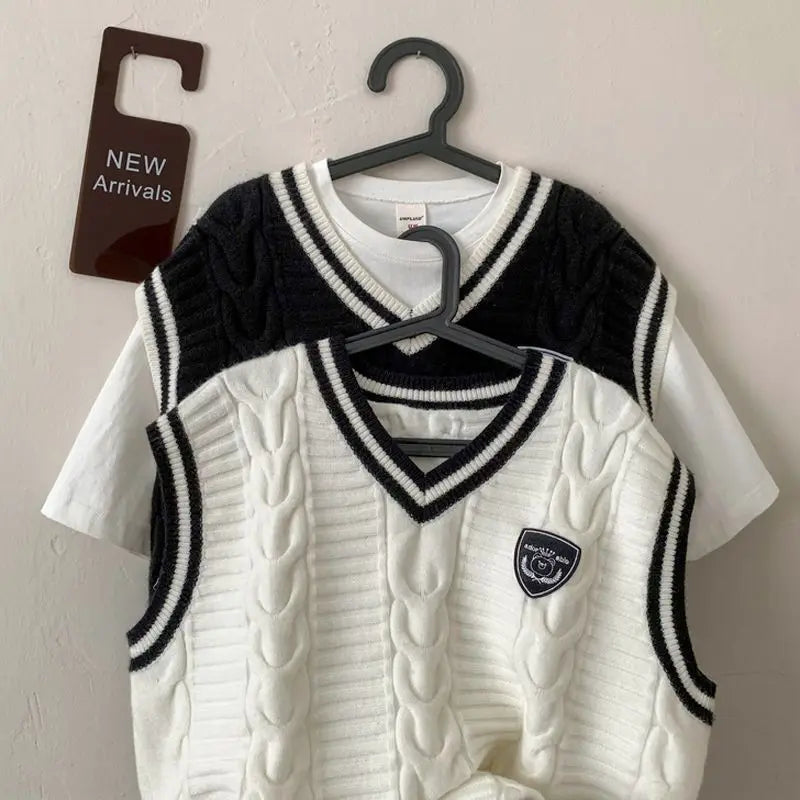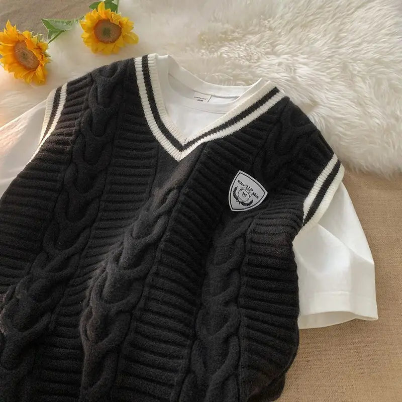 Threebooy British Style Fashion Vest Sweater Men's Korean Version 2025 Autumn Trend Loose College Sweater Couple Vest Sweater Aesthetic