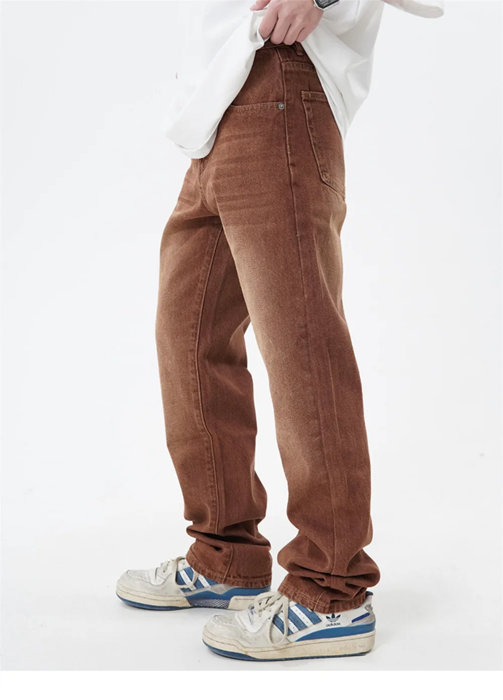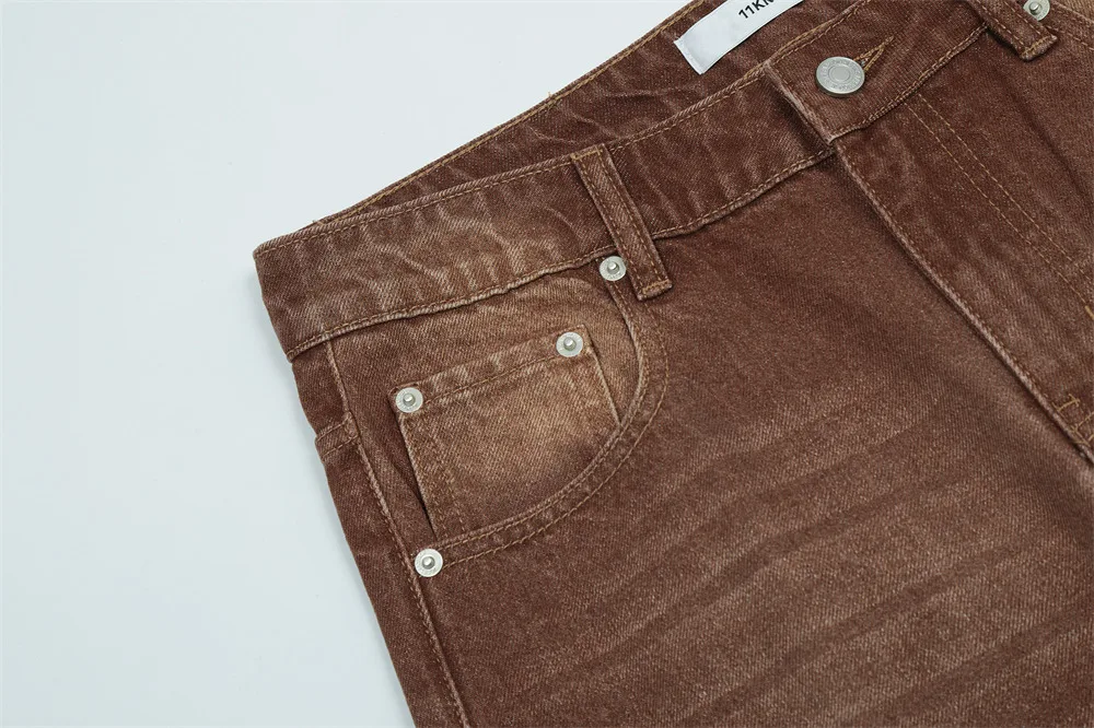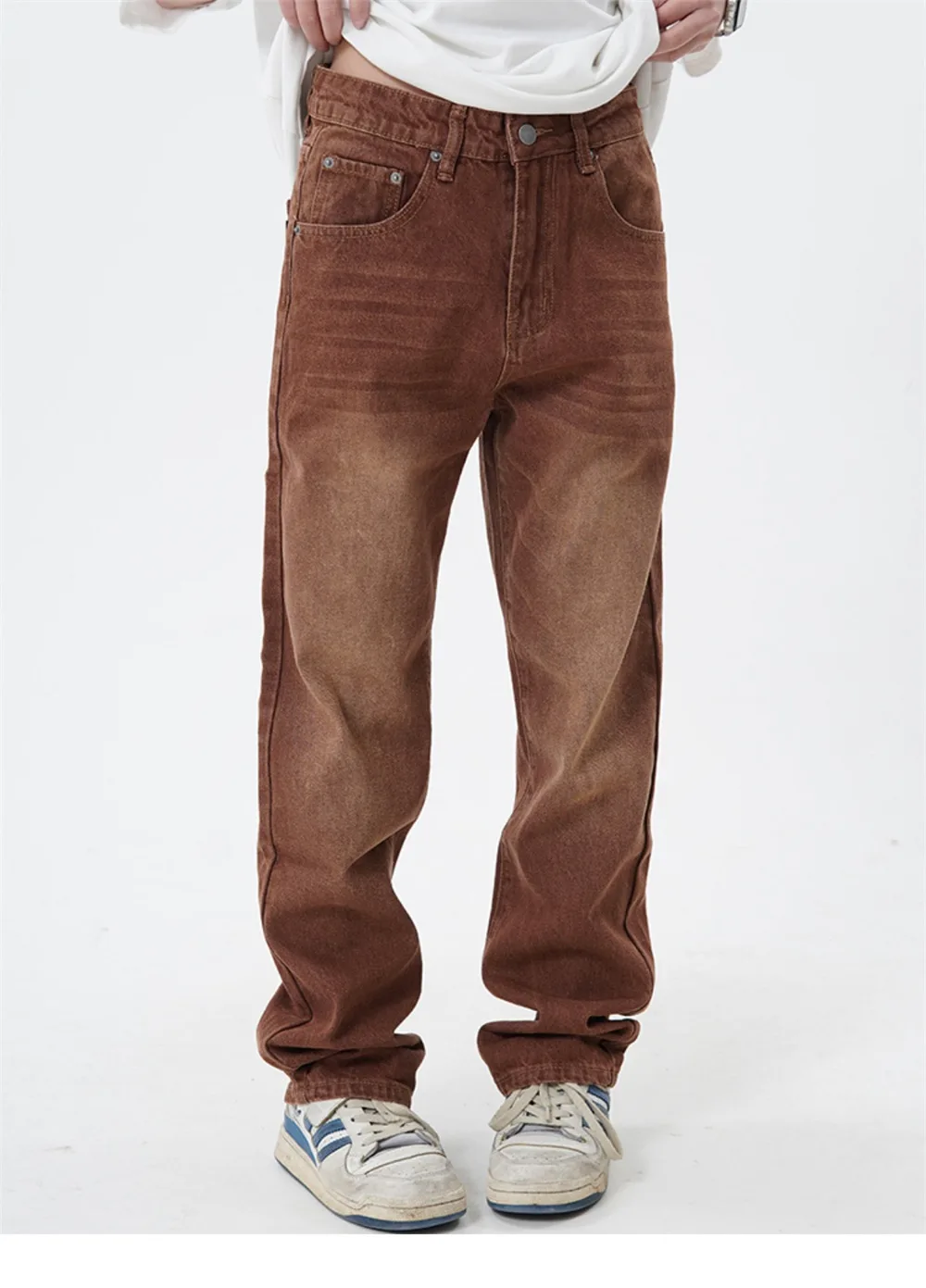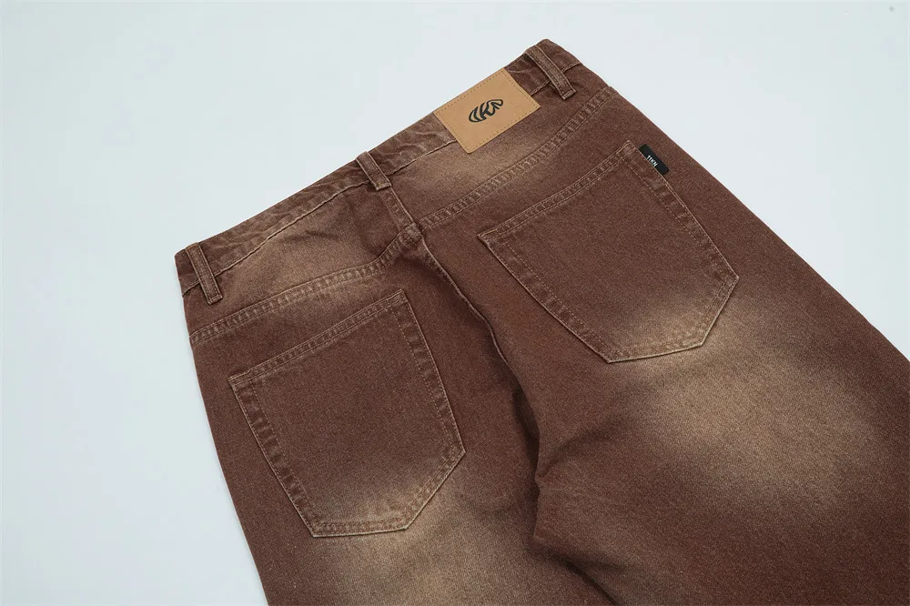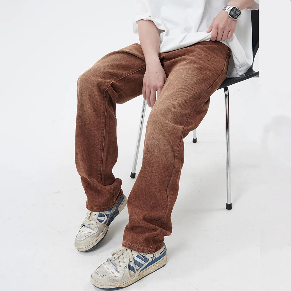 Threebooy Brown Jeans Men Straight-leg Streetwear Casual Loose Simple Solid Unisex Trousers Summer Vintage Fashion High Street Denim Pants