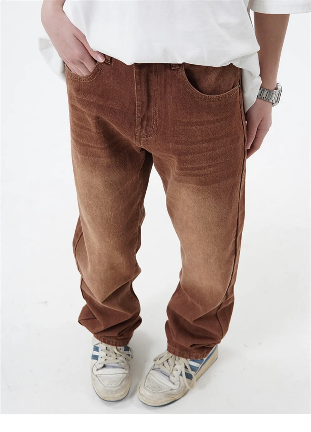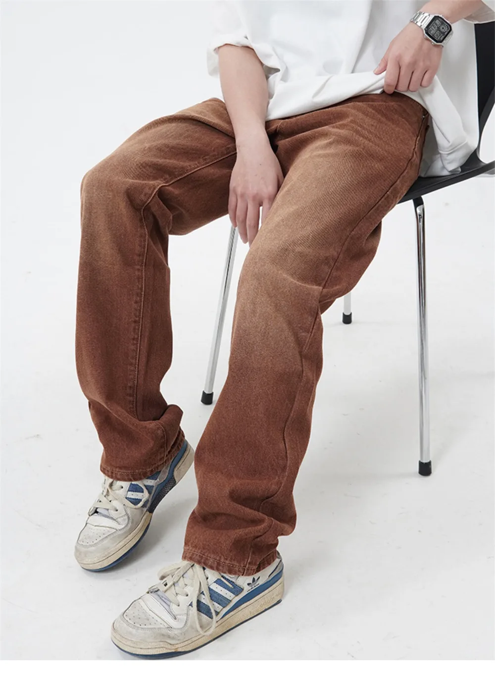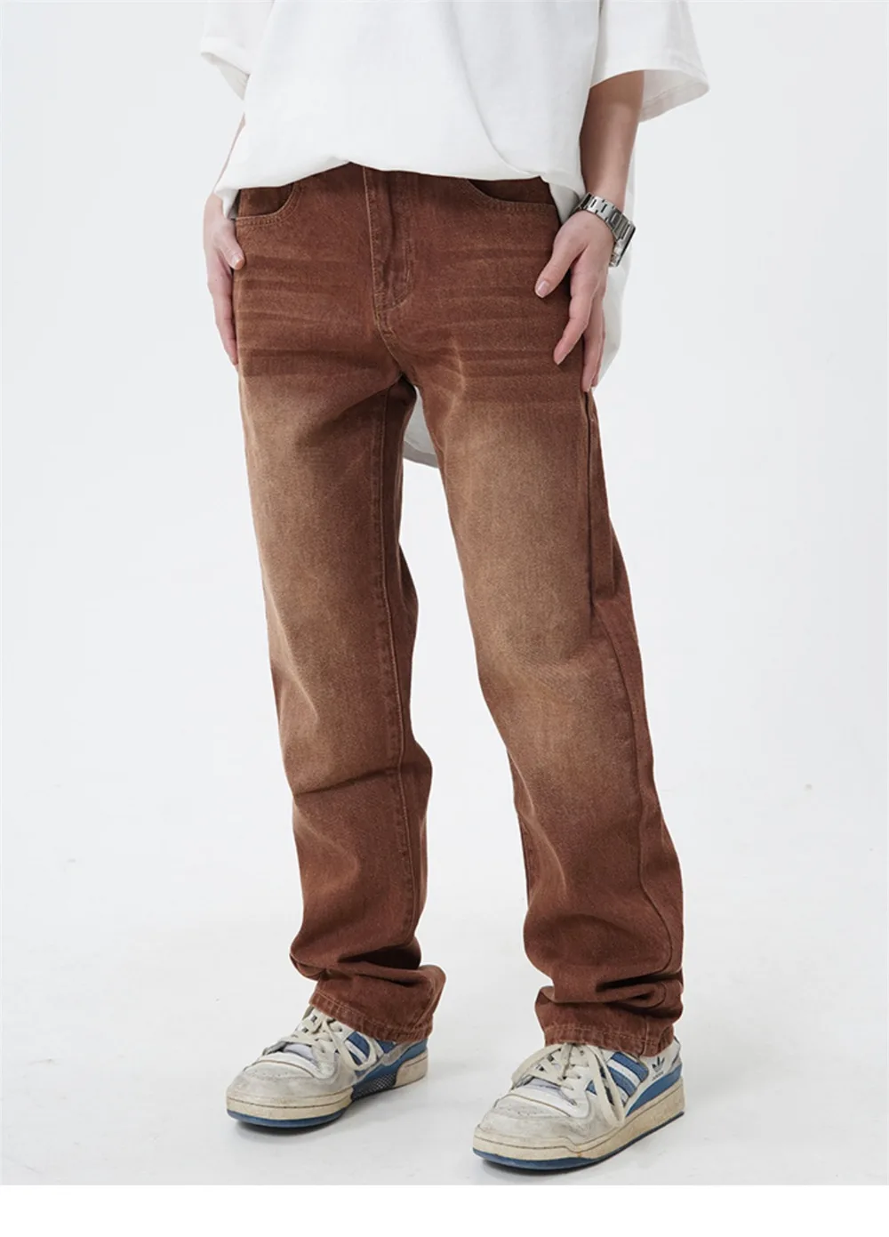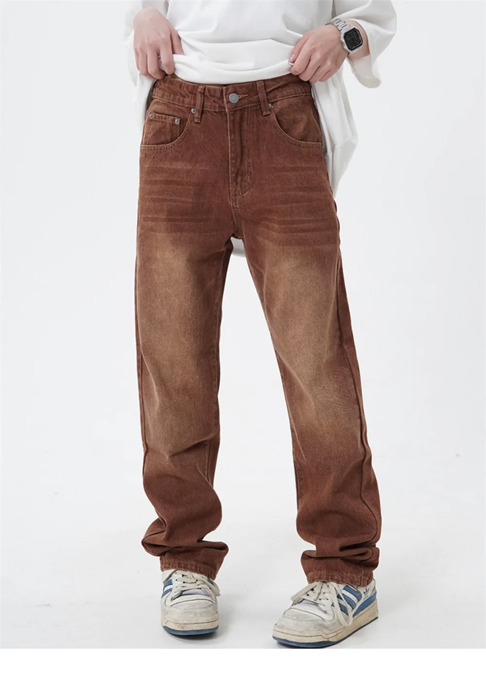 Threebooy Brown Jeans Men Straight-leg Streetwear Casual Loose Simple Solid Unisex Trousers Summer Vintage Fashion High Street Denim Pants