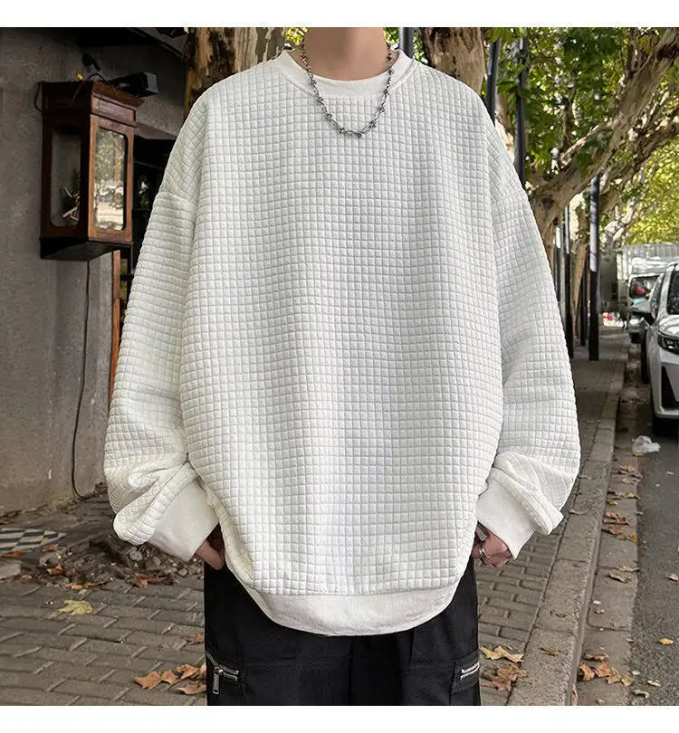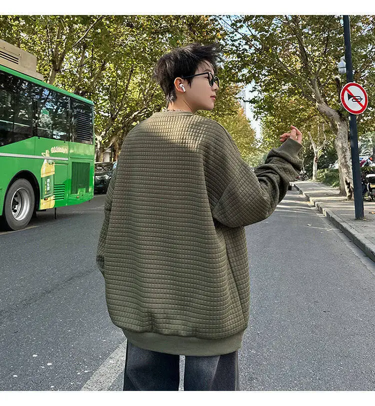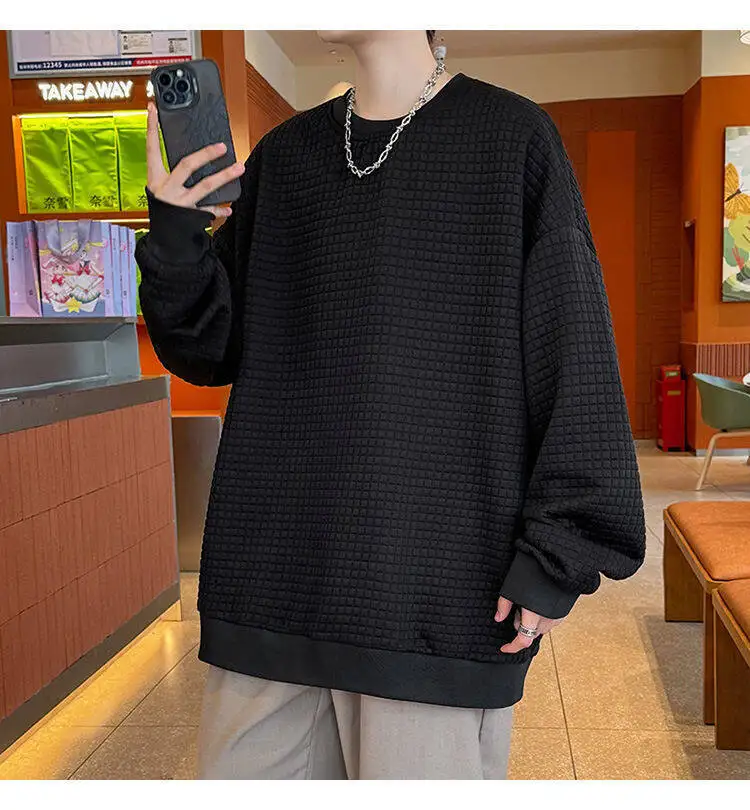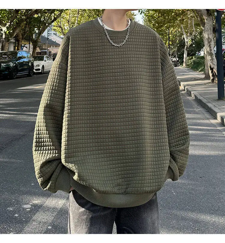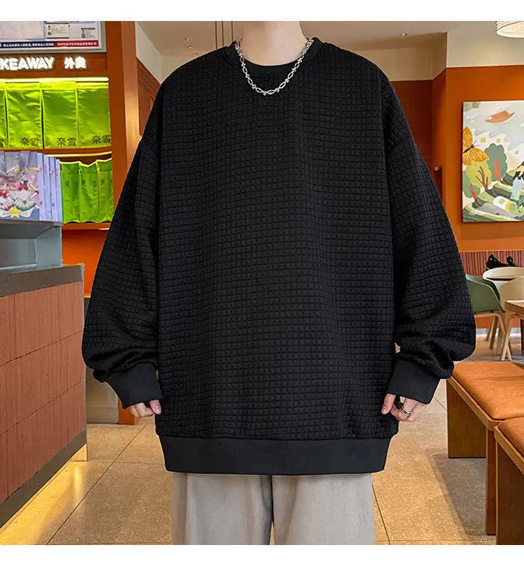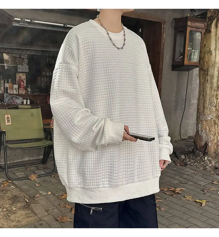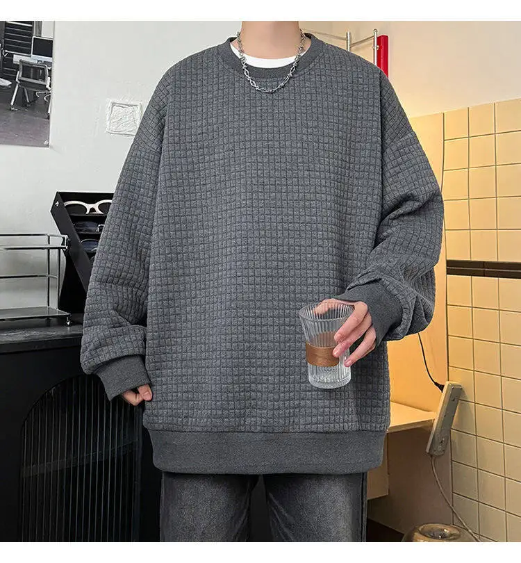Threebooy Checkered Hoodie Men Fashion Casual Pullover Sweatshirt Men Oversized Streetwear Hip-hop Loose Round Neck Hoodie Mens Mens