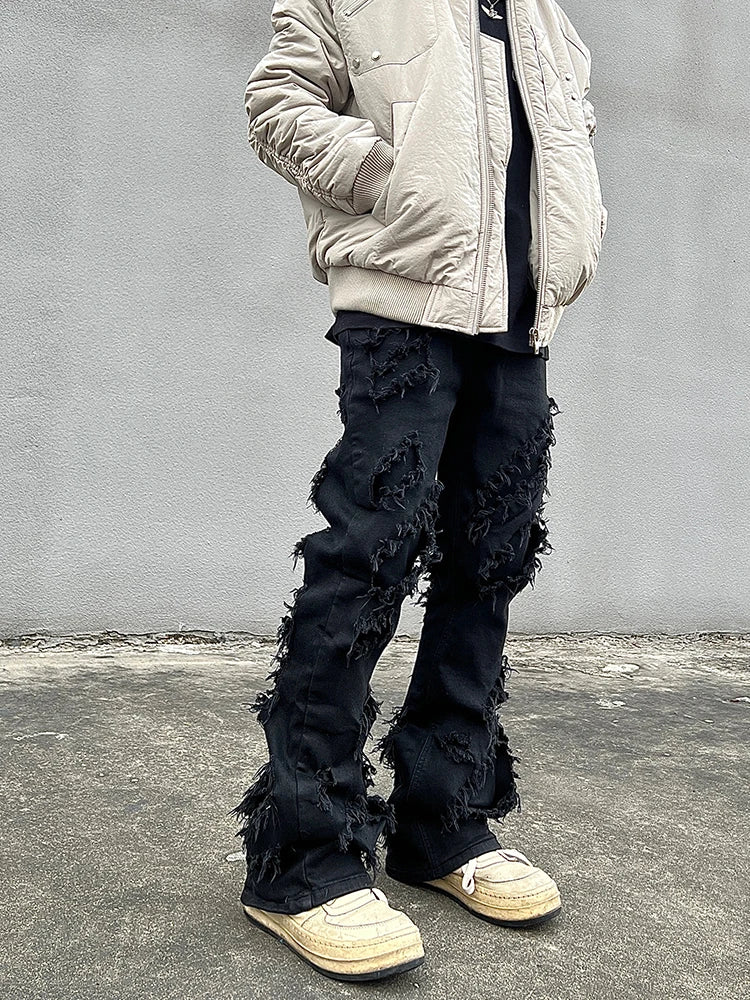 Threebooy Destroyed Erosion Jeans Men's Ins Fashion Brand ro Pants High Street vibe Broken Straight Barrel Micro Flared Pants