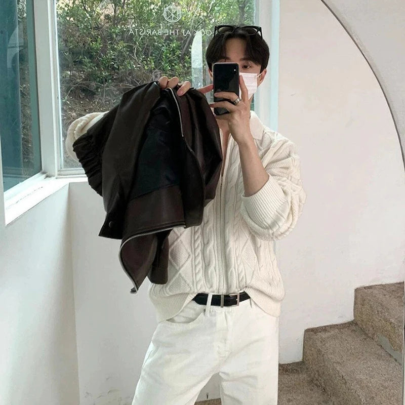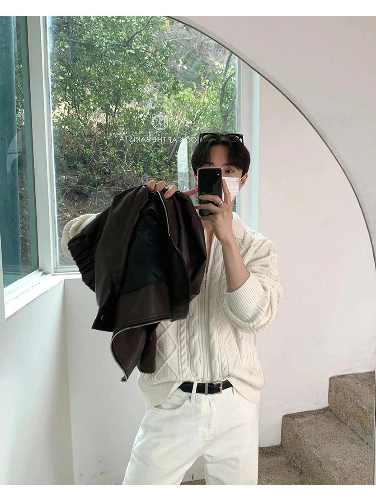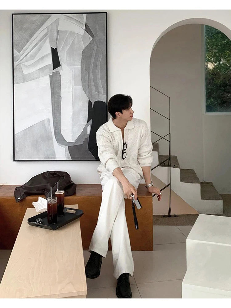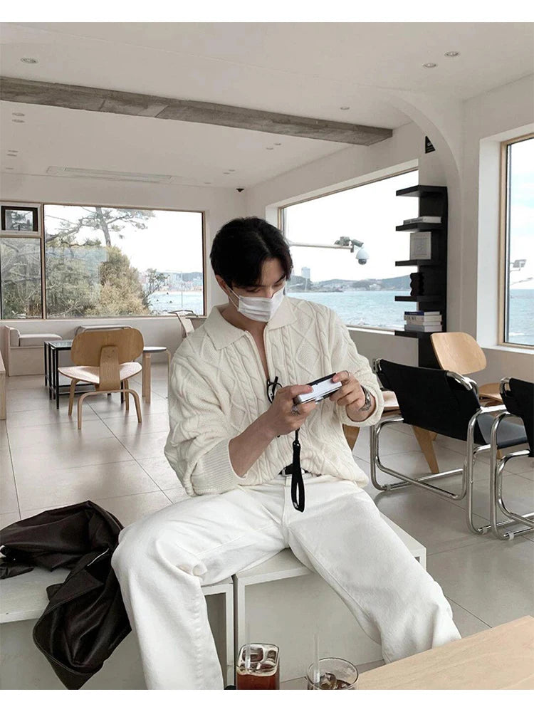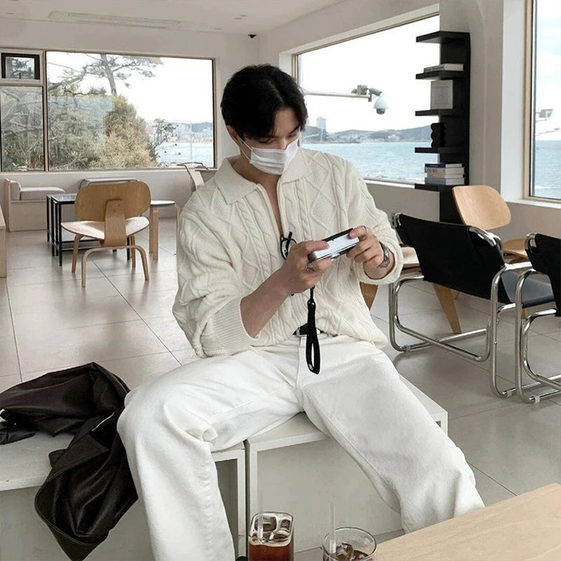 Threebooy Diamond Graphics Textured Twist Zipper Men Cardigan Light Luxury Lapel Long Sleeve Sweater Coats Premium Quality Knitted Jackets