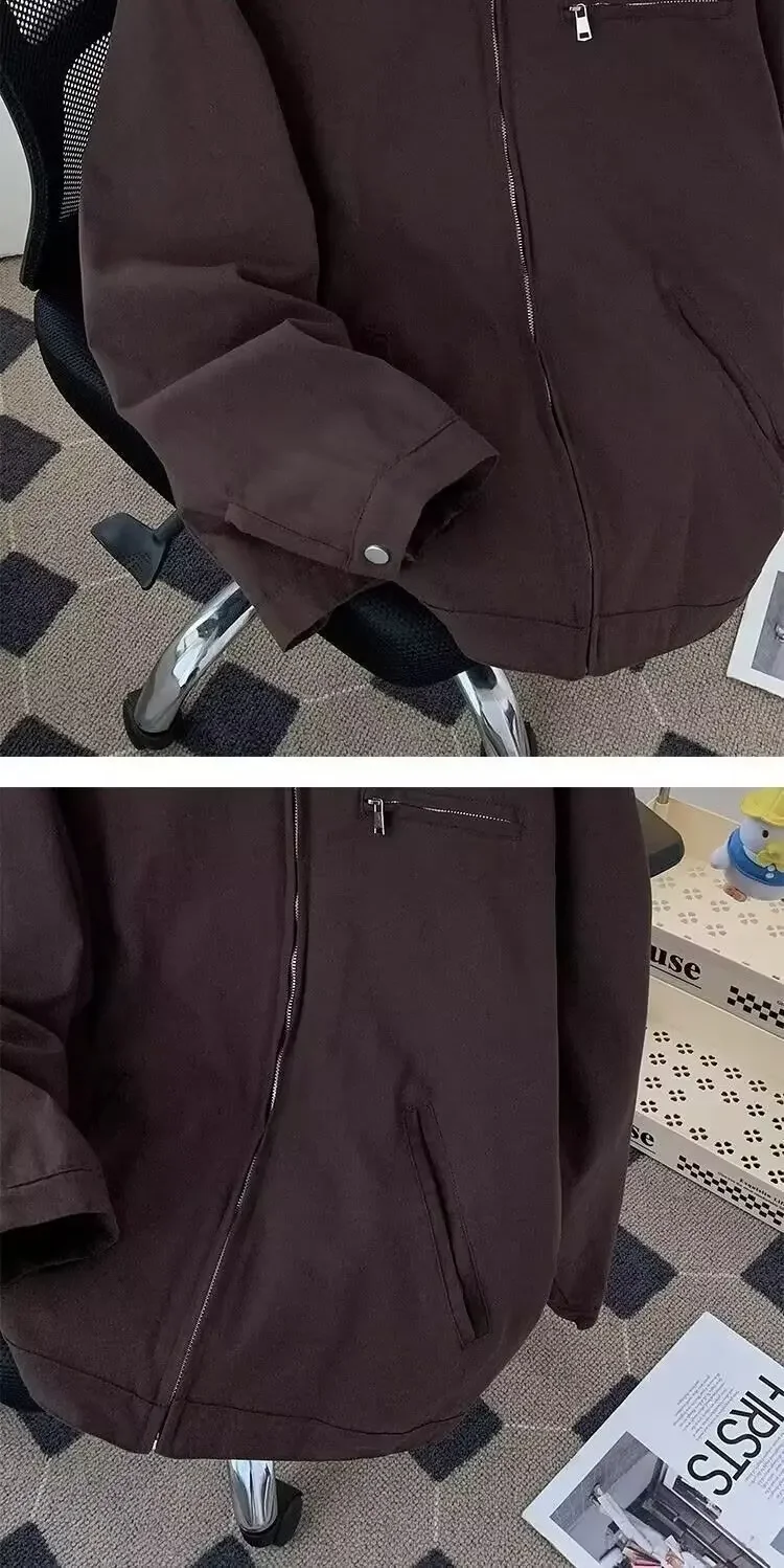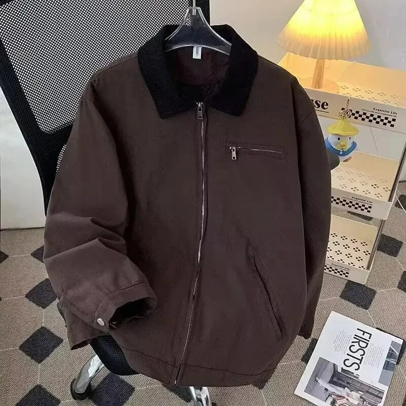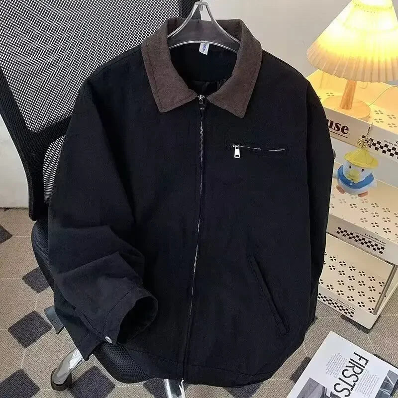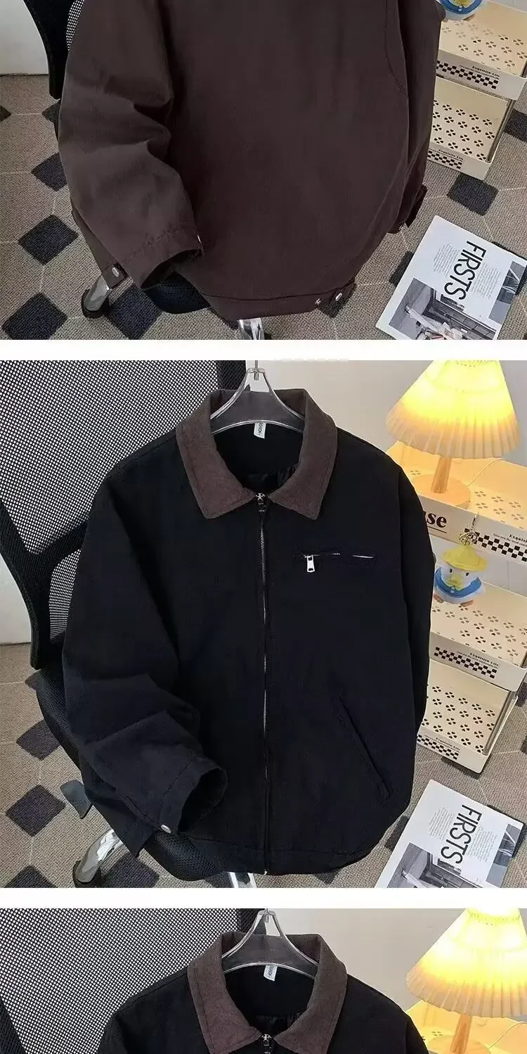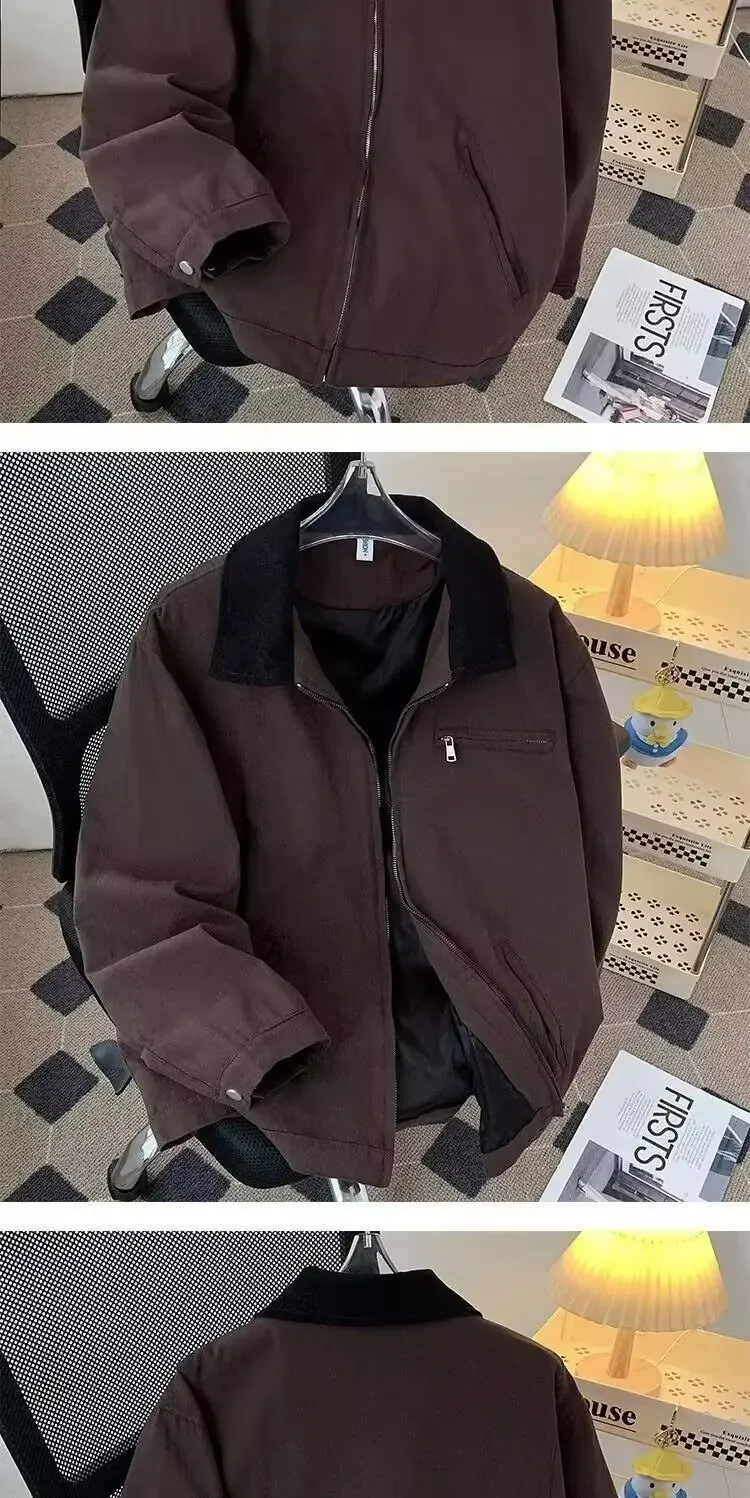 Threebooy Distressed Design Sensibility Men's Lapel Jacket New Vintage Washing Pilot Jacket Loose Fit Spring Autumn Season Aviation Theme