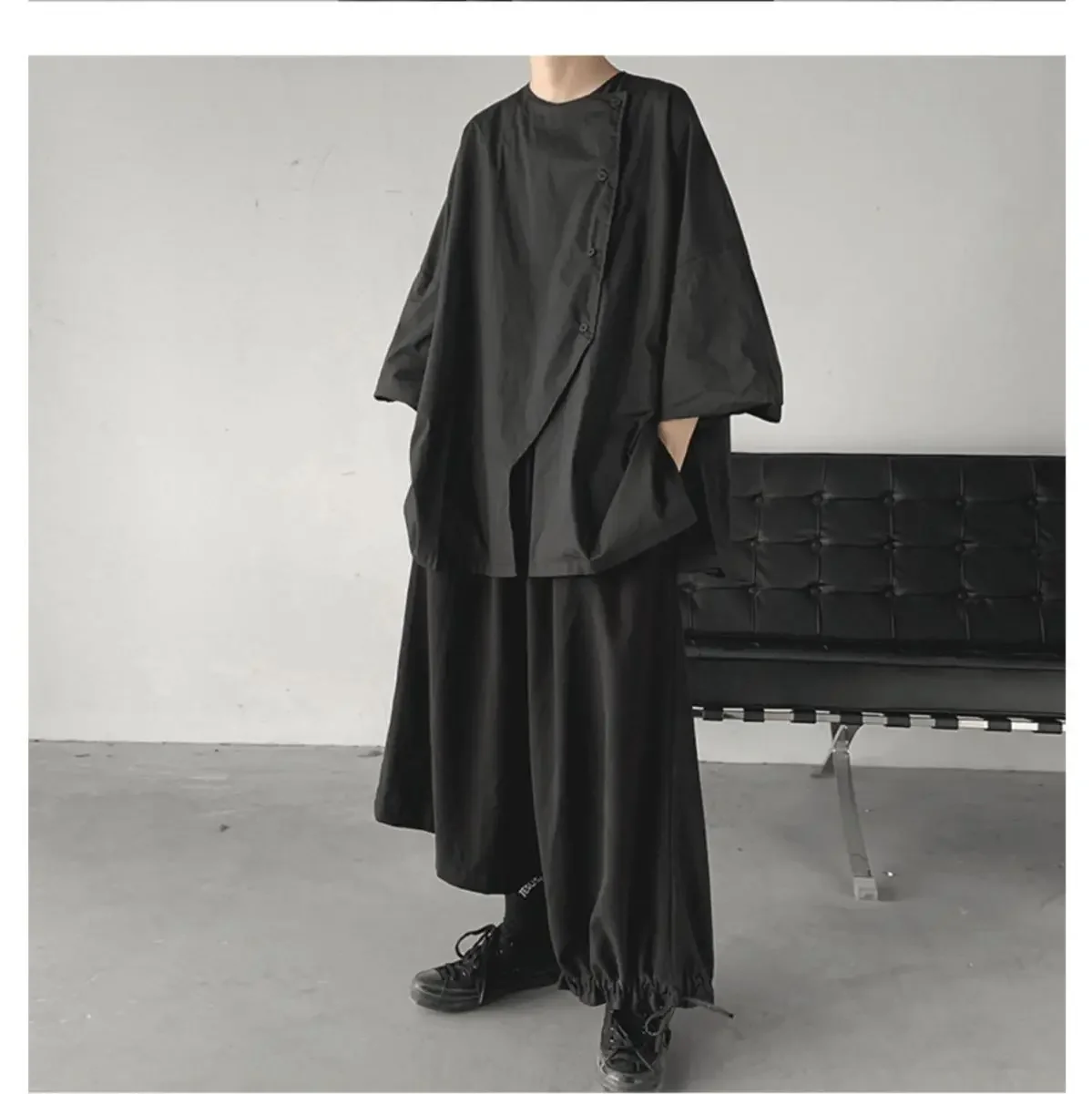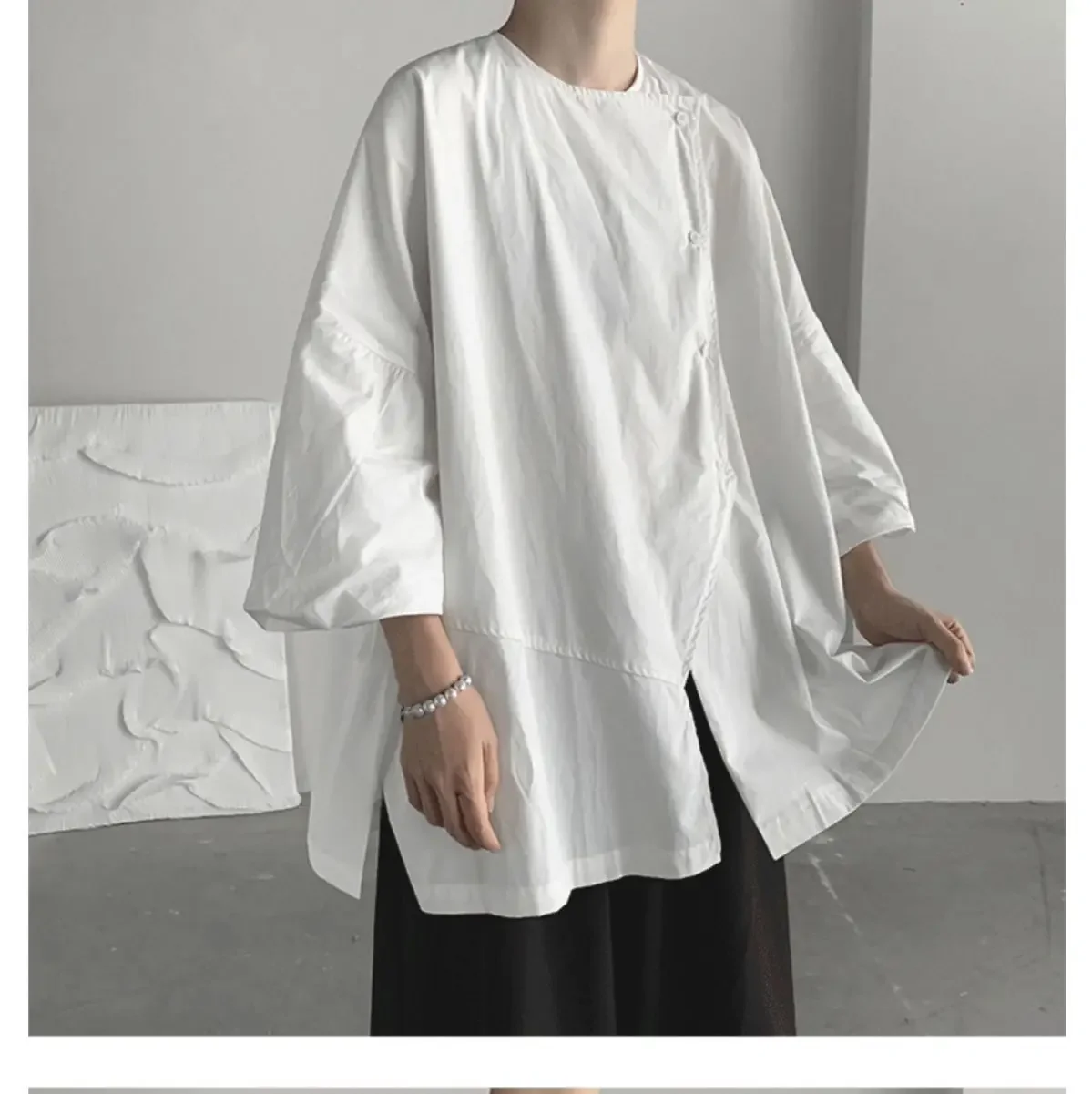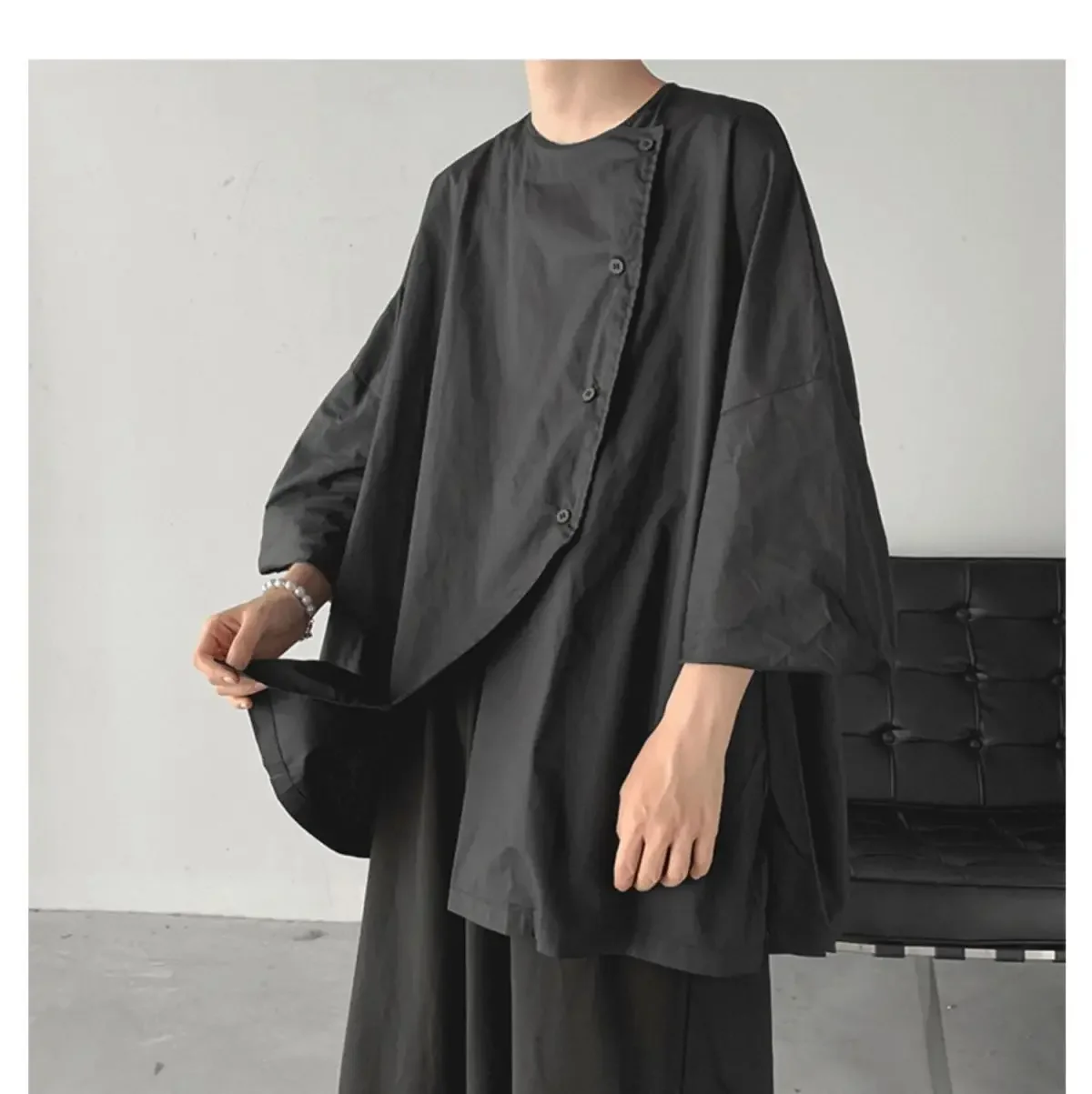 Threebooy Elegant Fashion Harajuku Slim Fit Ropa Hombre Loose Casual Sport All Match Outerwear Solid Button Three Quarter Sleeve Blusa