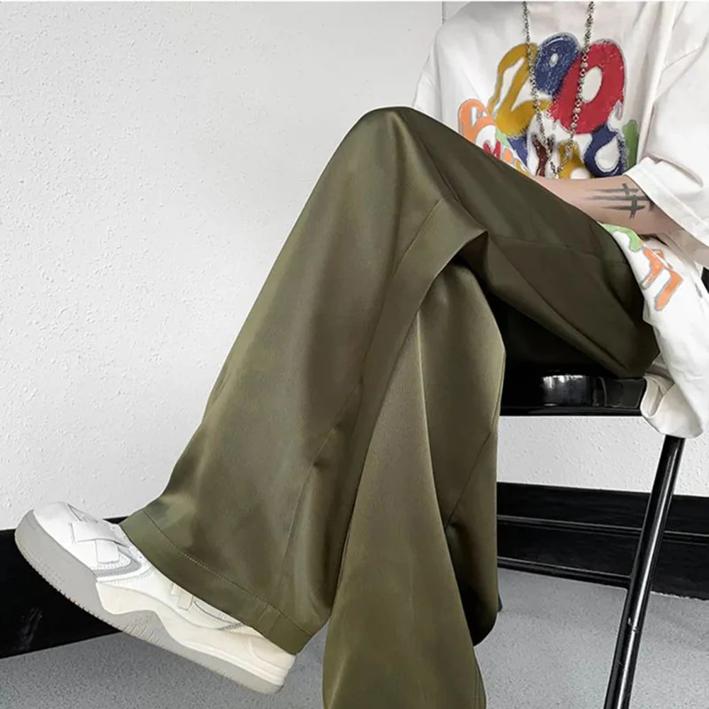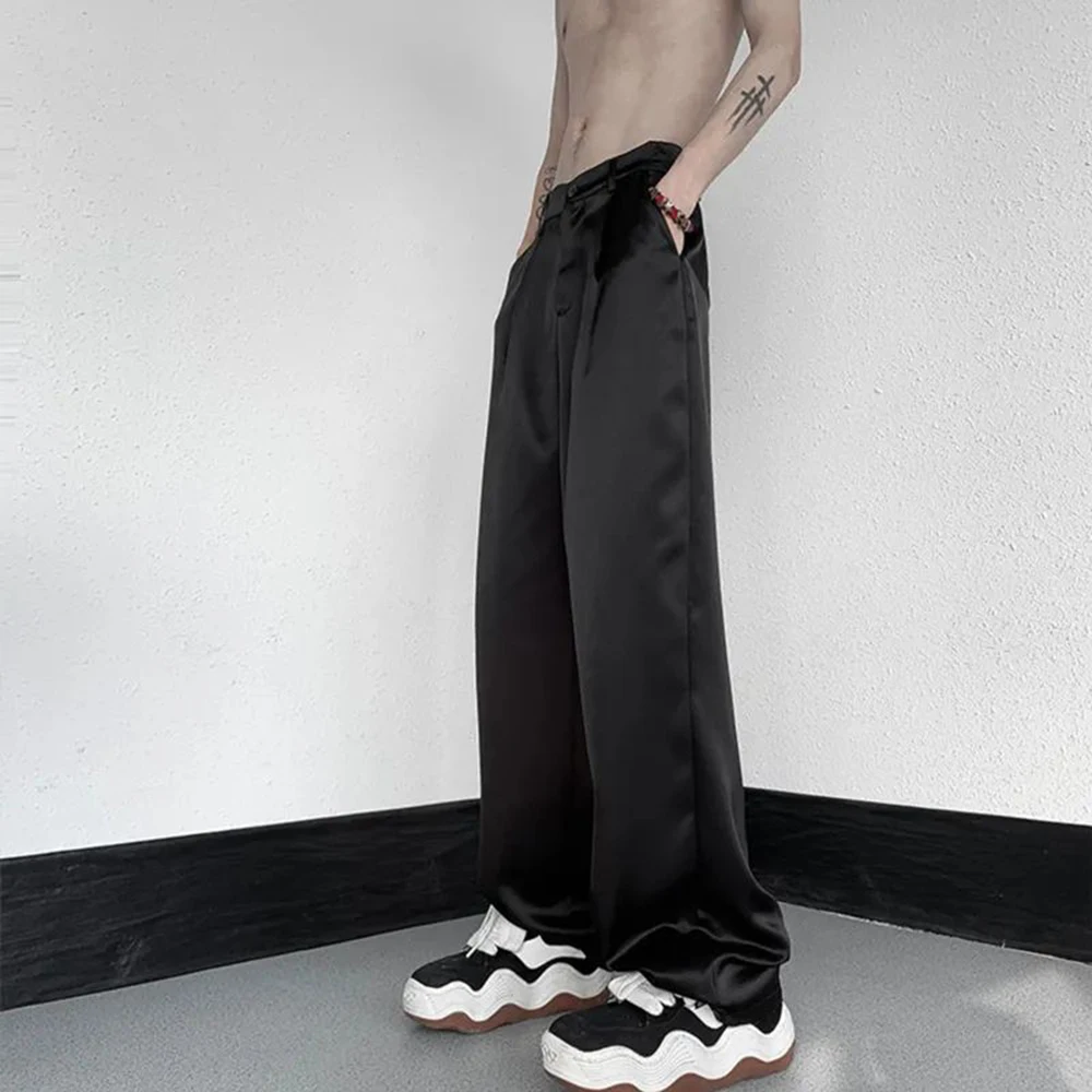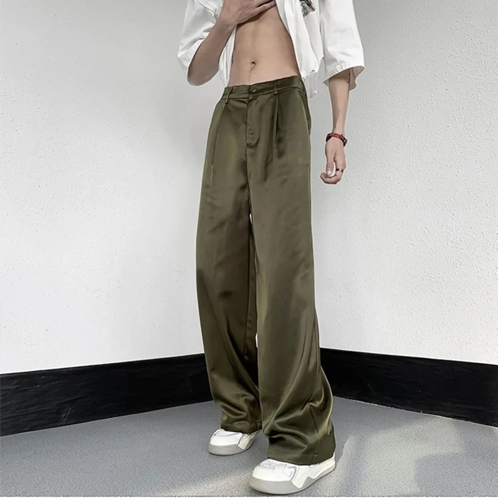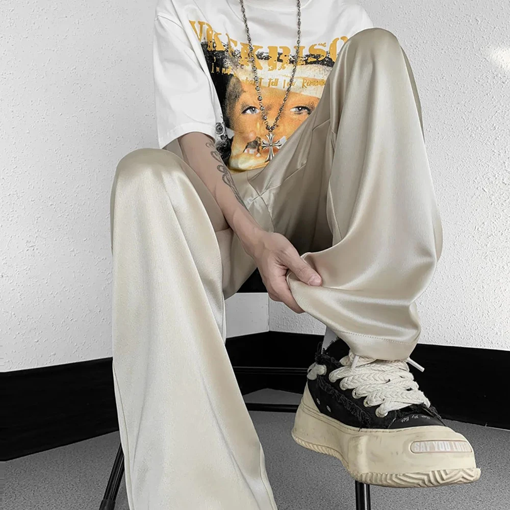 Threebooy Fashion Suit Pants Men Solid Dress Pants Korean Loose Straight Ice Silk Casual Pants Unisex Ormal Satin Glossy Wide-Leg Trousers