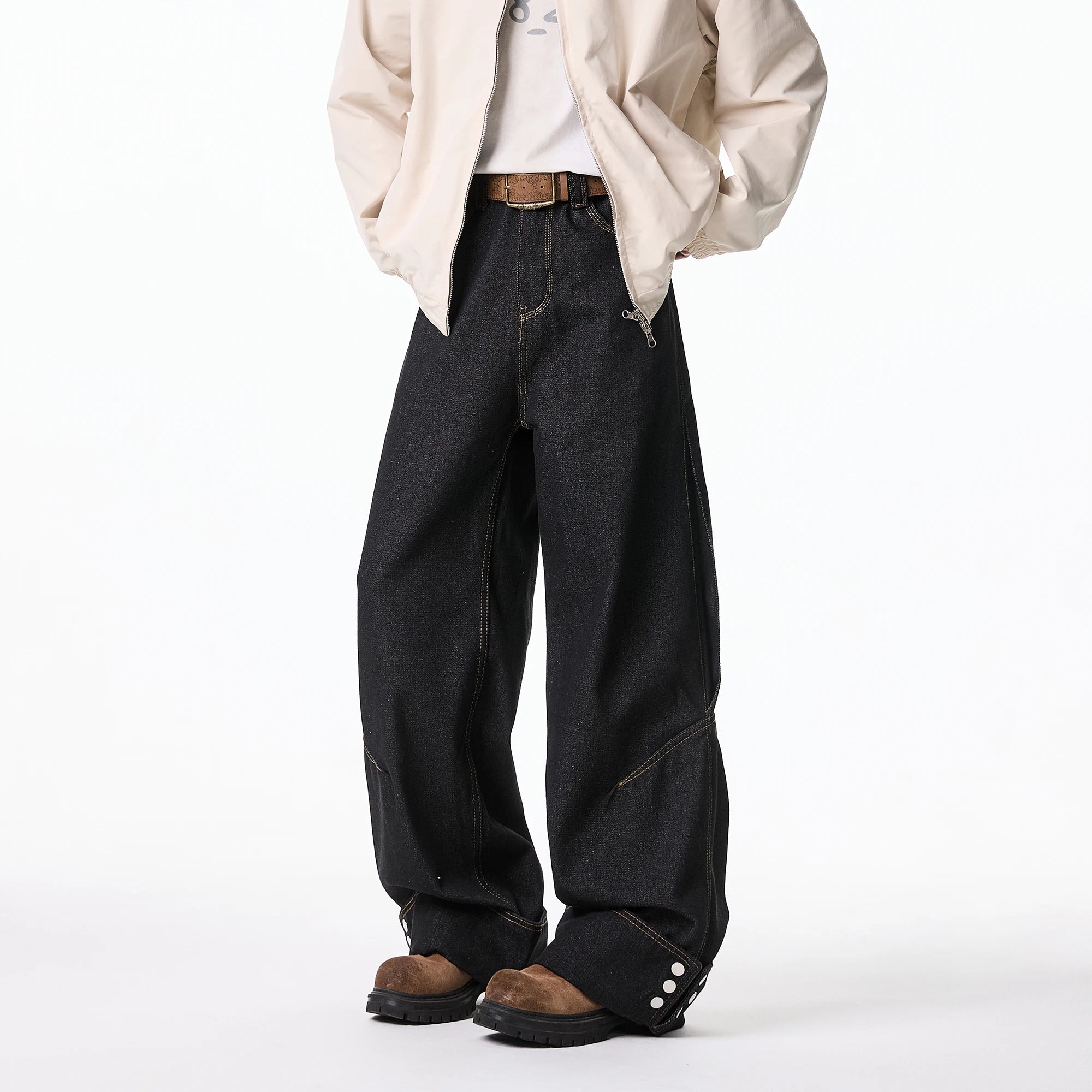 Threebooy Floor jeans men Wide Leg Denim Pants Baggy Low Waist Boyfriend Jeans Personality design Loose Fit Jeans Cyber Grunge Streetwear