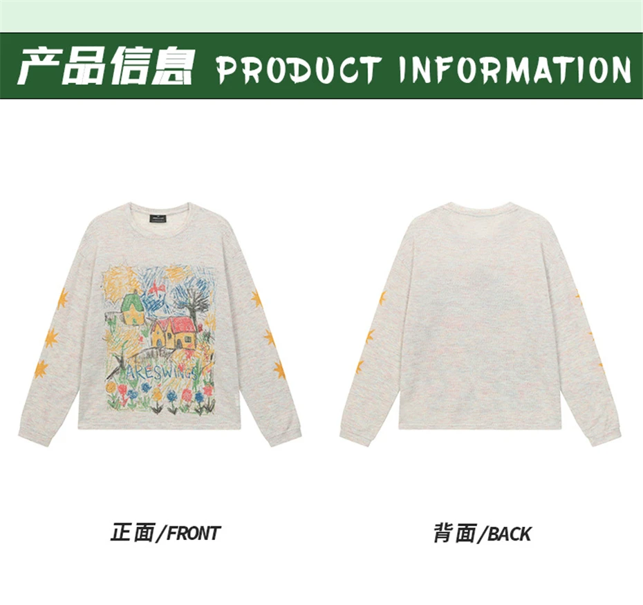 Threebooy Graffiti Print T-Shirt Men Retro Thin Long Sleeve T Shirt Streetwear Harajuku Summer New Hip Hop Loose Casual Tees Tops Male