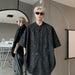 Threebooy Harajuku Blouses Men Bamboo Leaf Print Shirt Streetwear Button Up Short Sleeve Shirts Chinese Style Tops Unisex Cool Summer