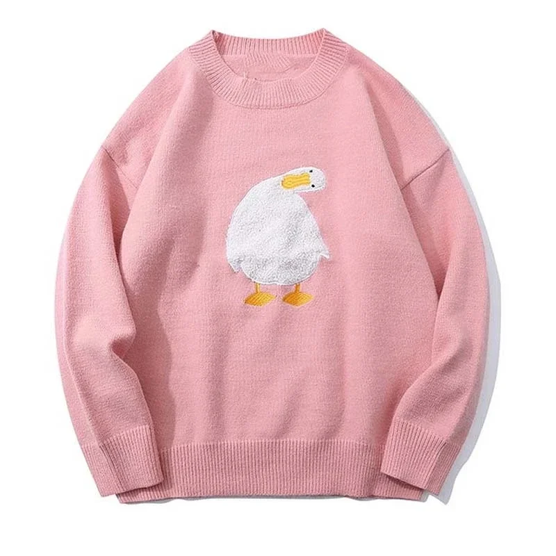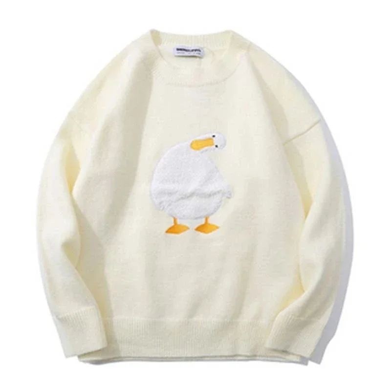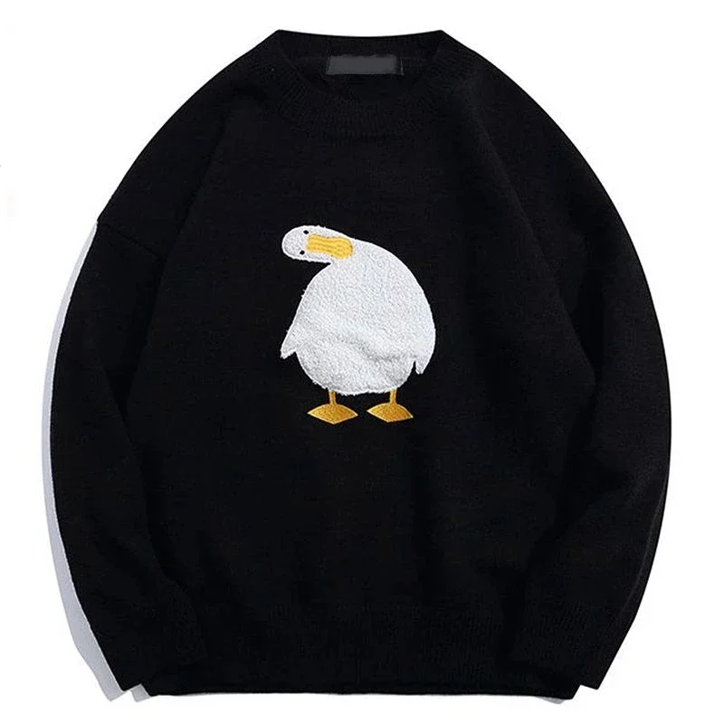 new design: Cartoon Duck Print Sweater Ripped Streetwear