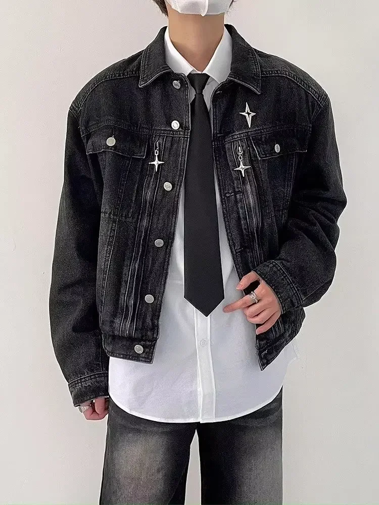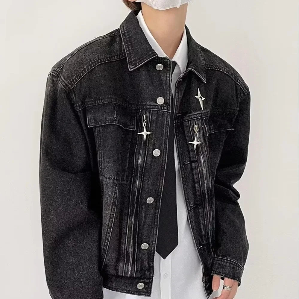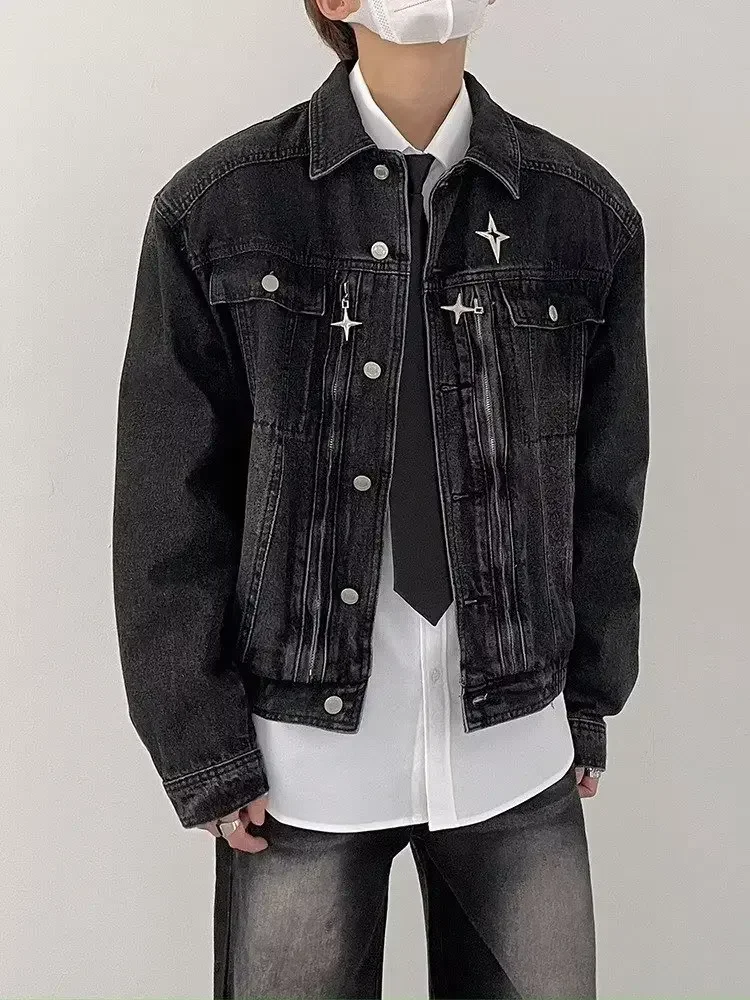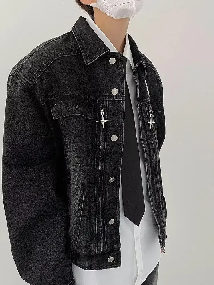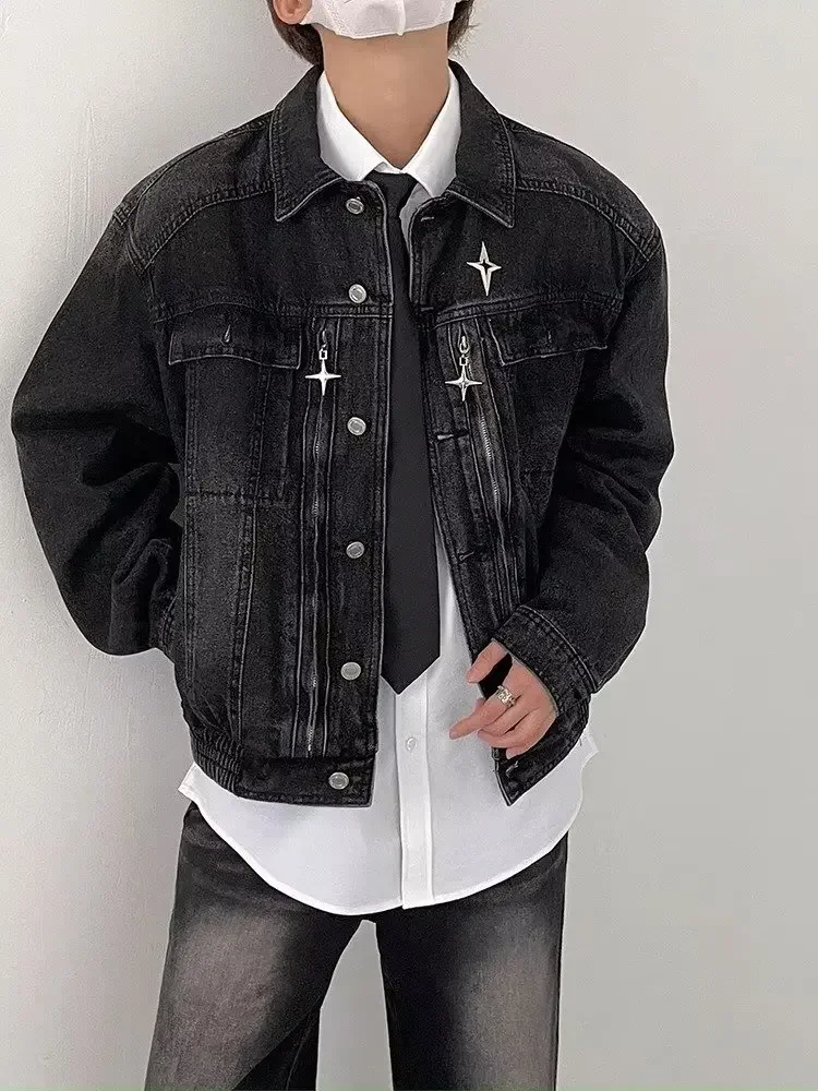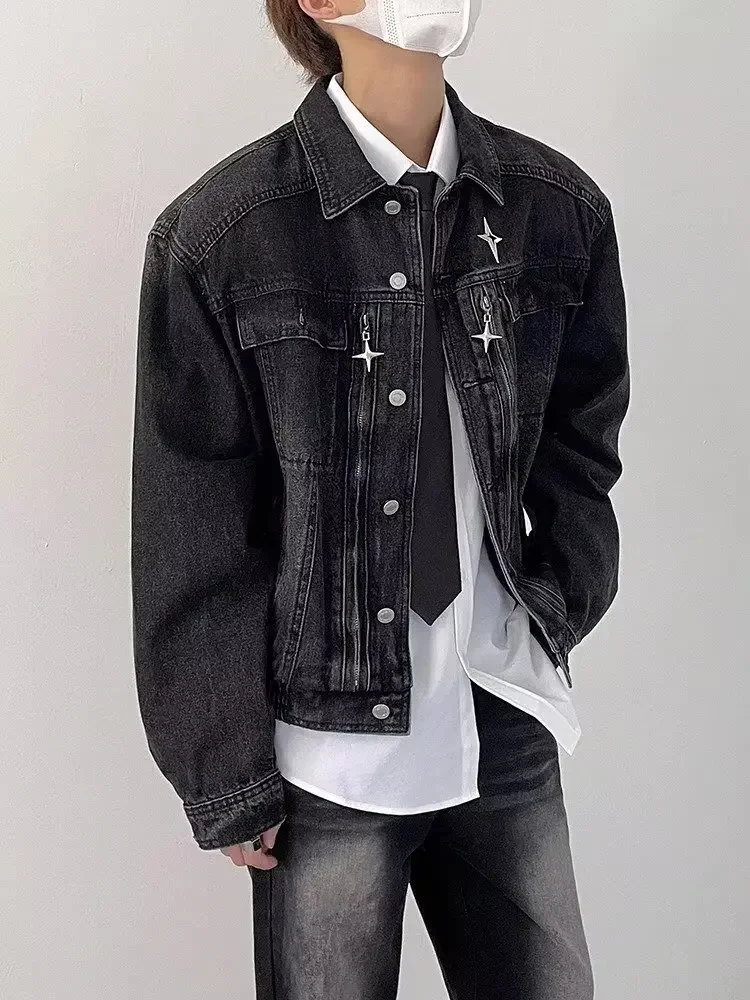 Threebooy Heavy Duty Washing Denim Jacket Metal Zipper Design Sensible Top Autumn Vintage Distressed Trendy Casual Cropped Jacket