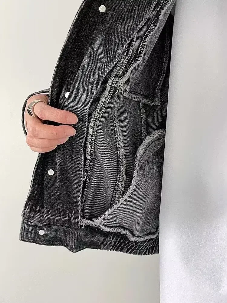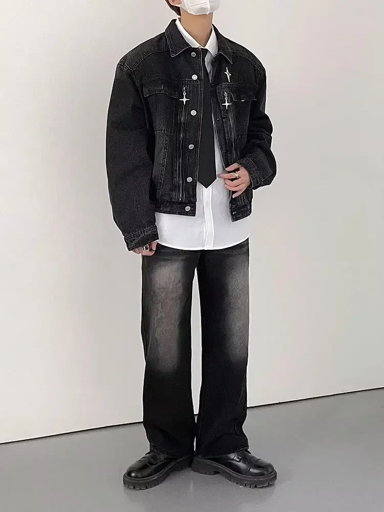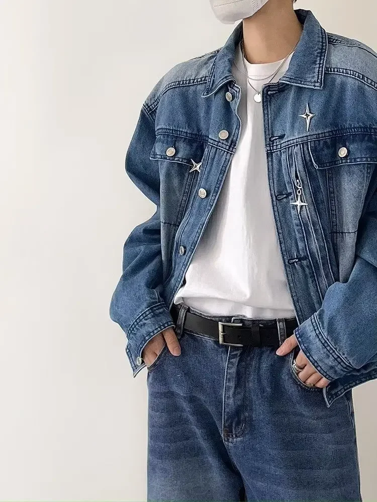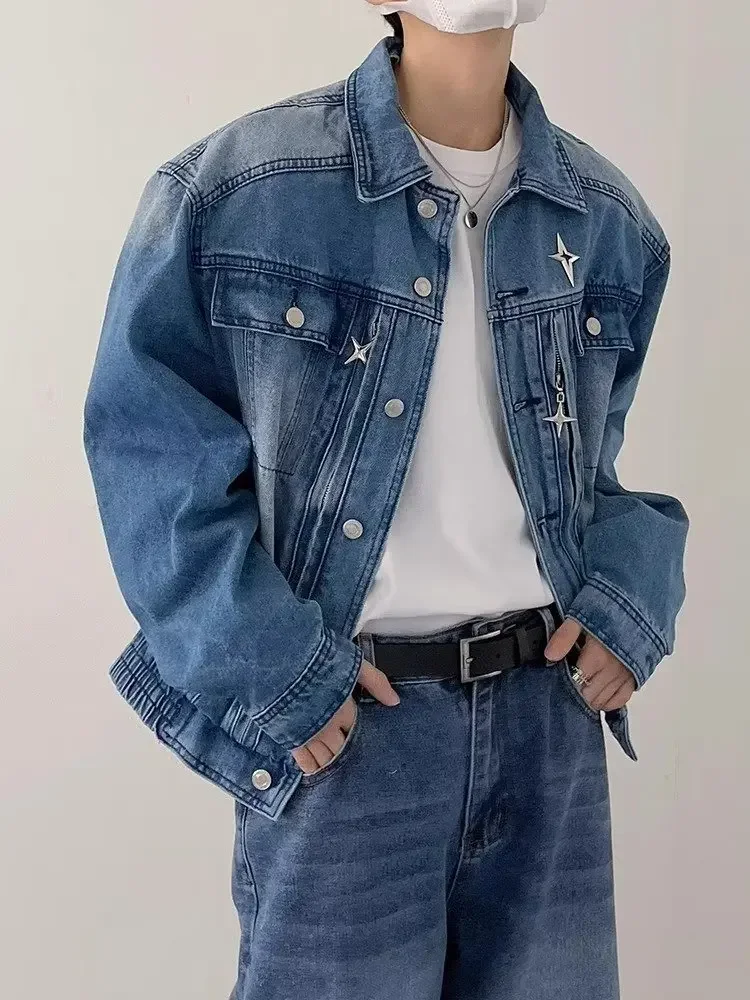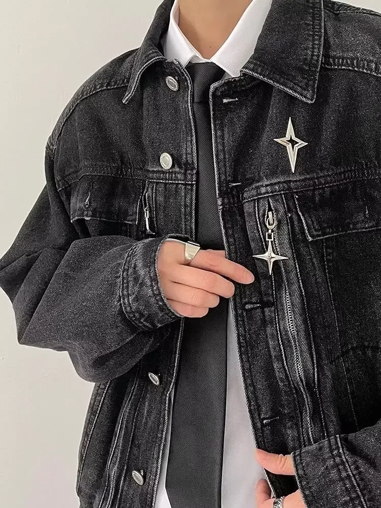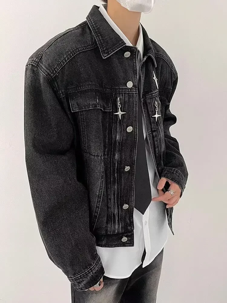 Threebooy Heavy Duty Washing Denim Jacket Metal Zipper Design Sensible Top Autumn Vintage Distressed Trendy Casual Cropped Jacket