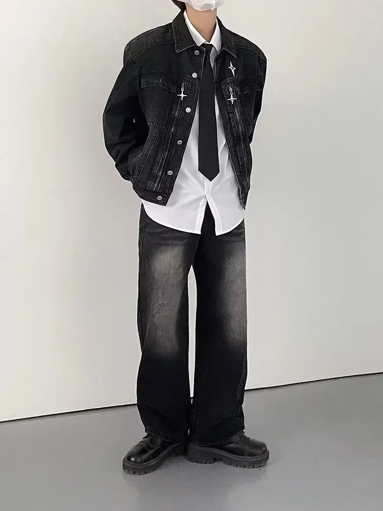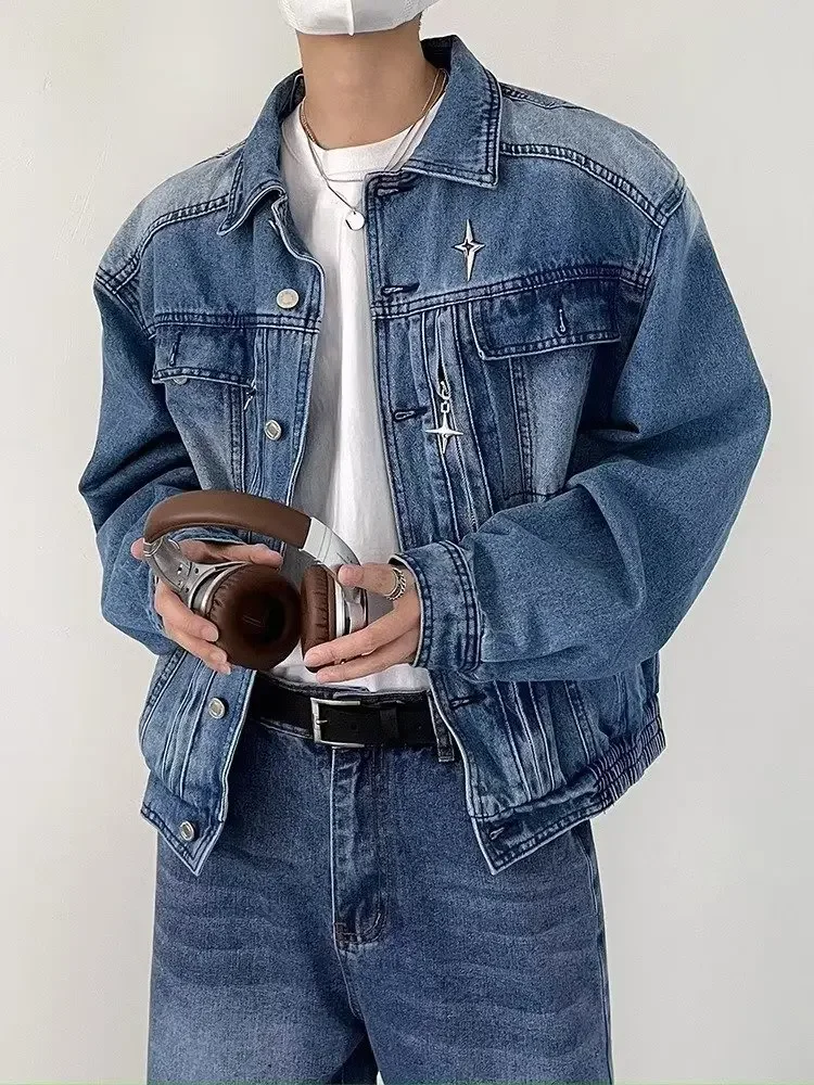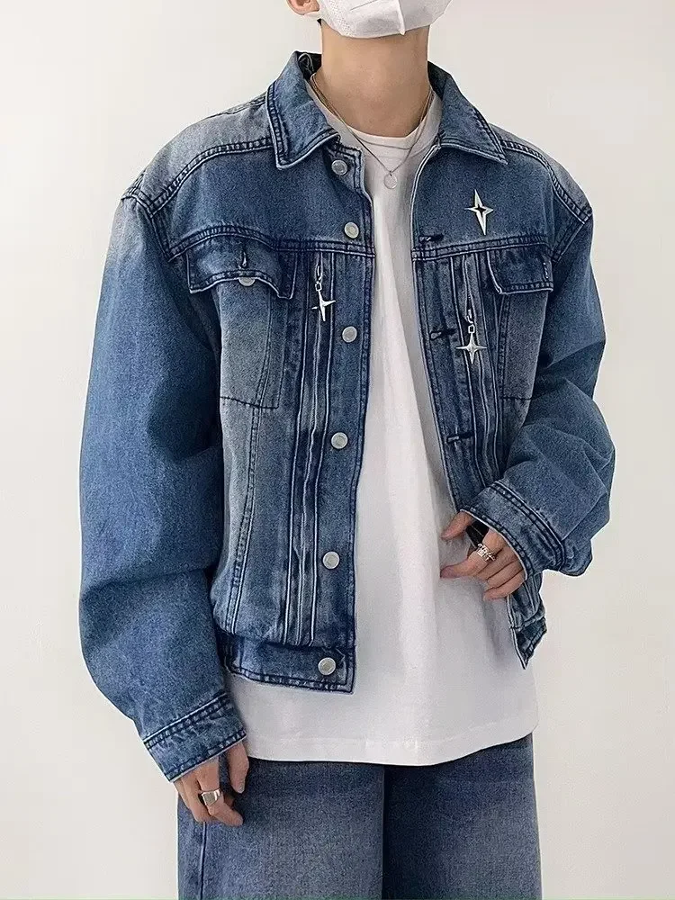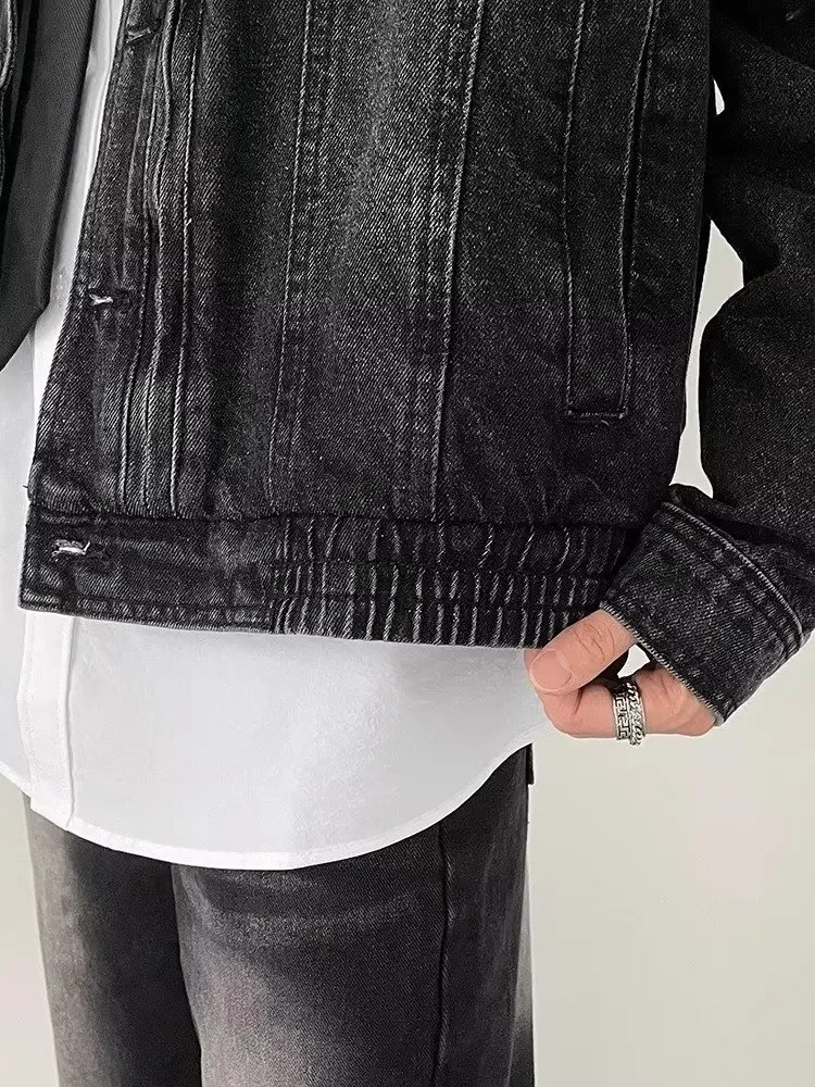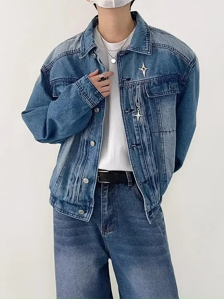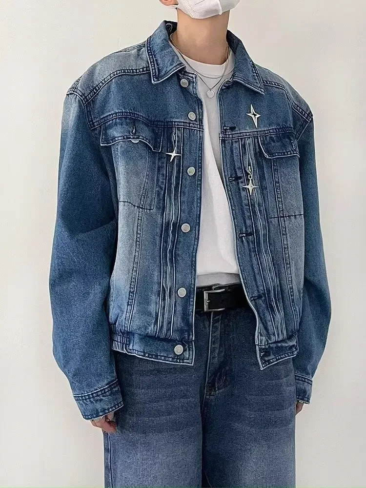 Threebooy Heavy Duty Washing Denim Jacket Metal Zipper Design Sensible Top Autumn Vintage Distressed Trendy Casual Cropped Jacket