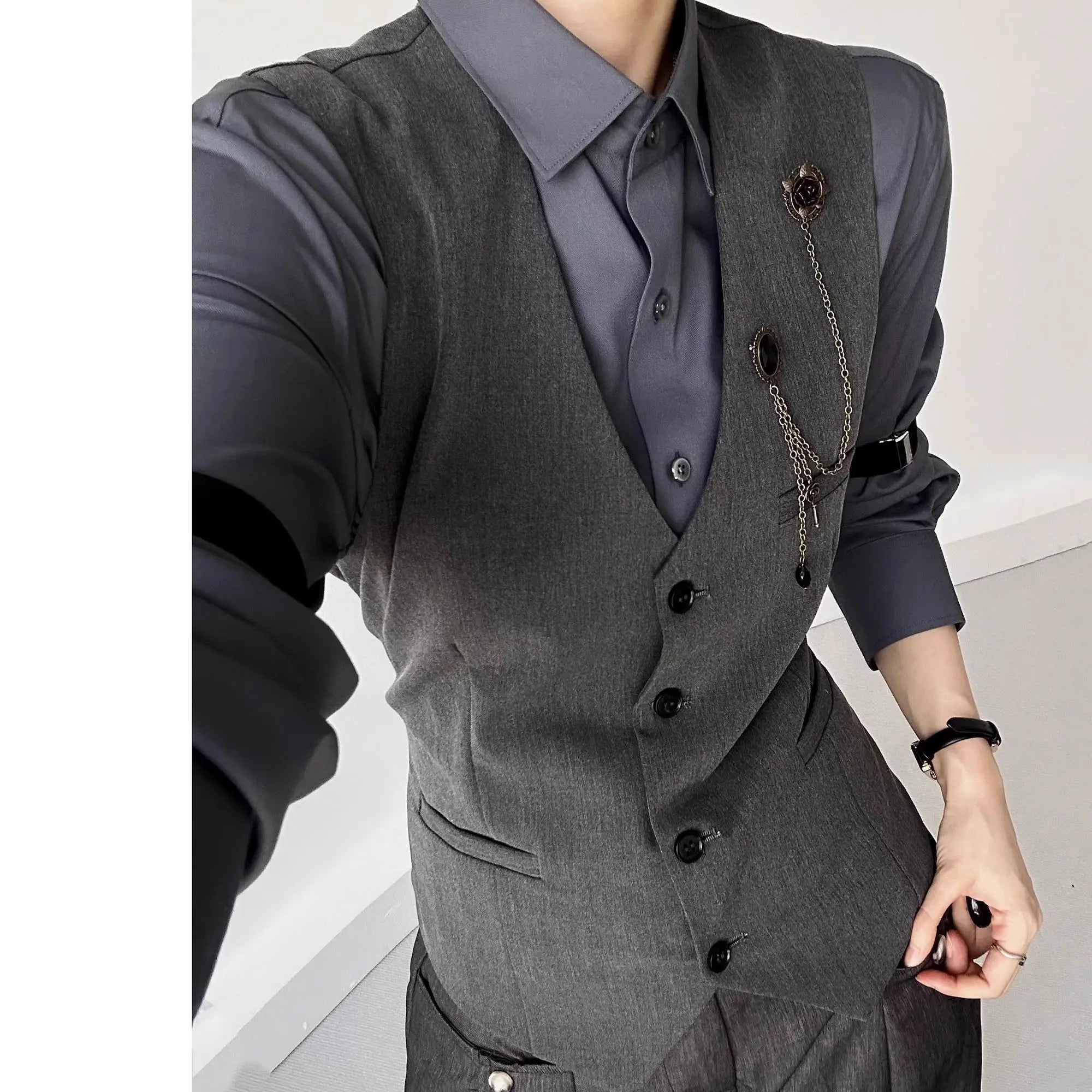 Threebooy High-end Black Gray Suit Vest Fashion Men Women Same Neutral Style Slim Business Casual Blazer Vest Urban Streetwear