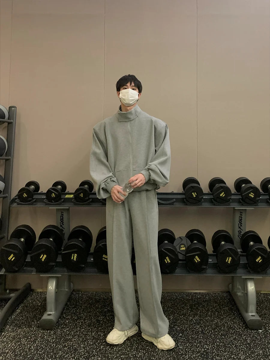 Threebooy High-end Casual Sports Suit Men's Loose Design Cardigan Jacket Wide-leg Pants Trendy Two-piece Set Men Women Tracksuits