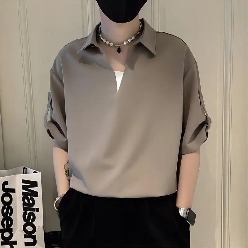 Threebooy High-end Handsome Thin Casual and Personalized Five-point Sleeve POLO Shirt Men's Summer Trendy Niche Fashion Versatile Shirt