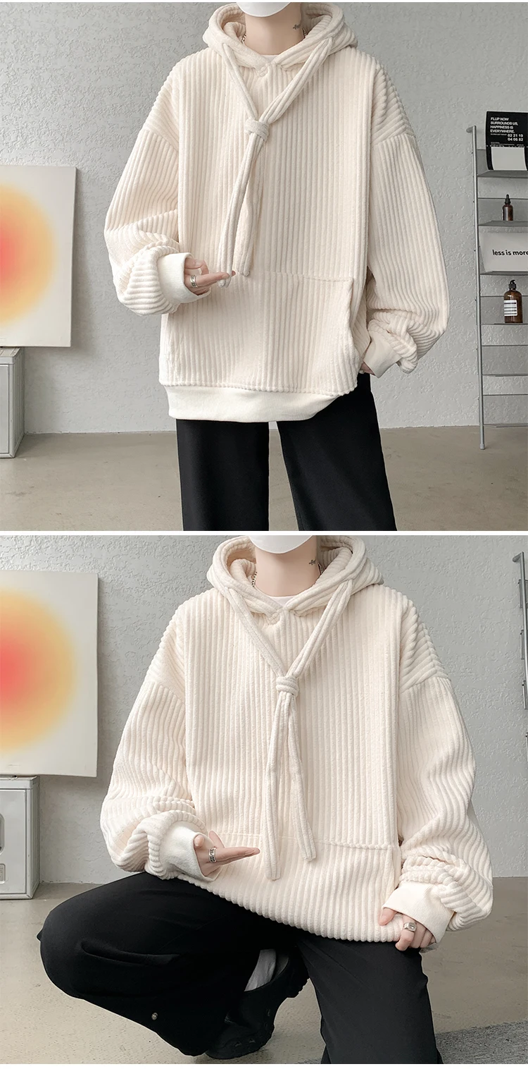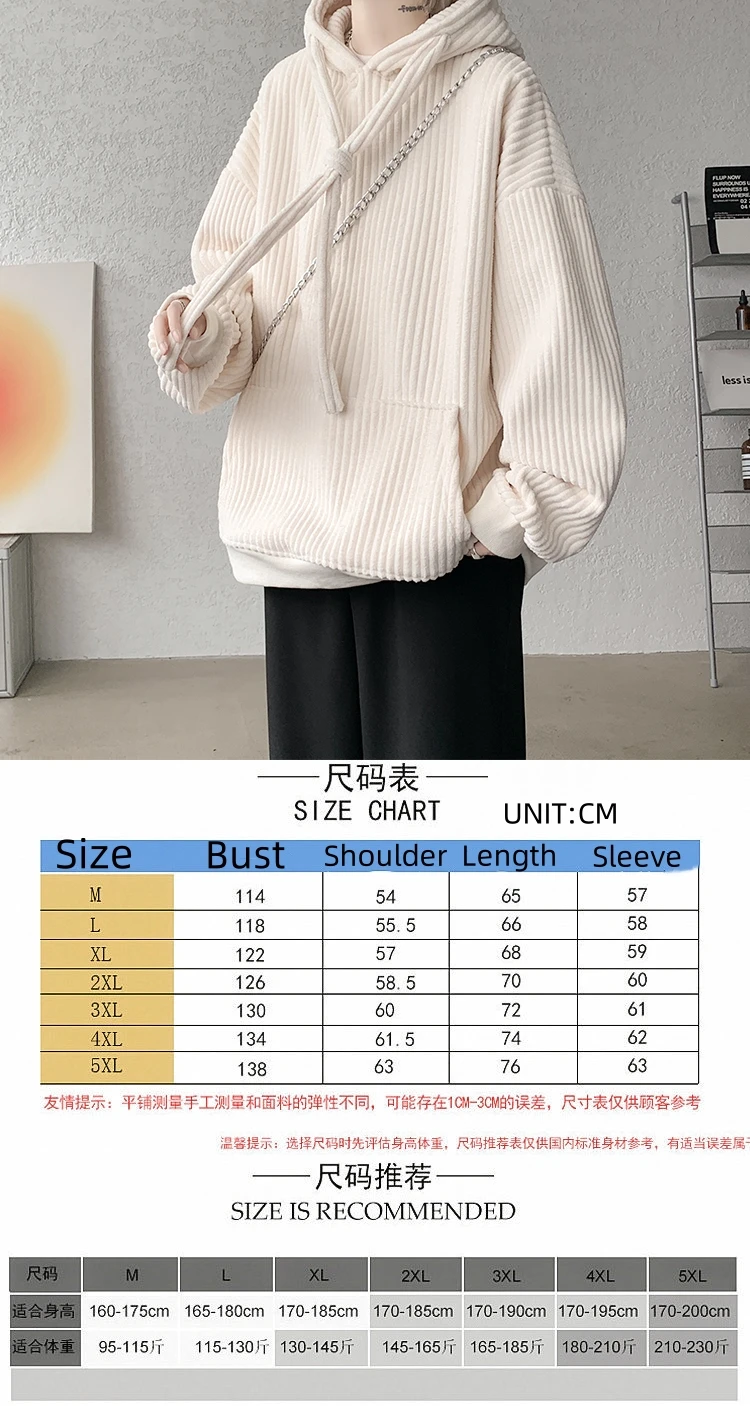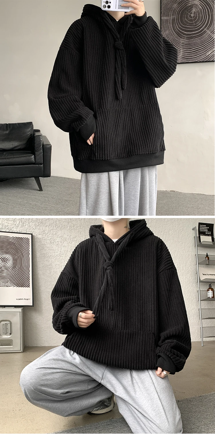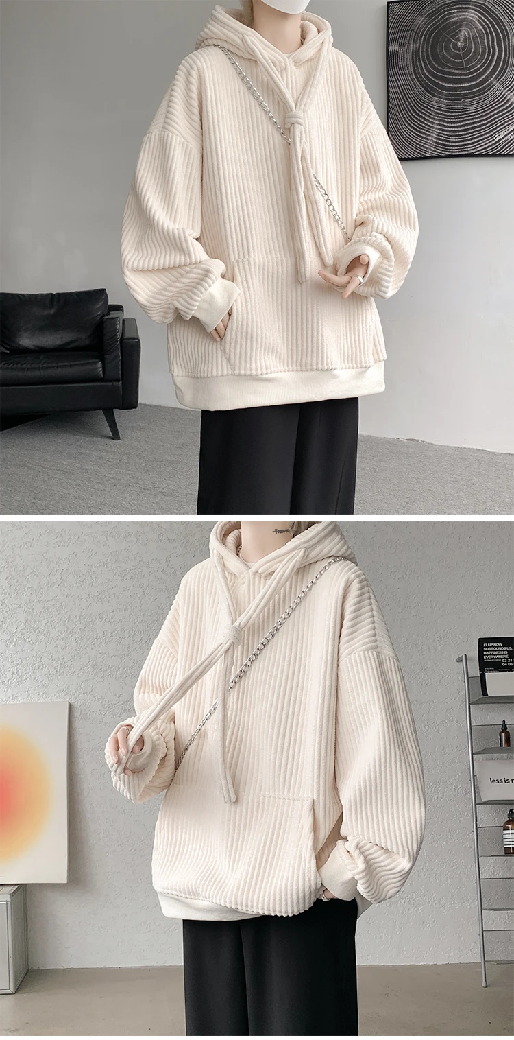Threebooy High Quality Corduroy Men's Vertical Stripe Sweatshirts 2024 Thickened Long Sleeve Kangaroo Pocket Hoodie Hooded Pullover