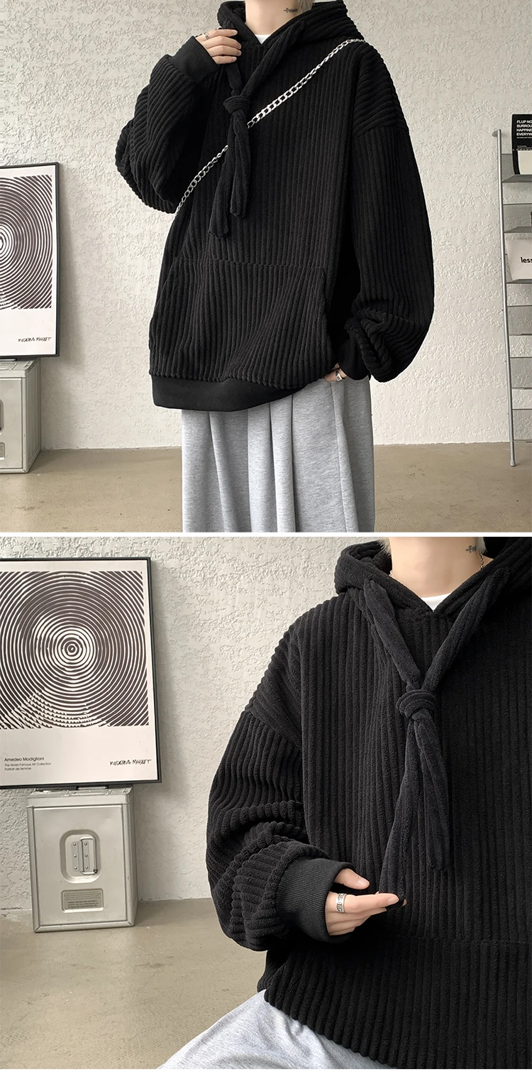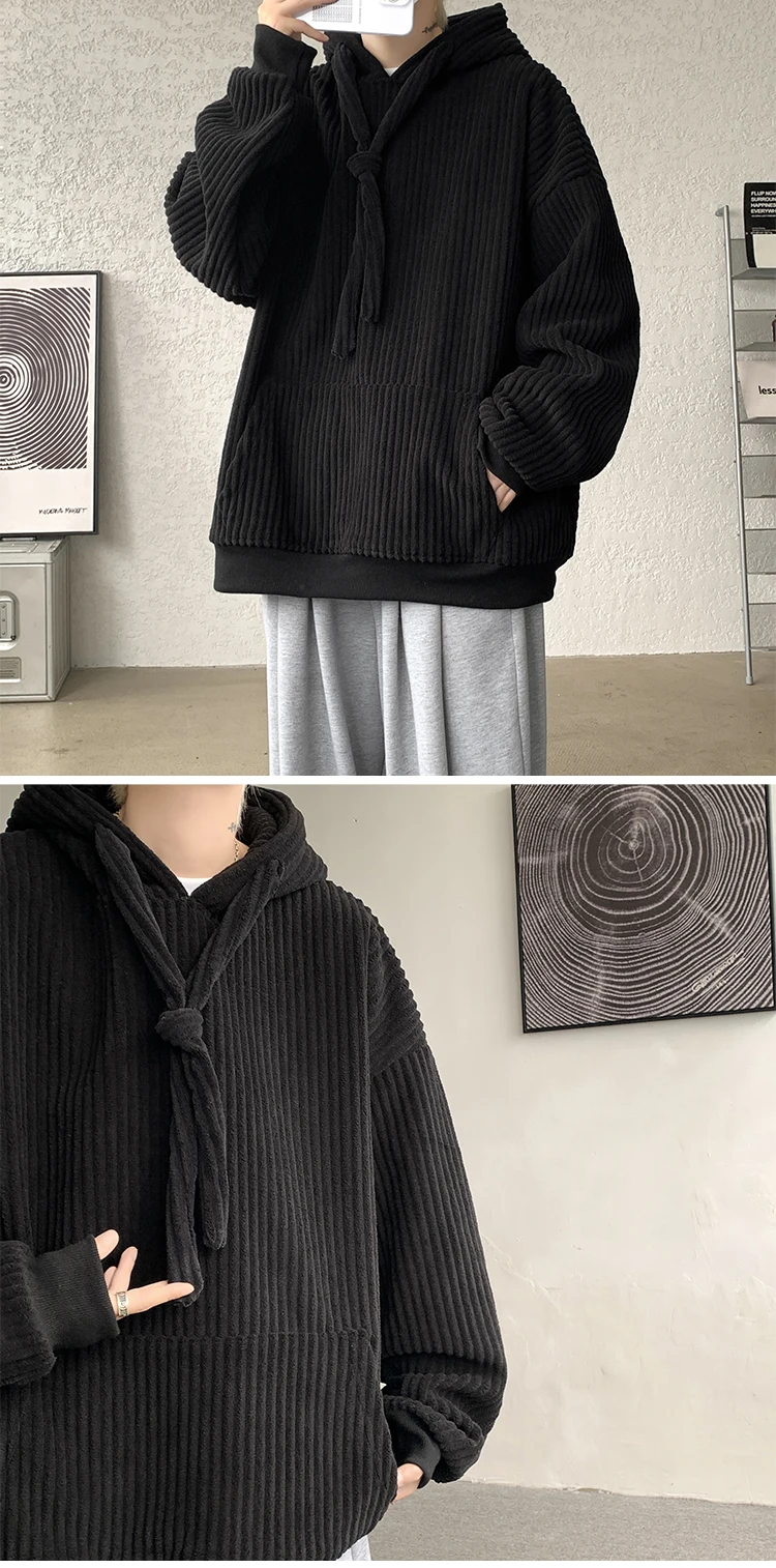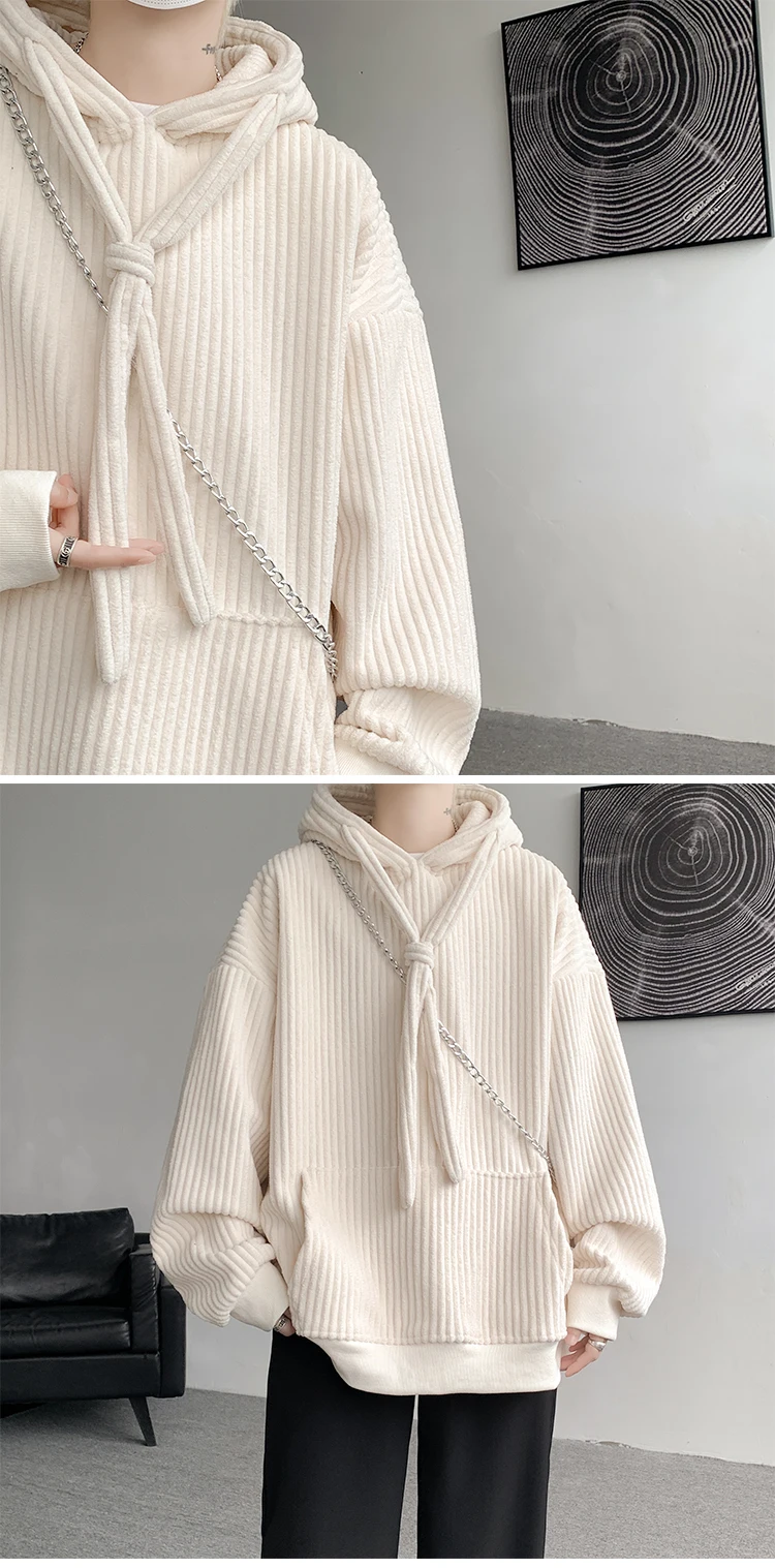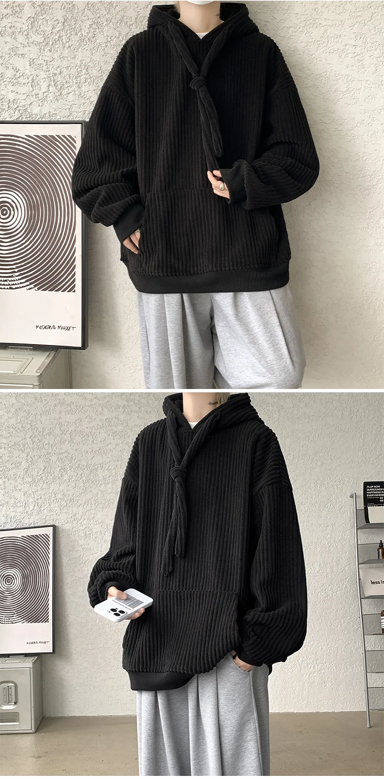 Threebooy High Quality Corduroy Men's Vertical Stripe Sweatshirts 2024 Thickened Long Sleeve Kangaroo Pocket Hoodie Hooded Pullover
