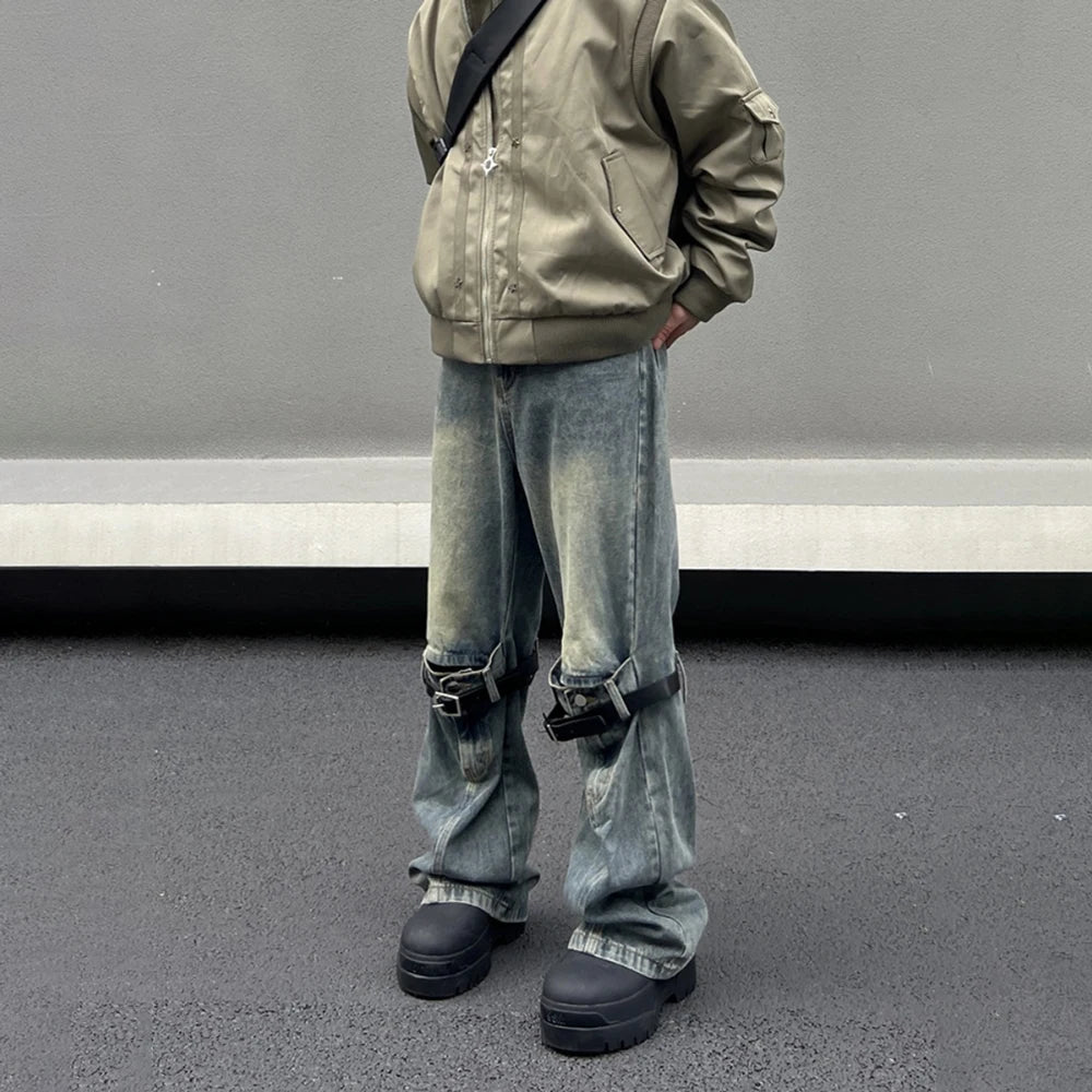 Threebooy Hip Hop Street Jean Men Wide Leg Flared Trousers Autumn Winter Streetwear Vaqueros Pantalones Loose Y2k Ripped Cargo Denim Pants