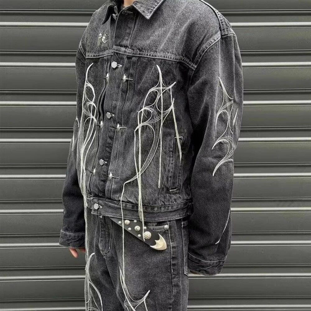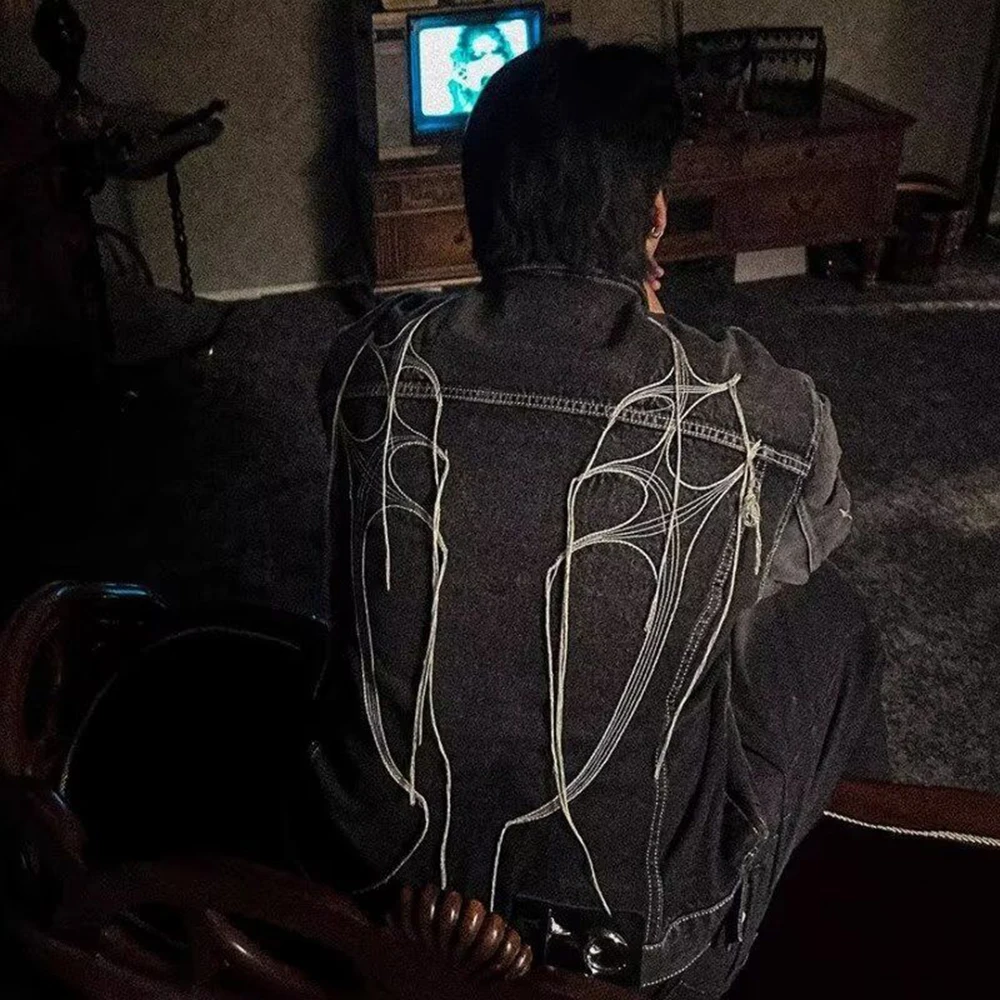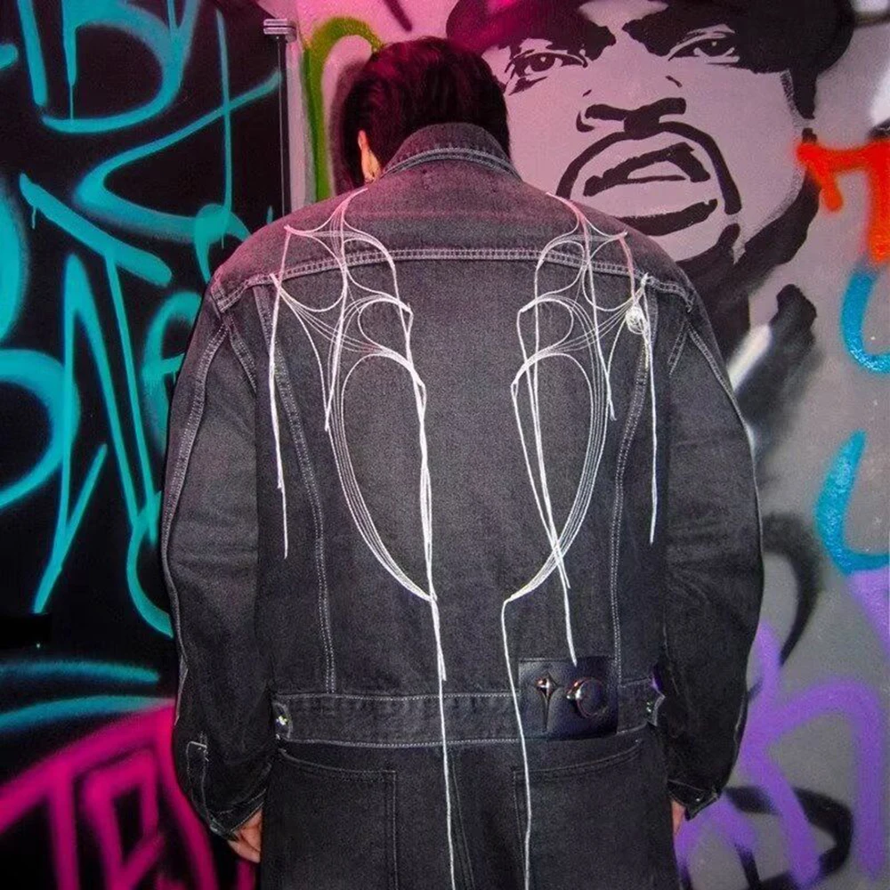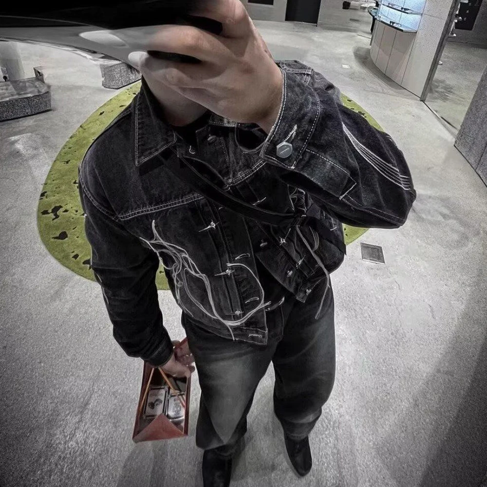 Threebooy Hong Kong Style Heavy Industry Loose Label Deconstructed Denim Jacket Men Autumn Winter New Fashion Asymmetric Splicing Tops Men