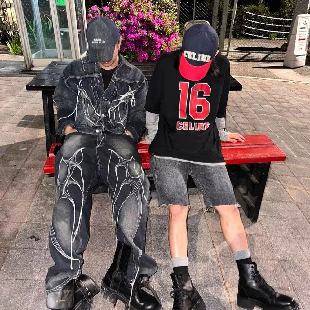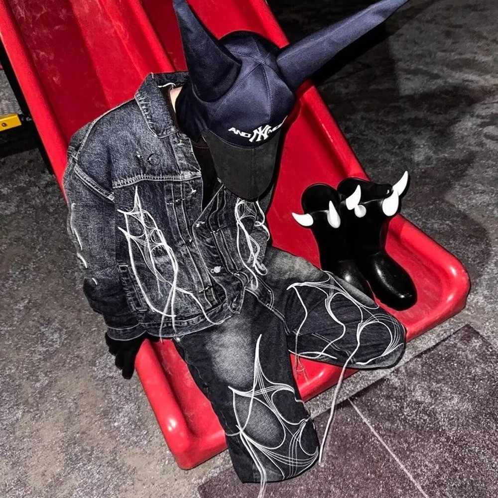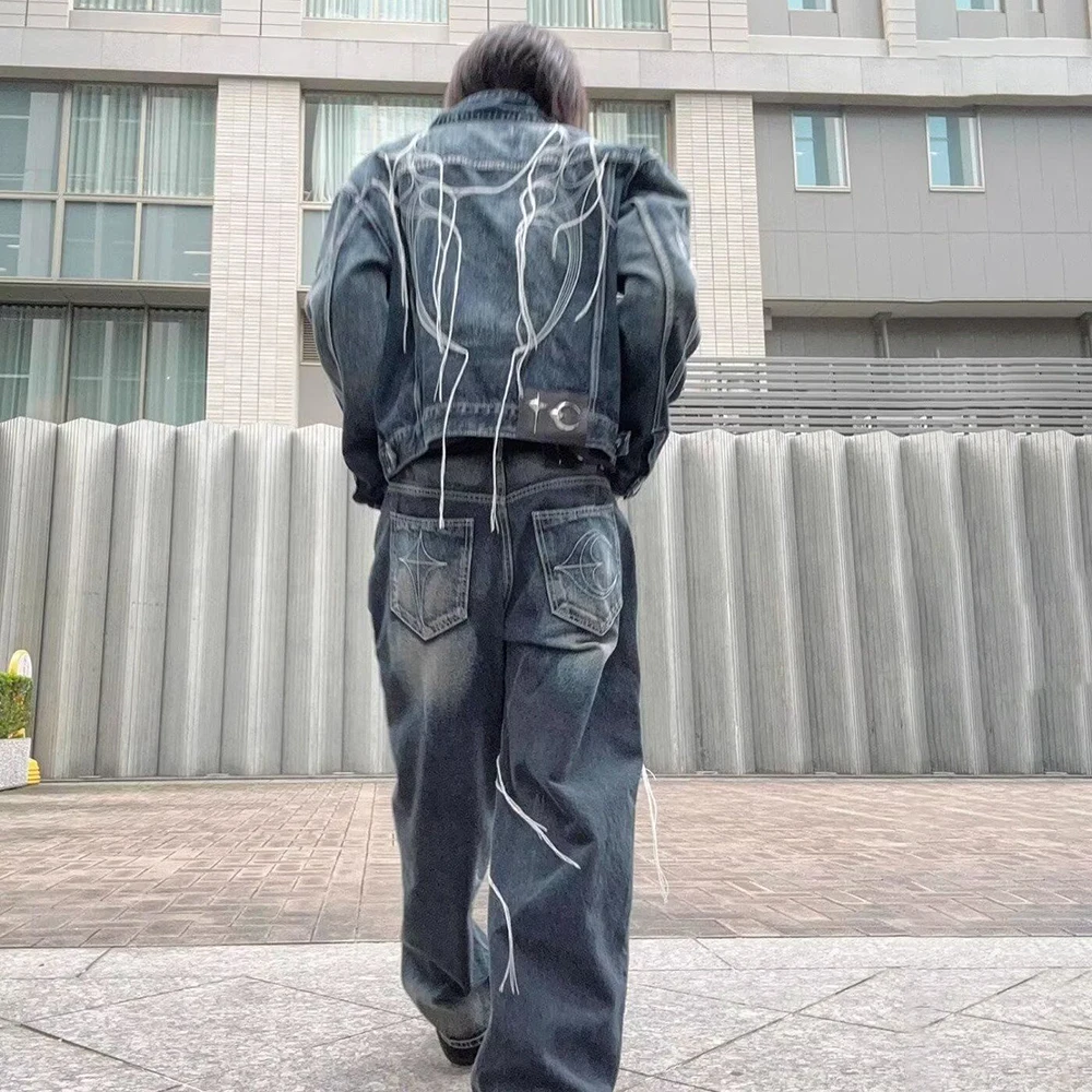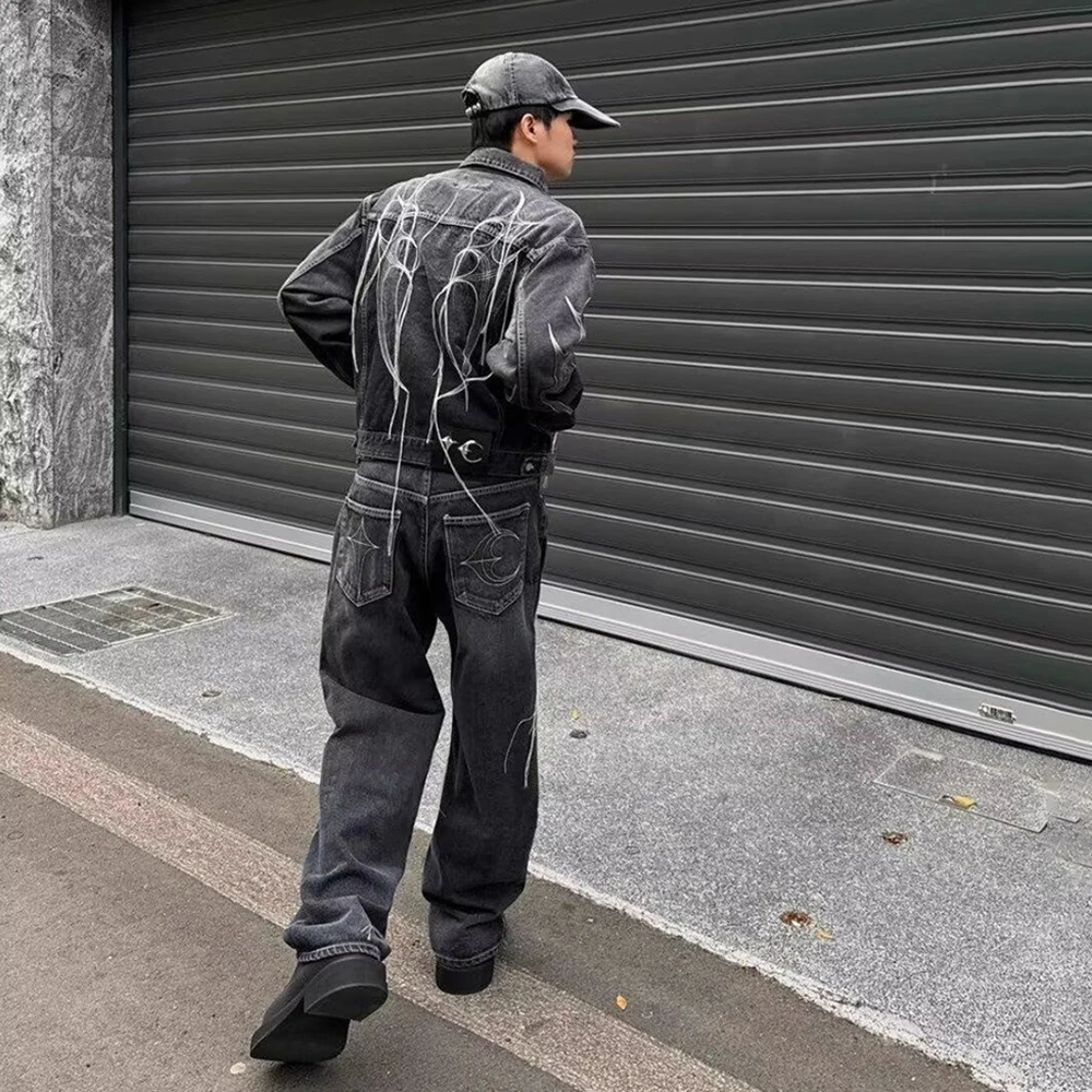 Threebooy Hong Kong Style Heavy Industry Loose Label Deconstructed Denim Jacket Men Autumn Winter New Fashion Asymmetric Splicing Tops Men