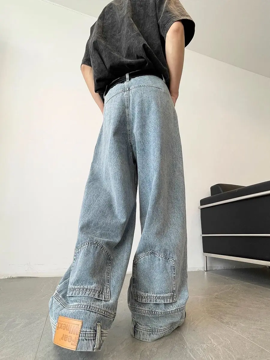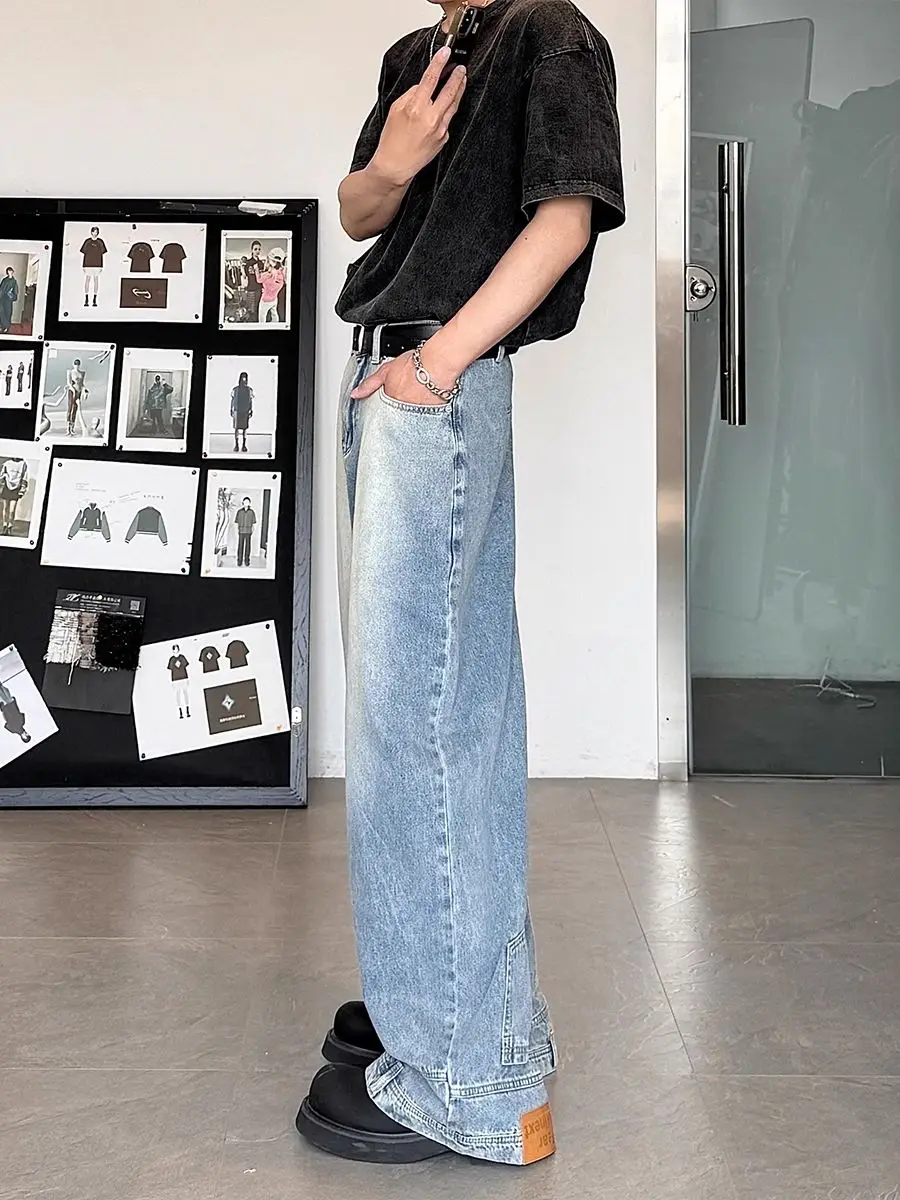 Threebooy Hong Kong Style Wide-leg Jeans for Men in Spring Autumn New Style Loose-fitting Trendy Pants