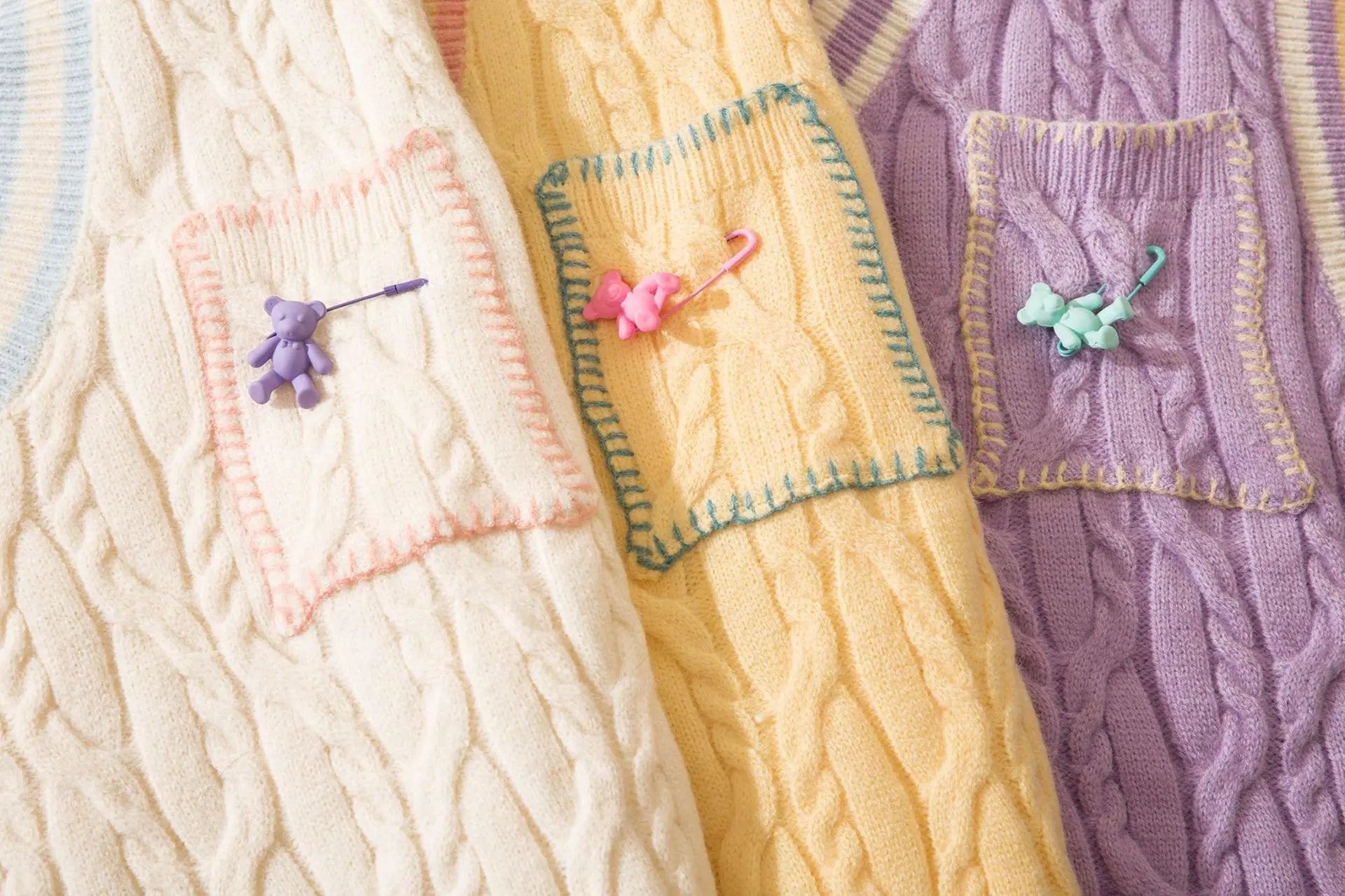 Threebooy Japanese Harajuku Knitted Vest Men Solid Color Matching V-neck Pullover Causal Loose Sleeveless Couple Sweaters Fashion New