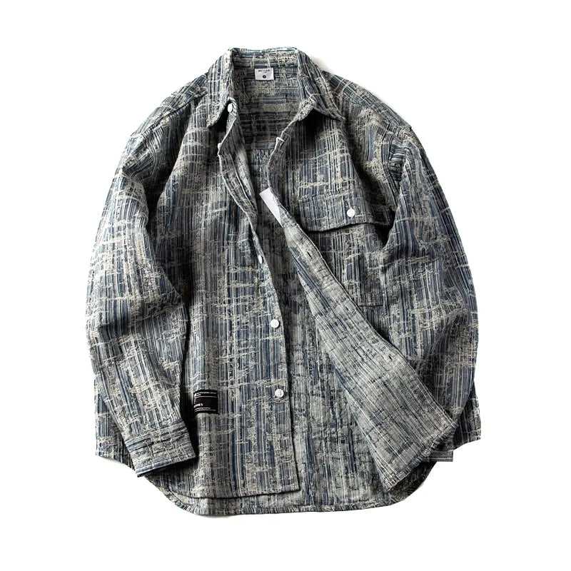 Threebooy Japanese Retro Shirt Washing Old Plaid Work Clothes Denim Shirt Men Women Trendy Loose Casual Long-sleeved Top Urban Chic Blouse