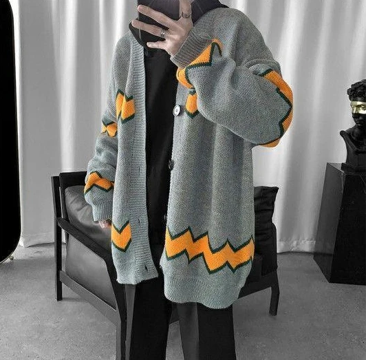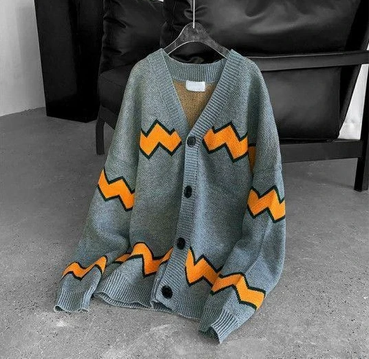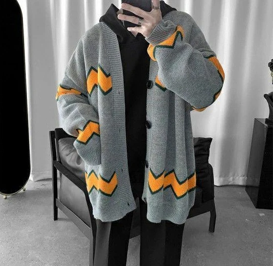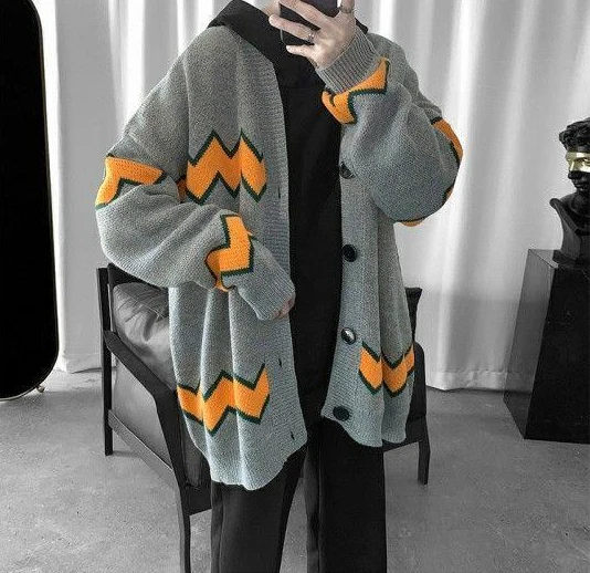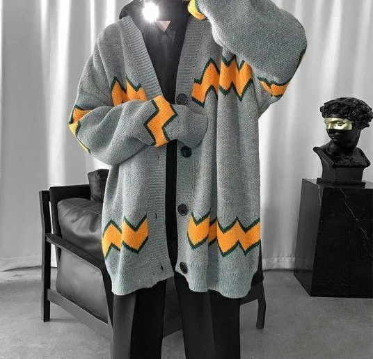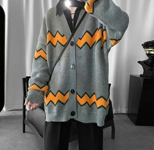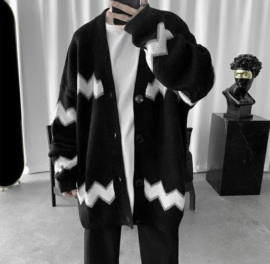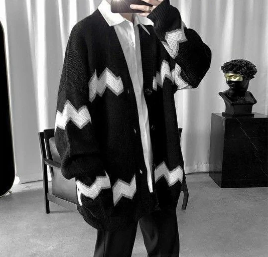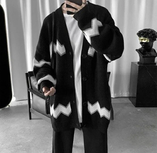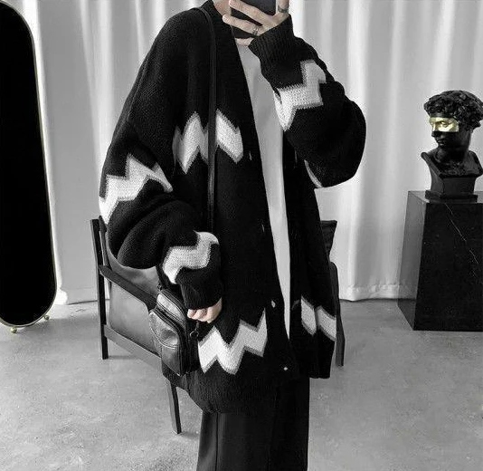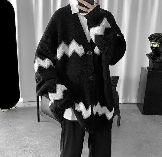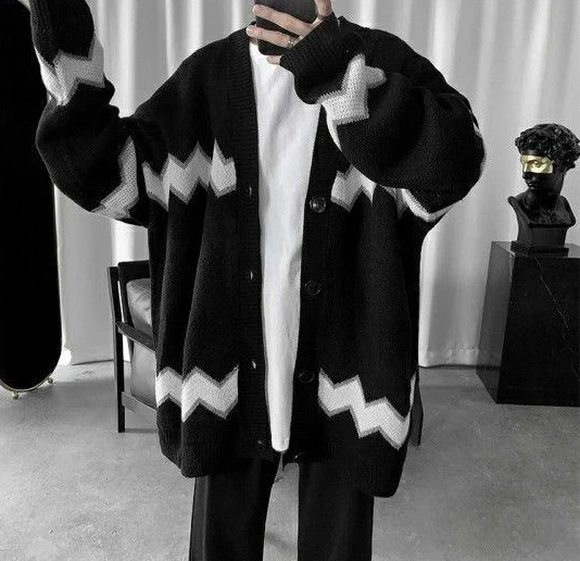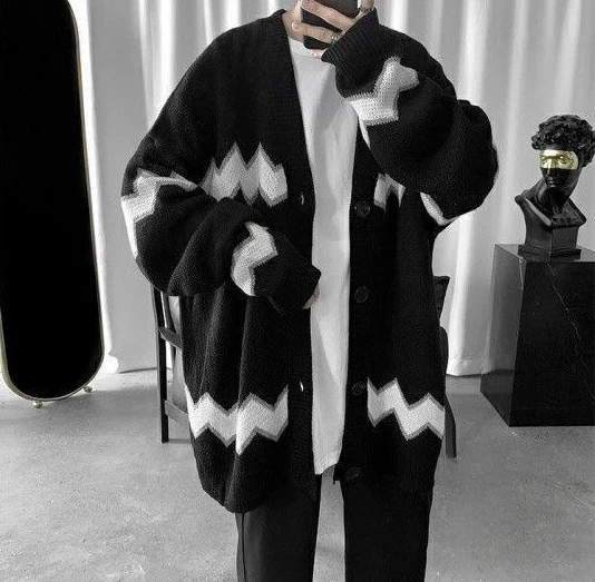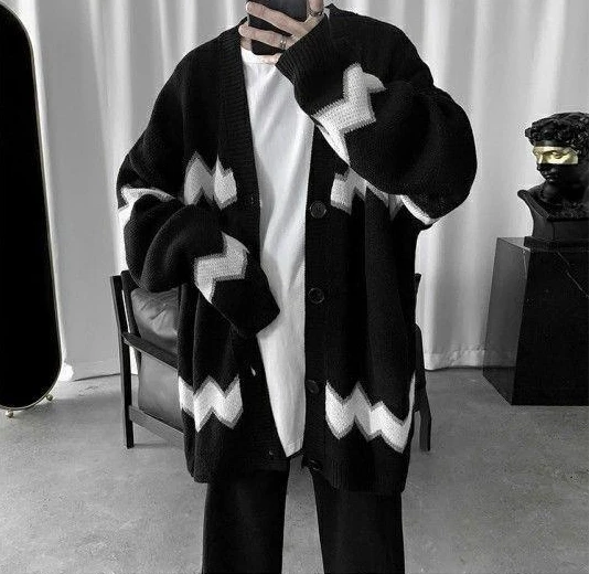 Threebooy Knit Sweater Male No Hoodie Jacket Coat Men's Clothing Cardigan Striped Black Street New in Fashion Knitwears Elegant Ugly