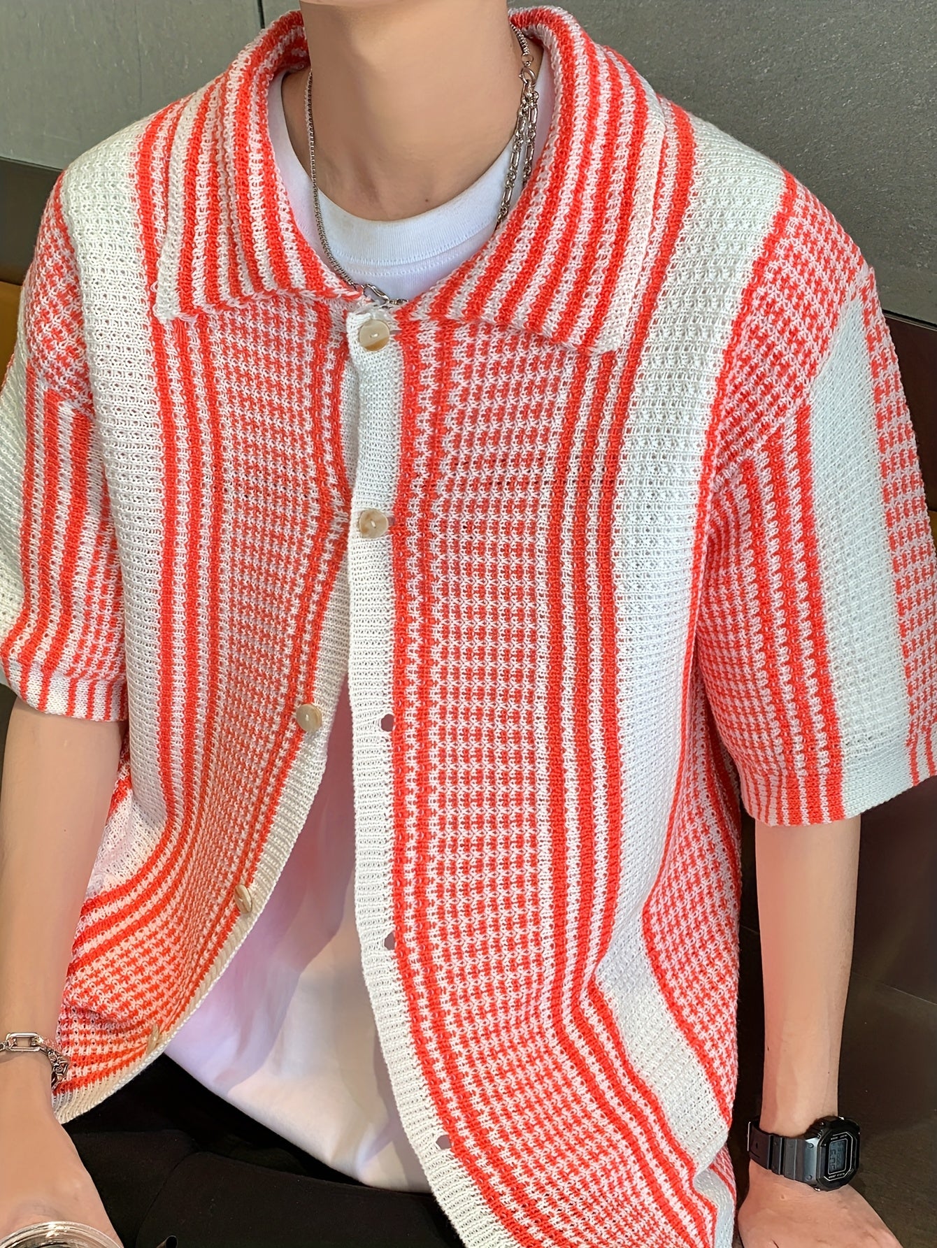 Threebooy Knitted Cardigan Short Sleeves Rainbow Contrast Stripes Harajuku Style, Suitable for All Seasons, Suitable for City Walks, Street Outdoor Activities, Casual Outings, Parties, Beaches, Anniversaries, Gifts