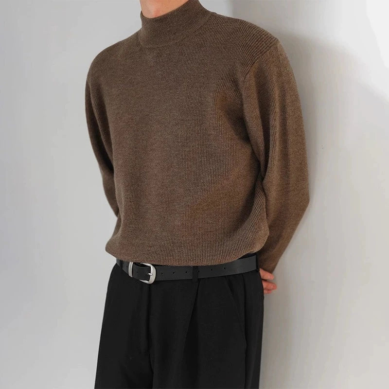 Threebooy Korean Fashion Men Sweater Light Luxury Trendy Mock Neck Knitted Solid Color Pullover Premium Quality Long Sleeve Basic Knitwear
