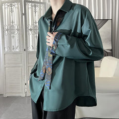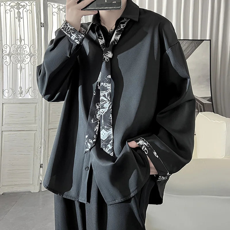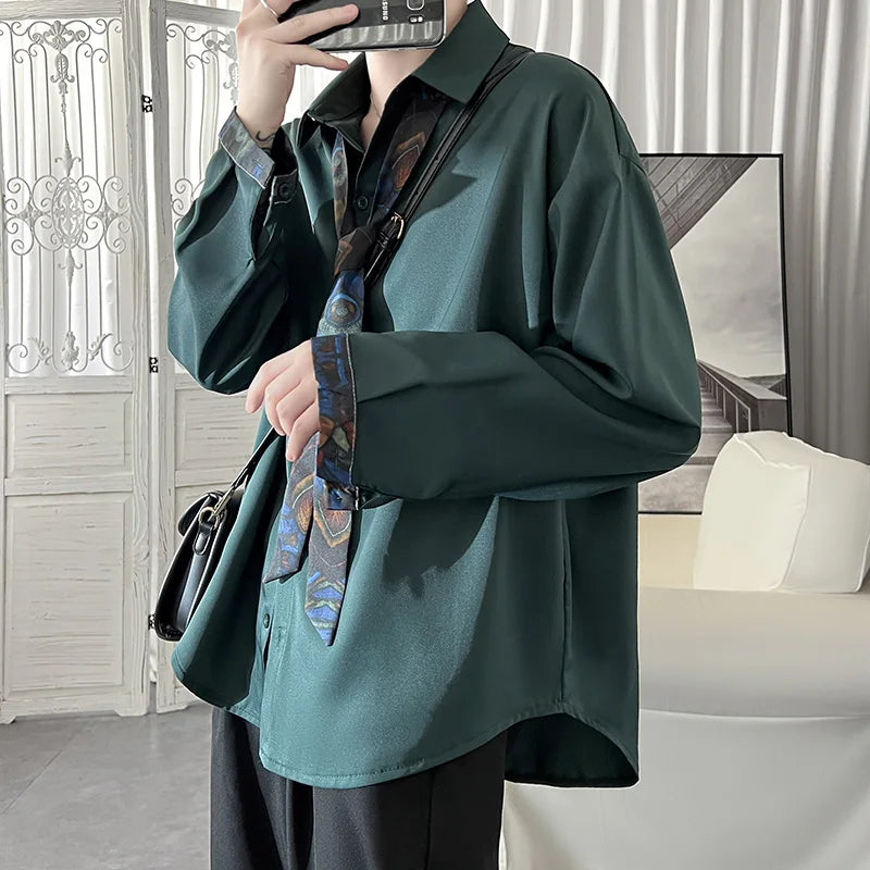 Threebooy Korean Fashion Stylish Long Sleeve Blouses Men Streetwear All-match Handsome Teens Shirt Autumn New Retro Oversize Shirts