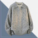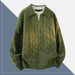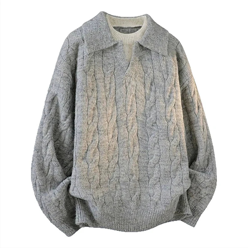 Threebooy Korean Luxury Jacquard Men Polo Sweater Loose V Neck Knit Solid Color Pullover Casual Premium Quality Long Sleeve Knitwear M-3XL