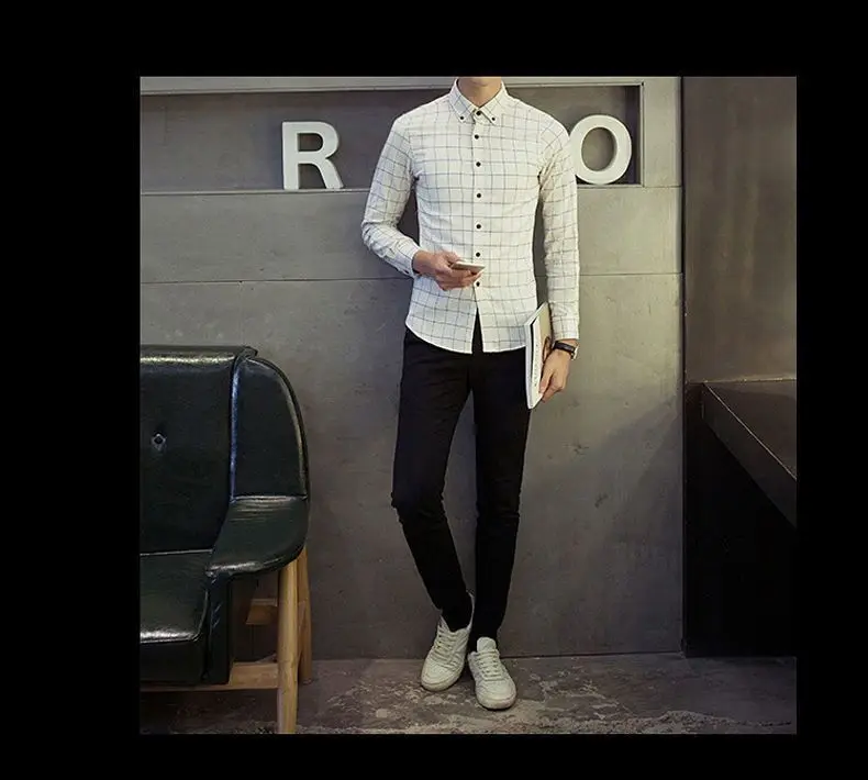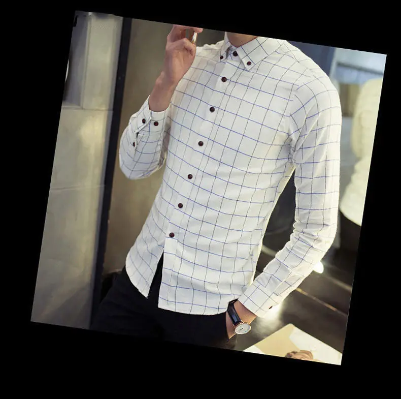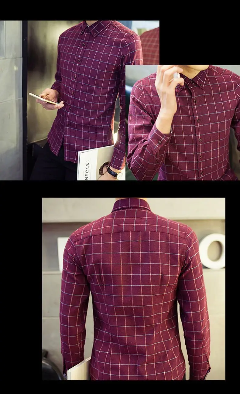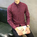 Threebooy Korean Men Spring Autumn Thicken Shirt Turn-down Collar Plaid Panelled Cotton Long Sleeve Slim Vintage Casual All-match Tops