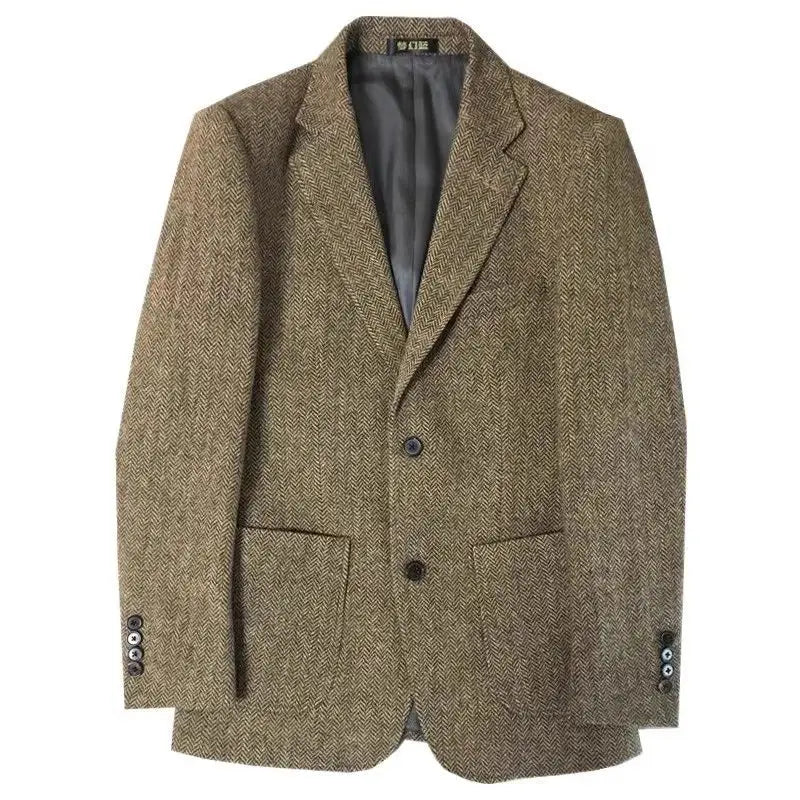 Threebooy Korean New Winter Blazer Jacket Men's Retro British Vintage Suit Tweed Herringbone Casual Slim Jacket High-end Button Up Coat