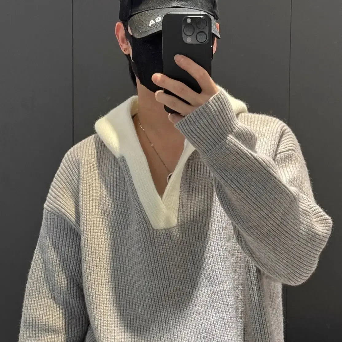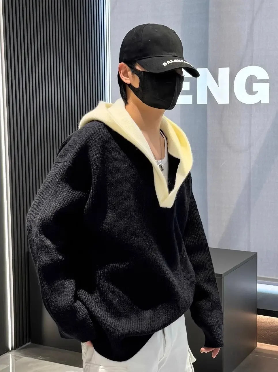 Threebooy Korean style autumn and winter men and women trendy personalized spliced sweater for couples loose retro knitted casual top y2k