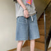 Threebooy Loose Fit Denim Shorts men Elastic Waist Drawstring Washed Casual Summer Vintage Distressed Streetwear Comfort Stretch Fashion