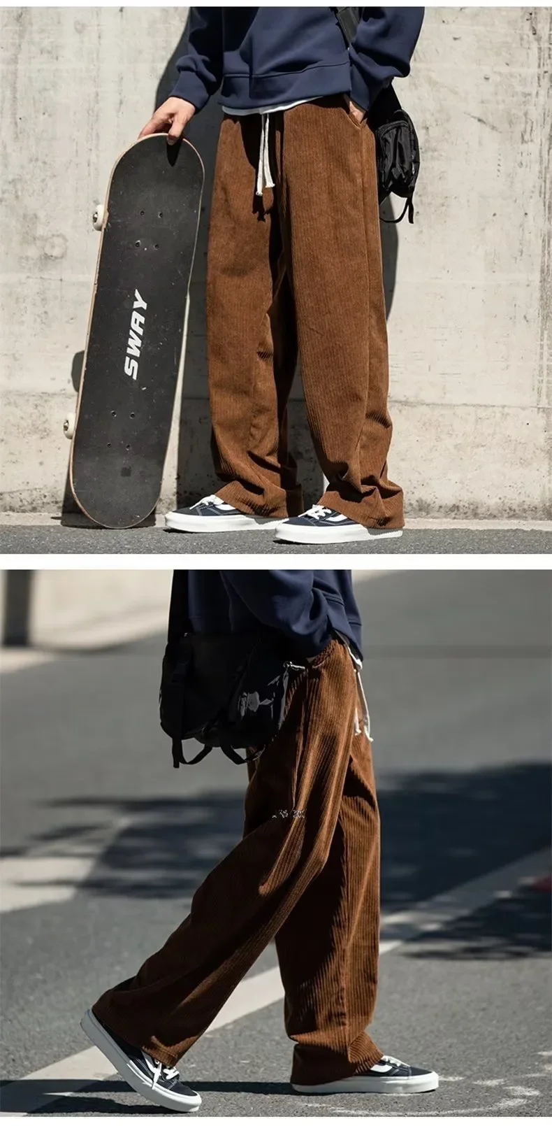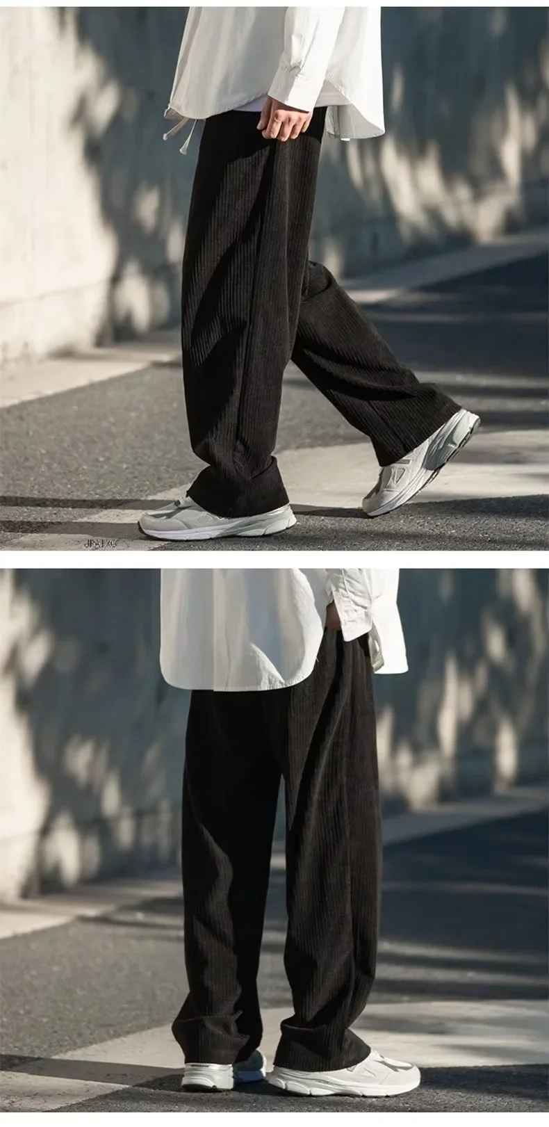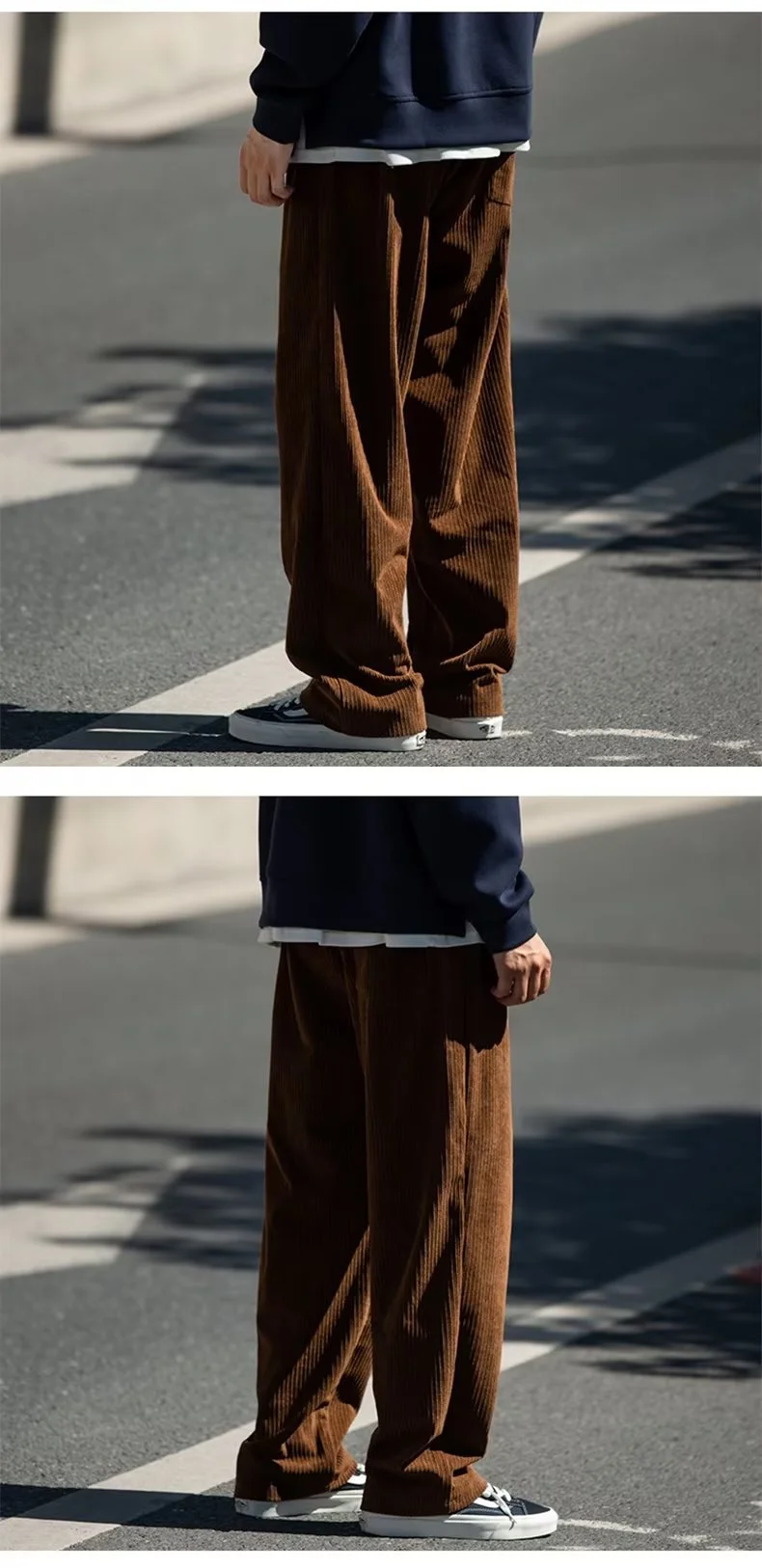 Threebooy Loose Waist Corduroy Casual Pants Straight Slim Design Wide Loose American Style Sensual Pants Men
