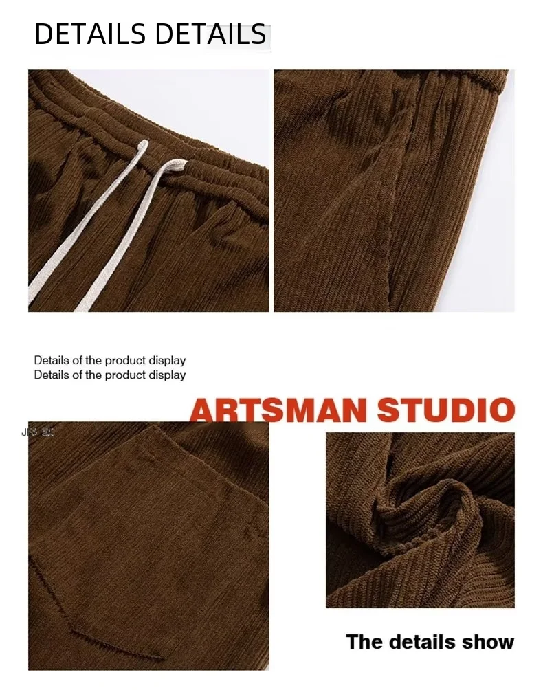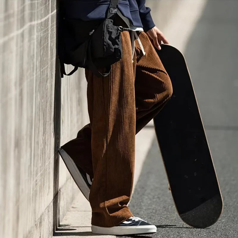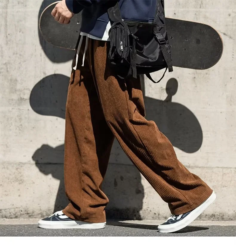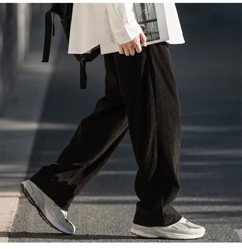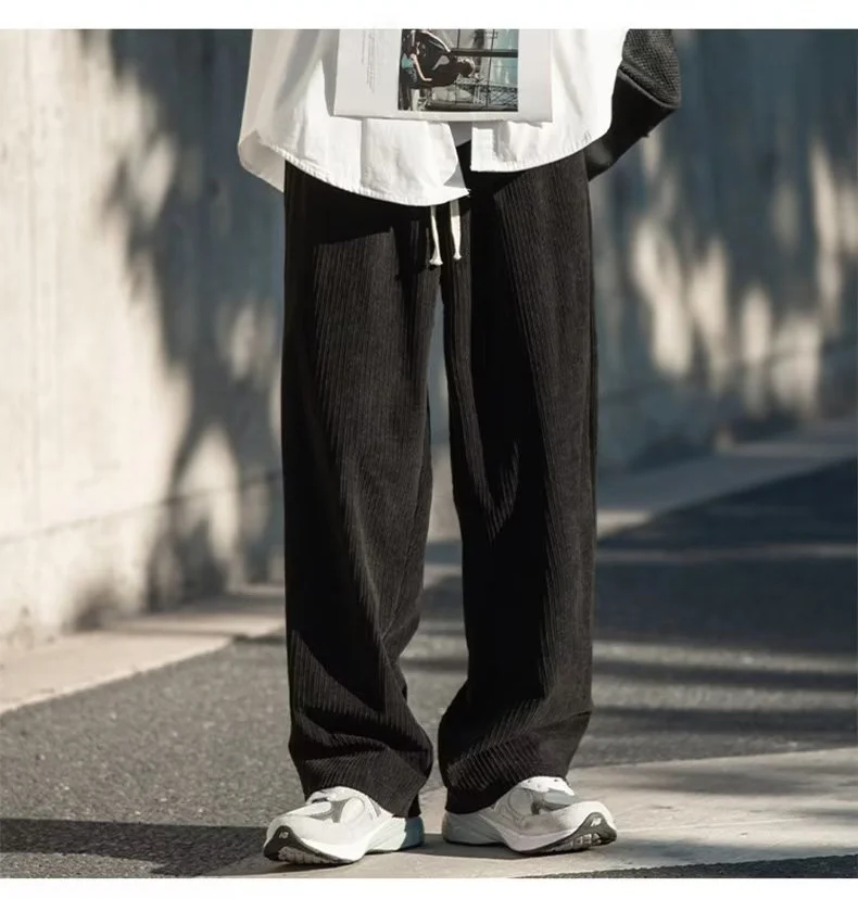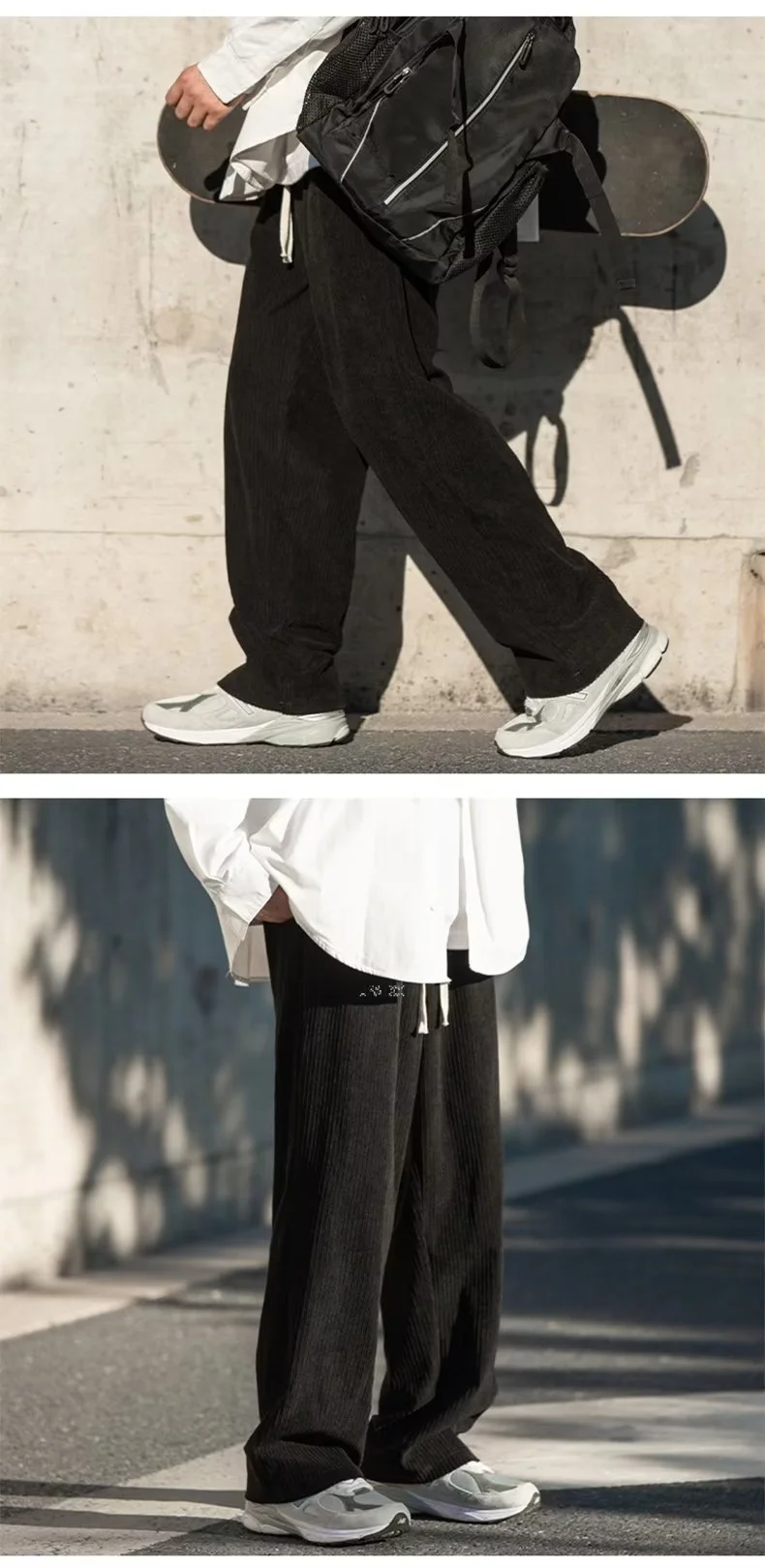 Threebooy Loose Waist Corduroy Casual Pants Straight Slim Design Wide Loose American Style Sensual Pants Men