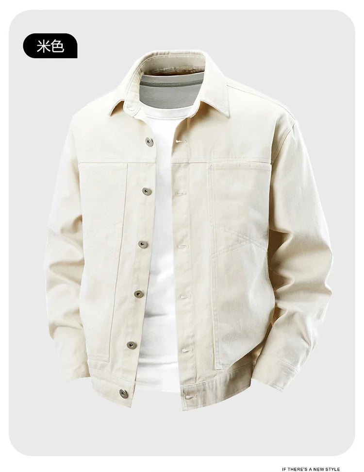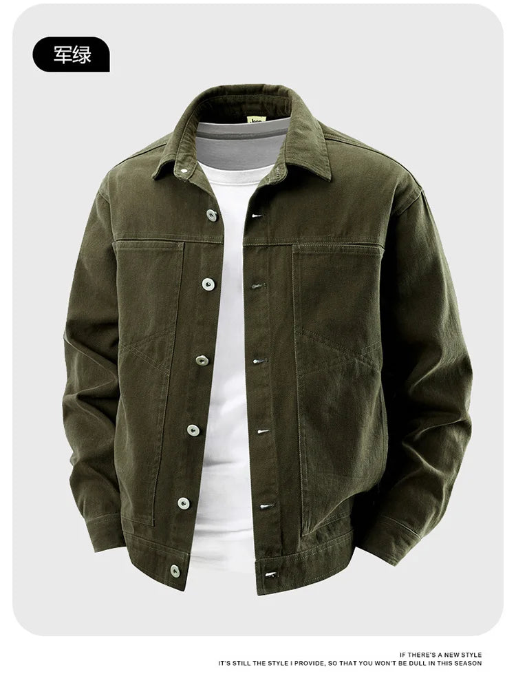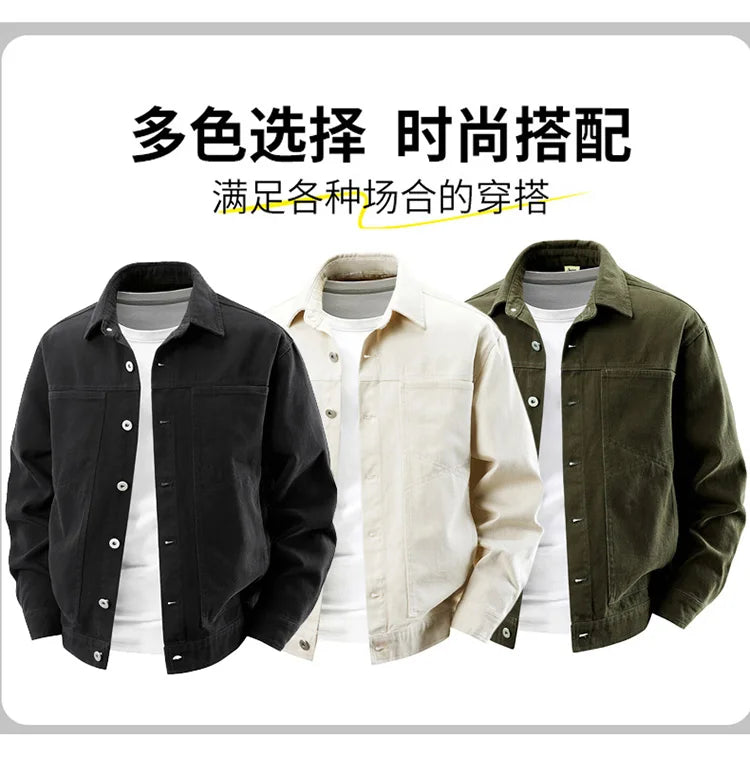 Threebooy Male American Casual Jackets Versatile Lapel Collars Multiple Pockets Workwear Tops Solid Color High Quality Men's Clothing