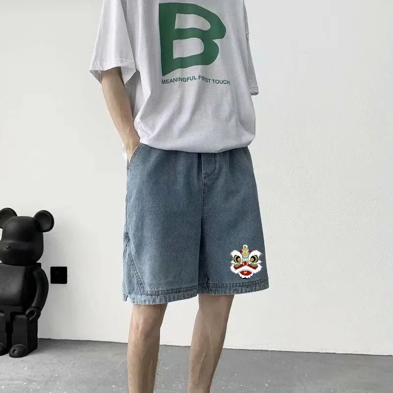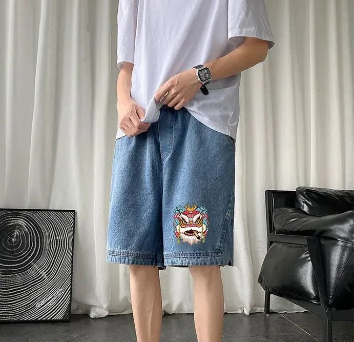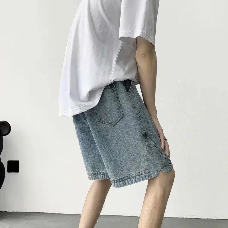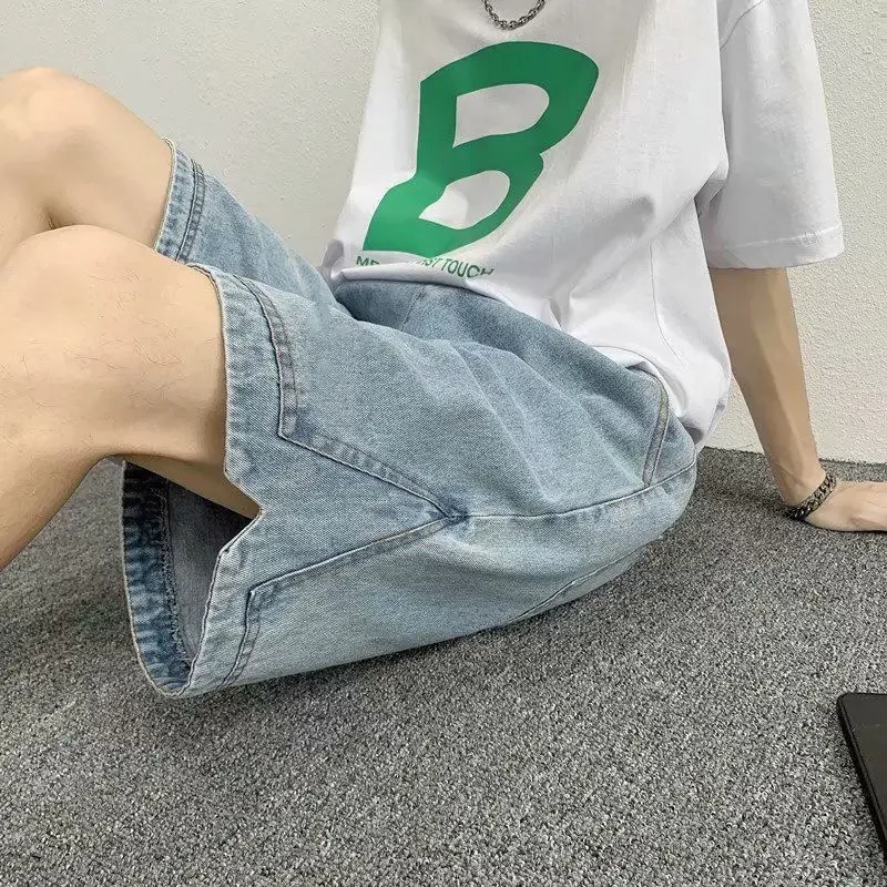 Threebooy Male Denim Shorts Graphic Split Men's Short Jeans Pants Luxury Y2k Fashion Buttons Original Jorts Korean With Vintage Xl