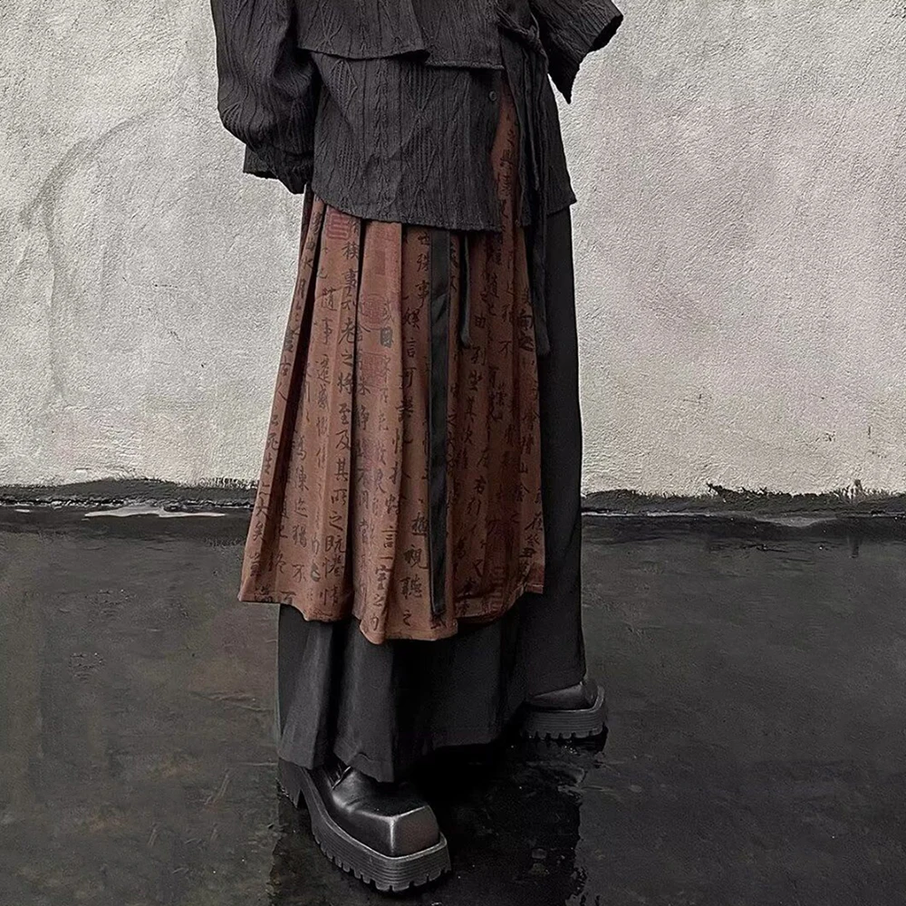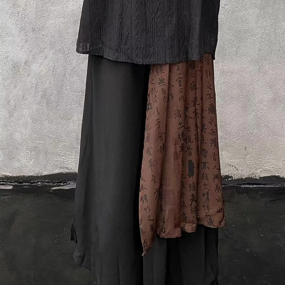 Threebooy Men Splice Contrasting Color Chinese Calligraphy Casual Wide-Leg Pants 2024 New Genderless Retro Double-Layer Loose Pants Unisex