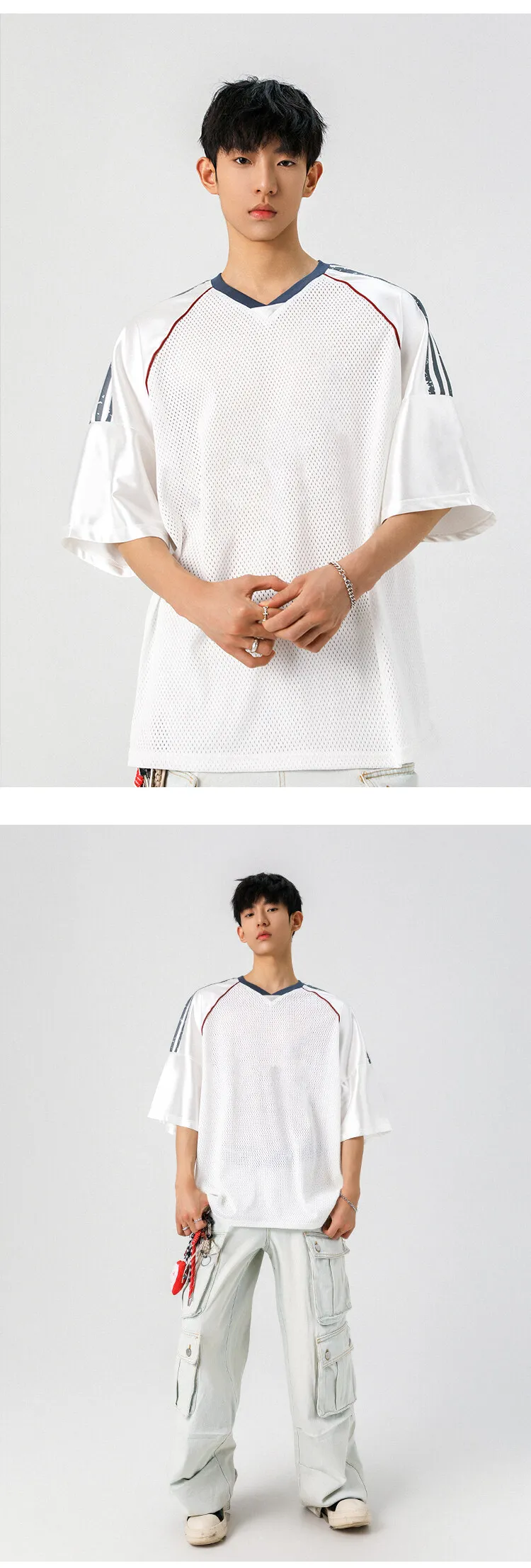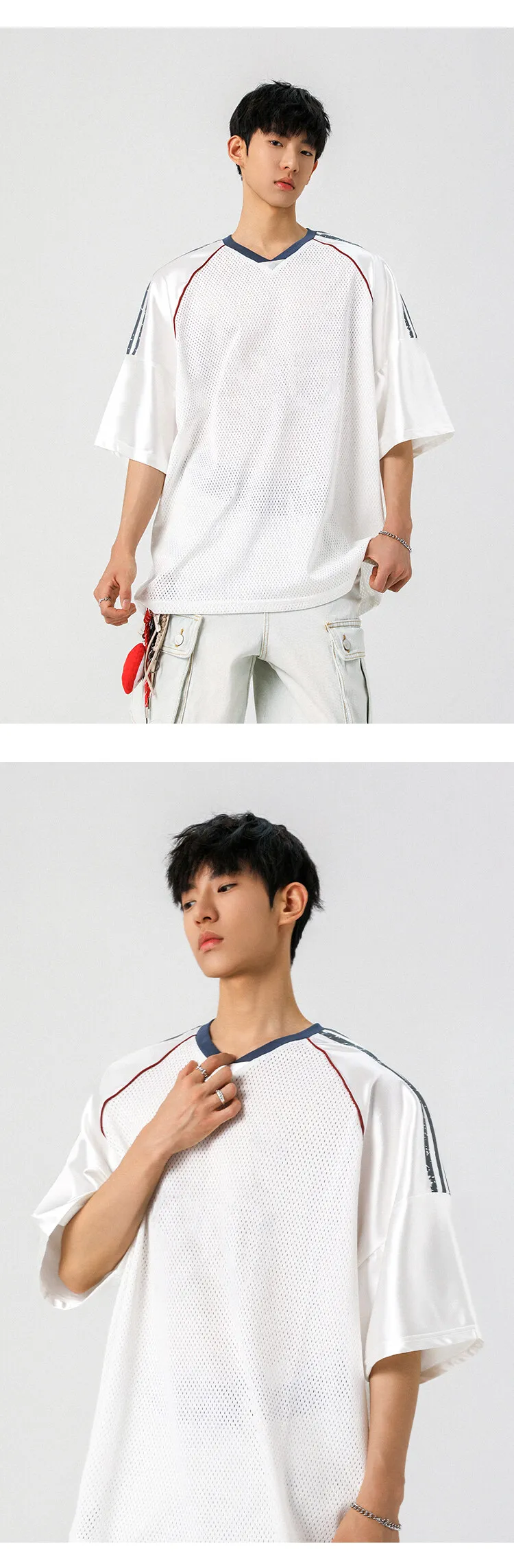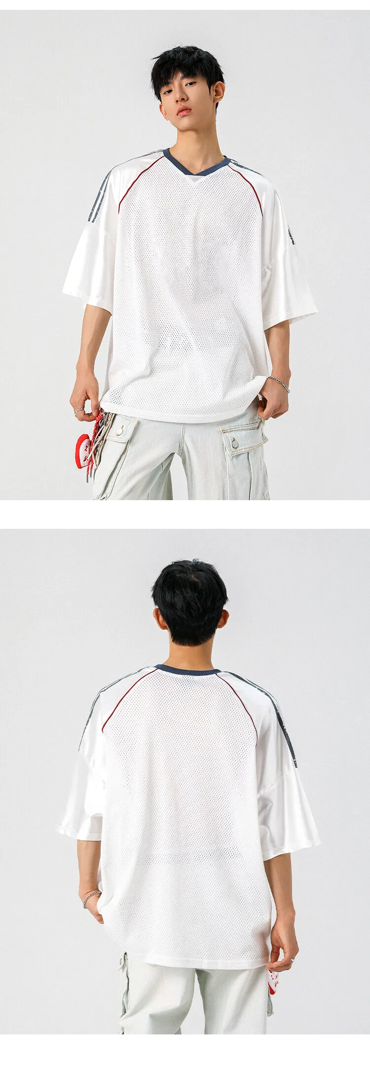 Threebooy Men Sport Tshirt Transparent Mesh V-neck T Shirt Short Sleeve Men Clothing Summer Fashion Streetwear Male Loose Tee Tops
